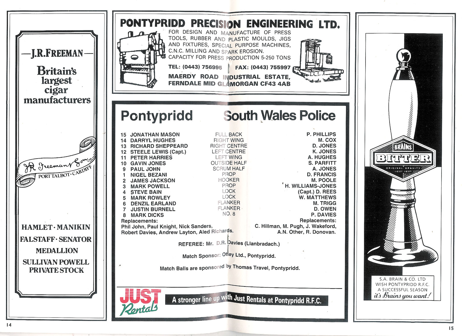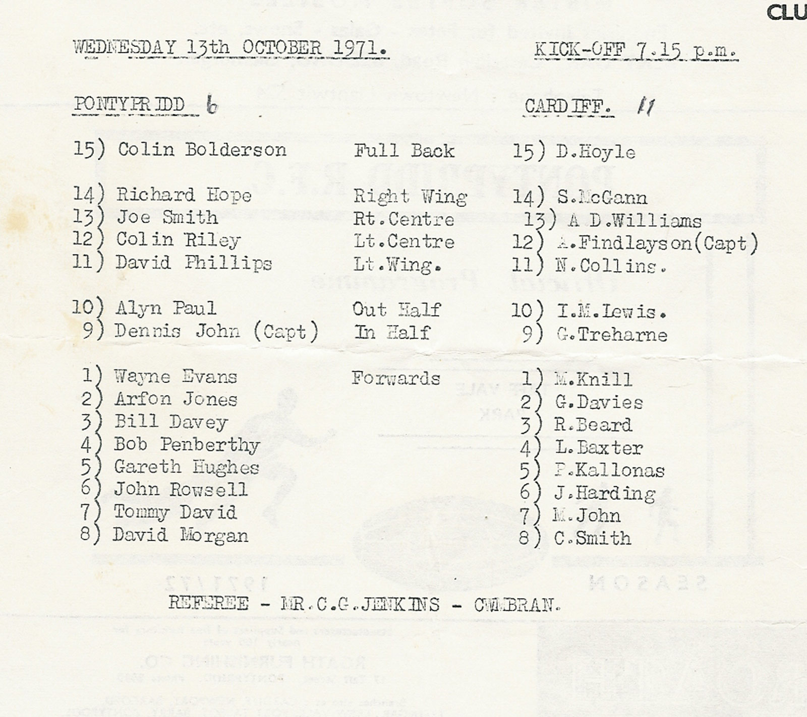 Pontypridd v Cardiff | 3 Jan 1969 | Ynysangharad Park, Pontypridd | 5-15* | very good - slight crease Ref: B215-C-prcb-ppr19690103cdf - £5.00 |