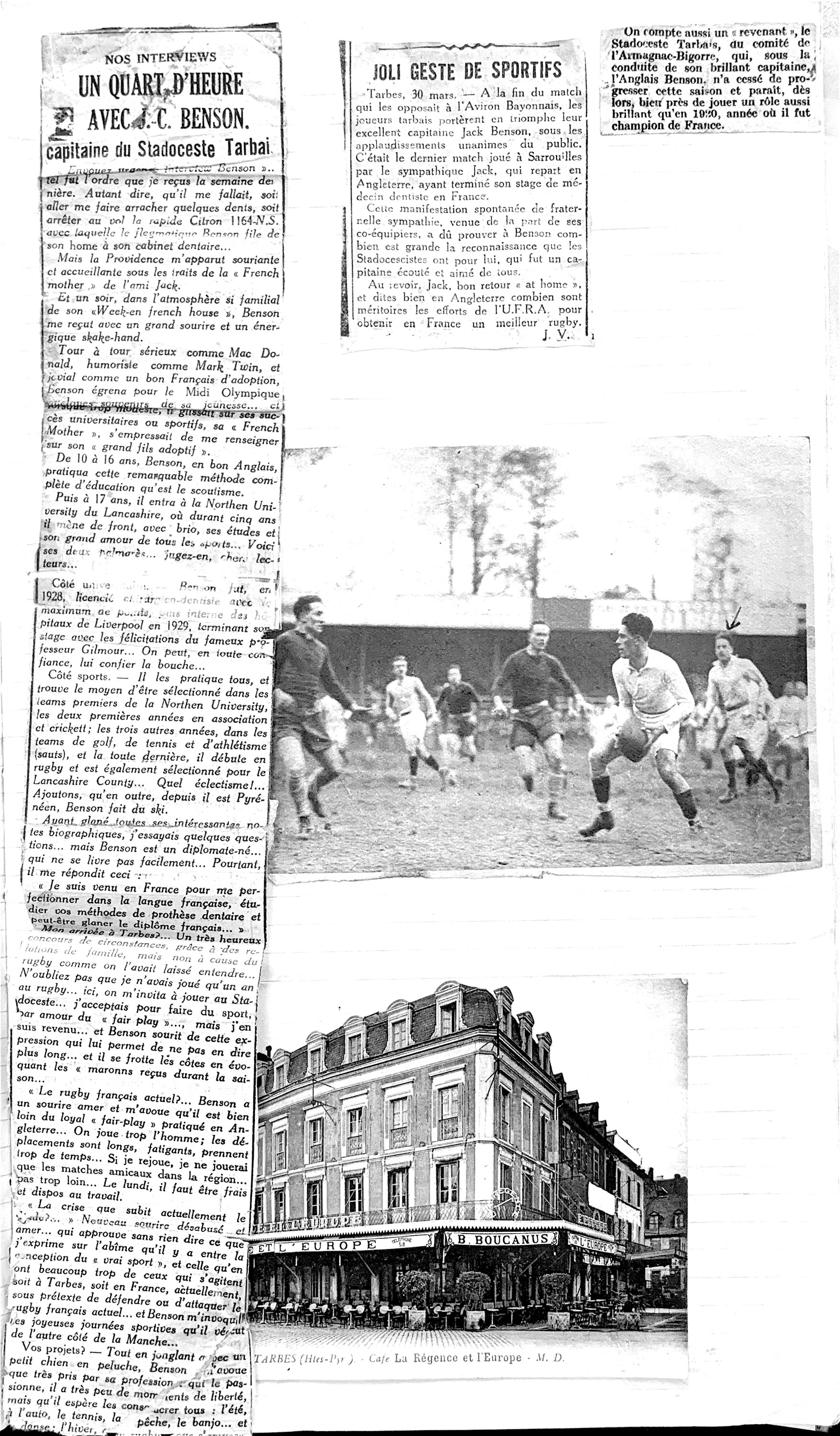 43 | newspaper reports of JB playing for Tarbes plus an action shot which may be against the Springboks |