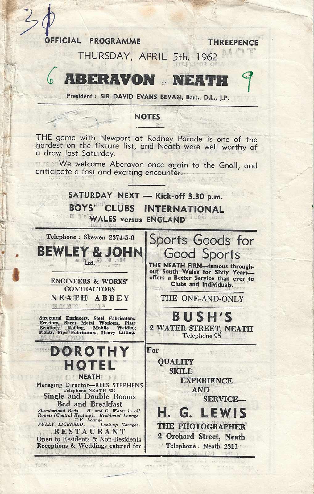 Neath v Aberavon | 10 Oct 1964 | The Gnoll, Neath | 16-3 | fair - number & score written on
