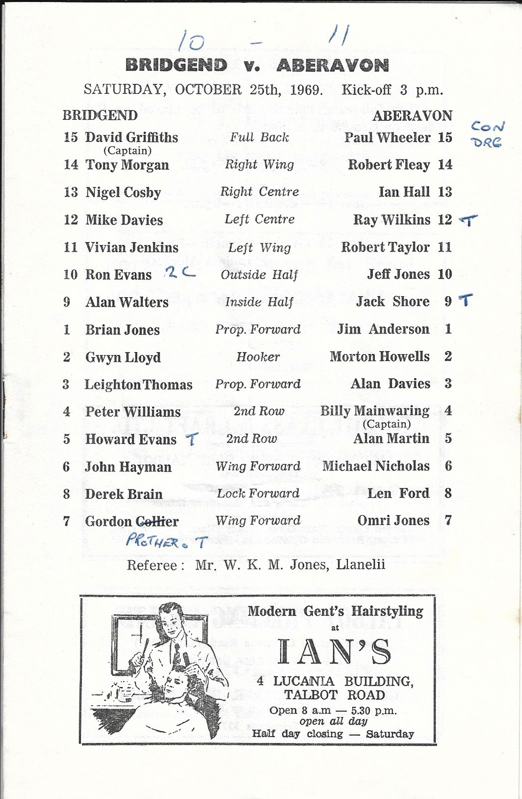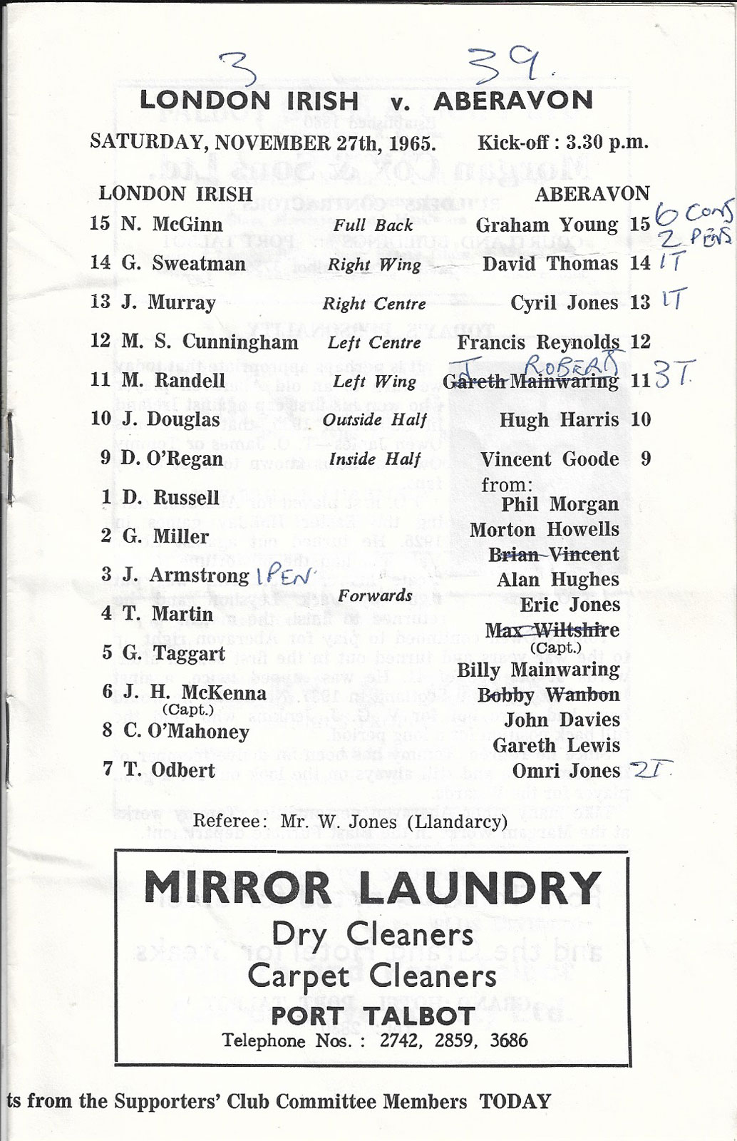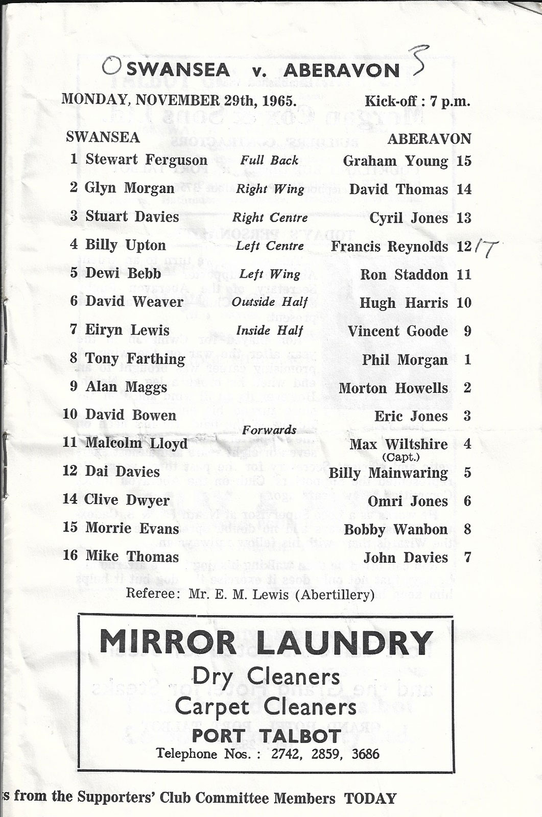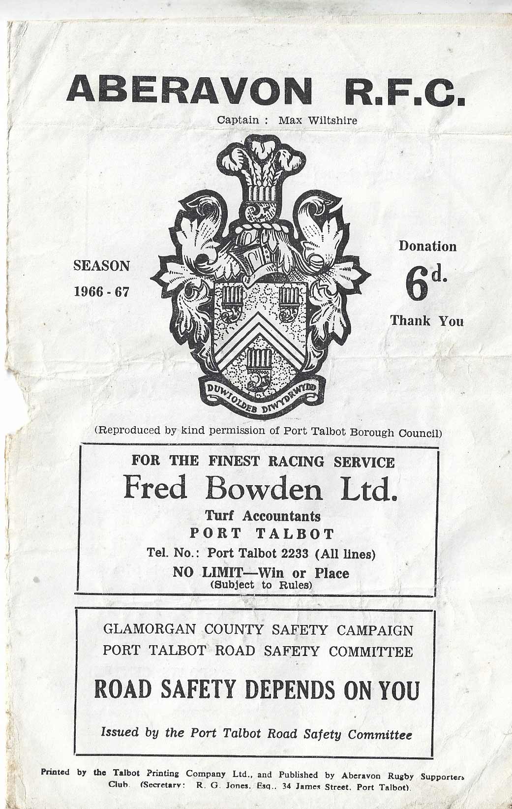 for Aberavon RFC away programmes please visit our other club programme pages......... Bath - Bridgend - Cardiff - Ebbw Vale - English Clubs - Gloucester - Irish Clubs - Irish Provincial - Llanelli & Scarlets - Maesteg - Neath - Newbridge - Newport - Pontypool - Pontypridd - Saracens - Scottish Club - Swansea - Welsh Clubs |