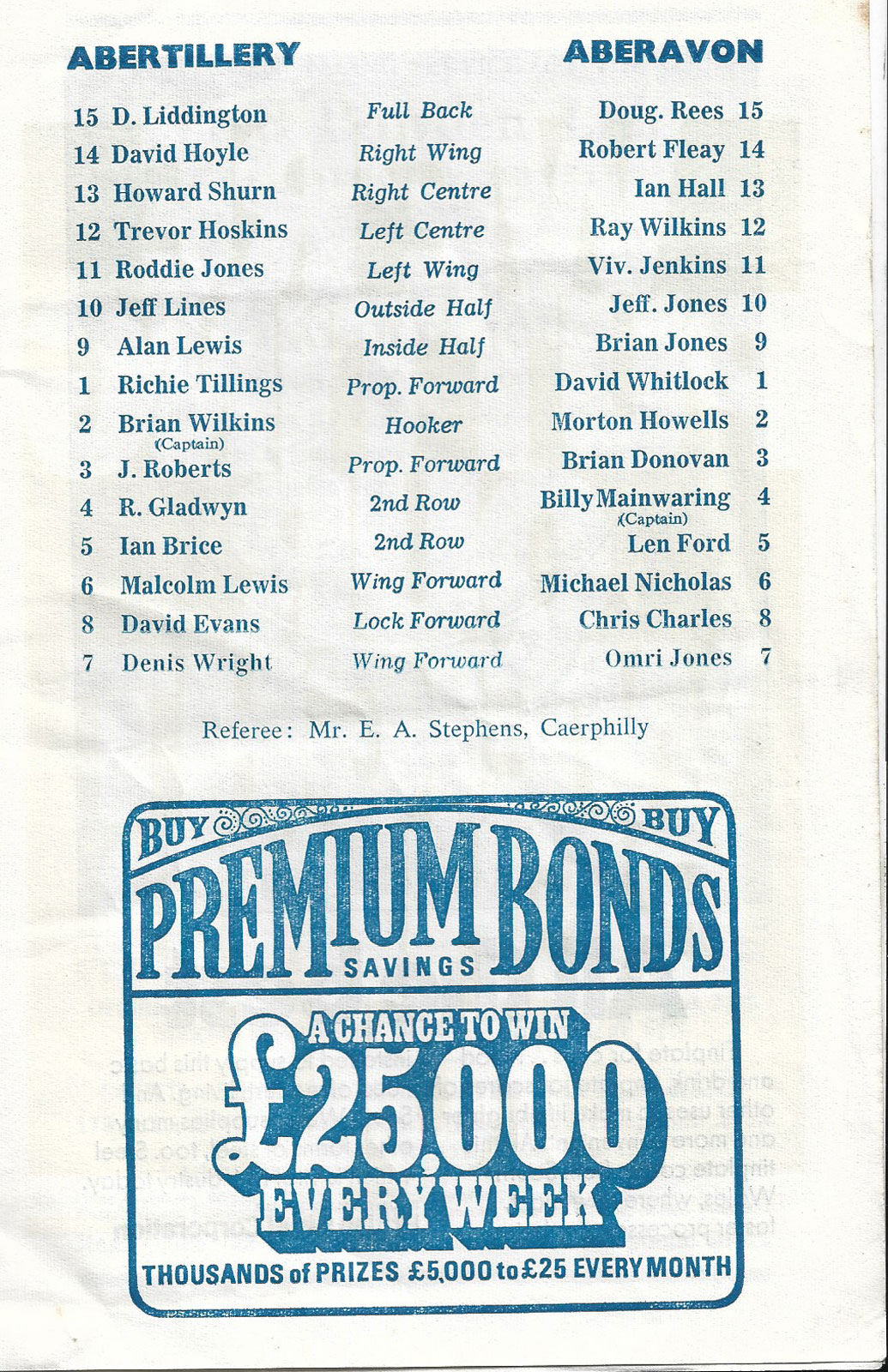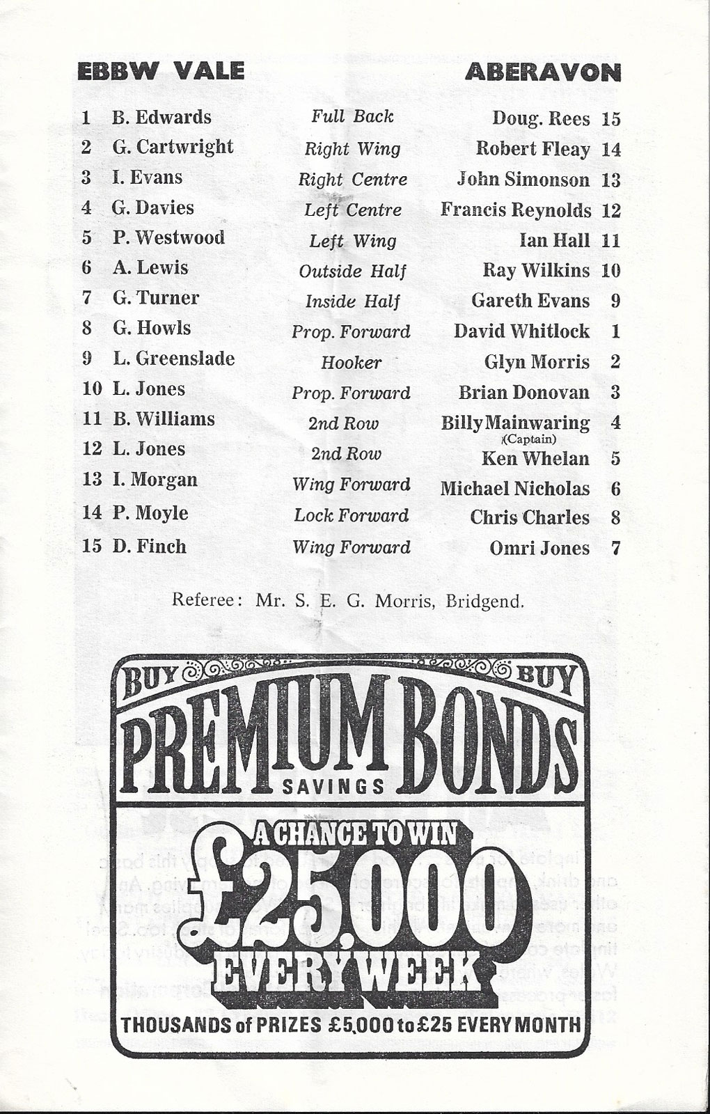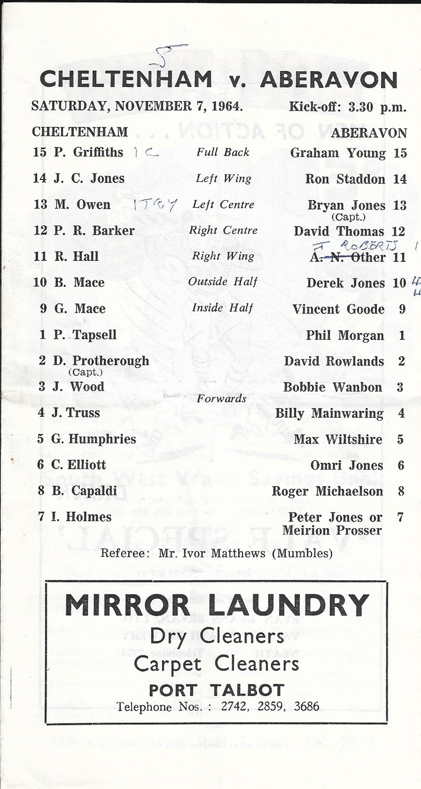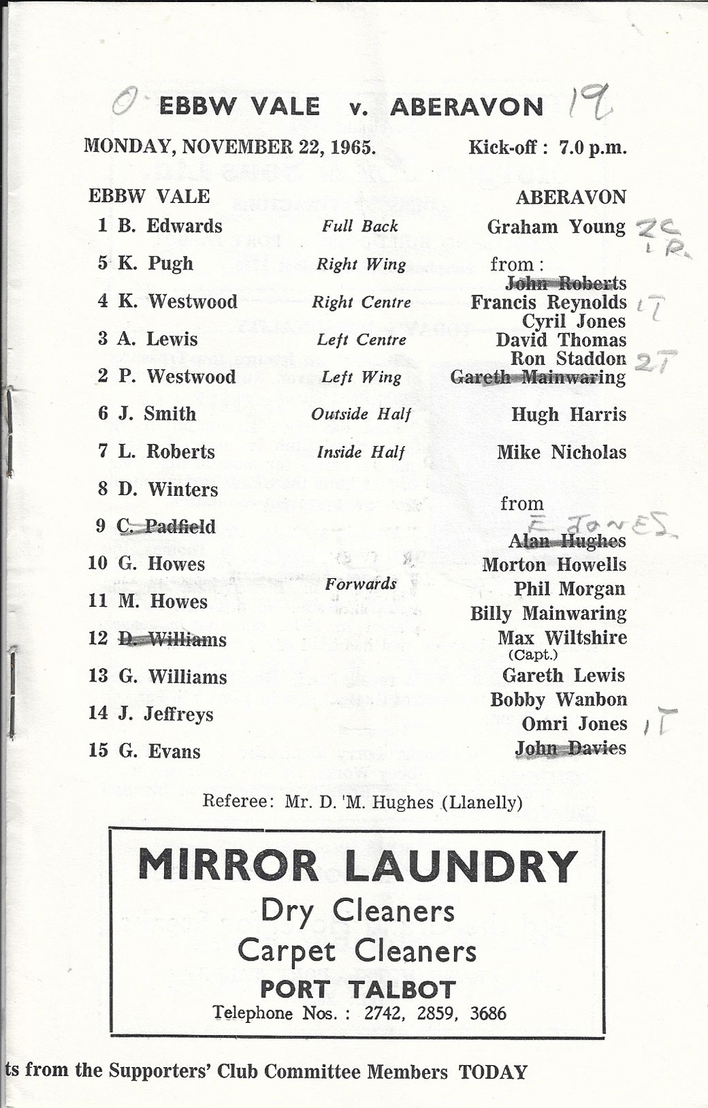 for Aberavon RFC away programmes please visit our other club programme pages......... Bath - Bridgend - Cardiff - Ebbw Vale - English Clubs - Gloucester - Irish Clubs - Irish Provincial - Llanelli & Scarlets - Maesteg - Neath - Newbridge - Newport - Pontypool - Pontypridd - Saracens - Scottish Club - Swansea - Welsh Clubs |