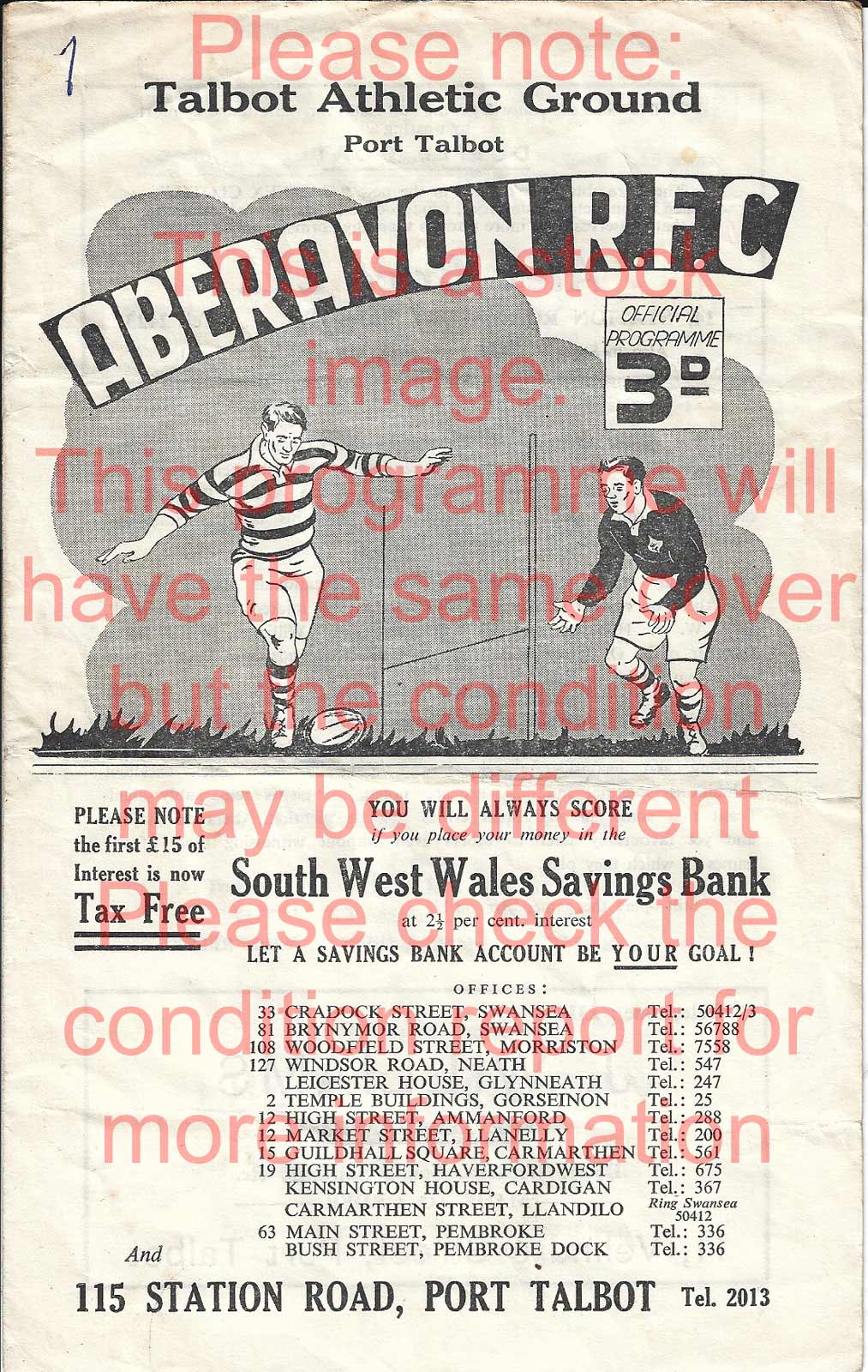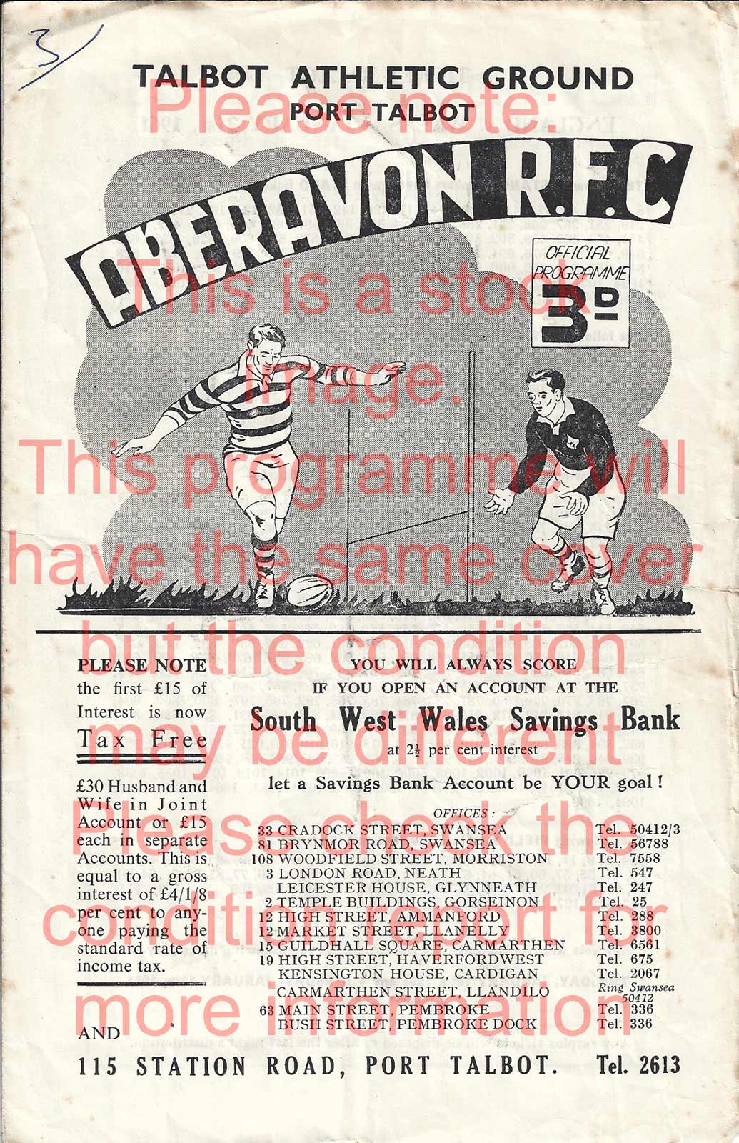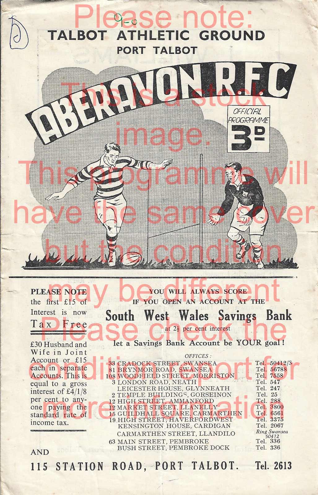 Aberavon v Cardiff | 31 Jan 1953 | Aberavon | good - slight crease Ref: RC542-D-prcb-aav19530131cdf - £15.00 |