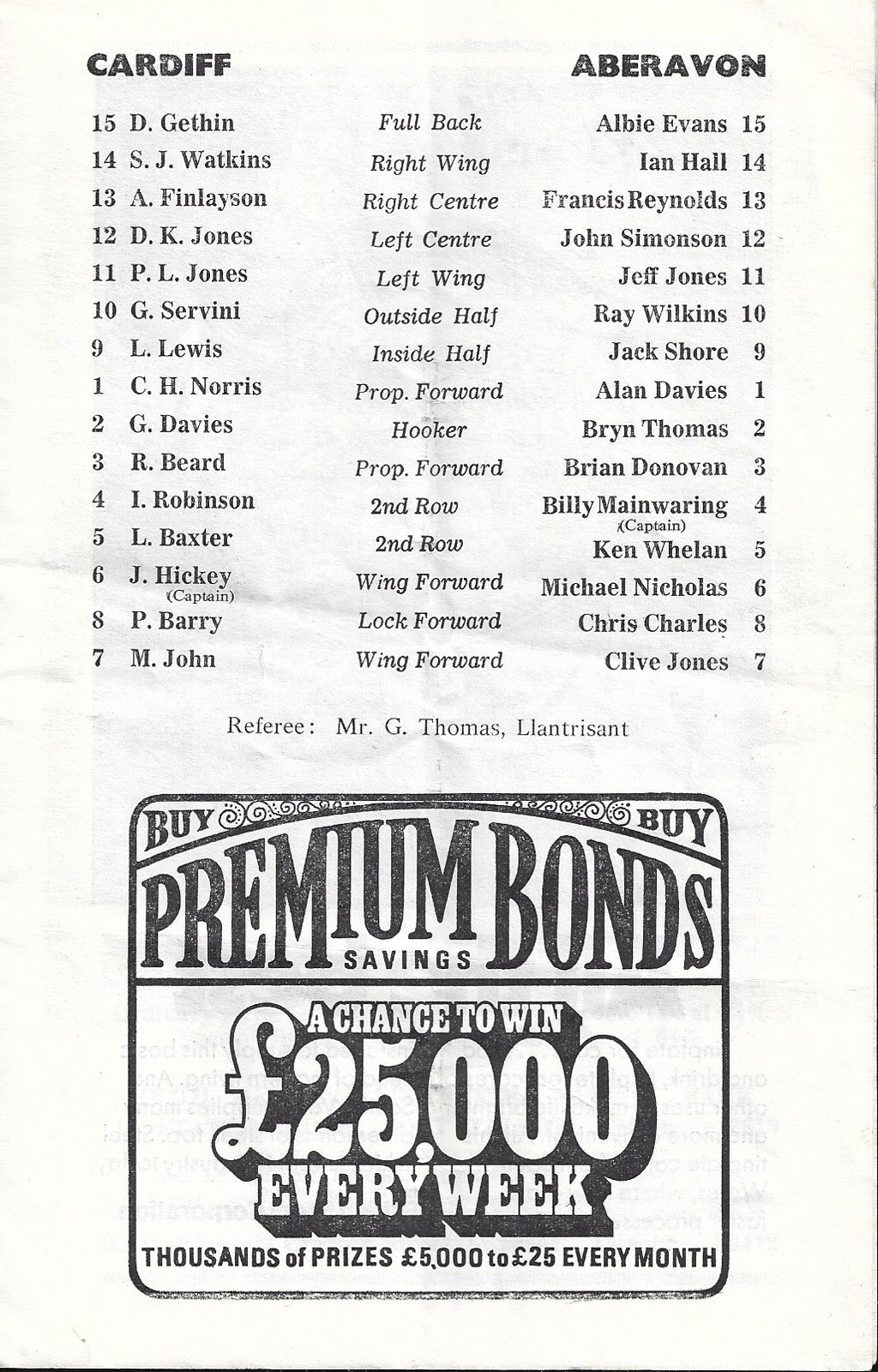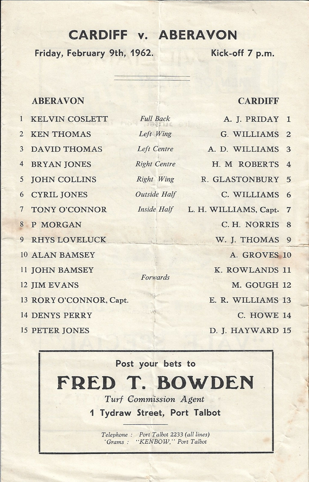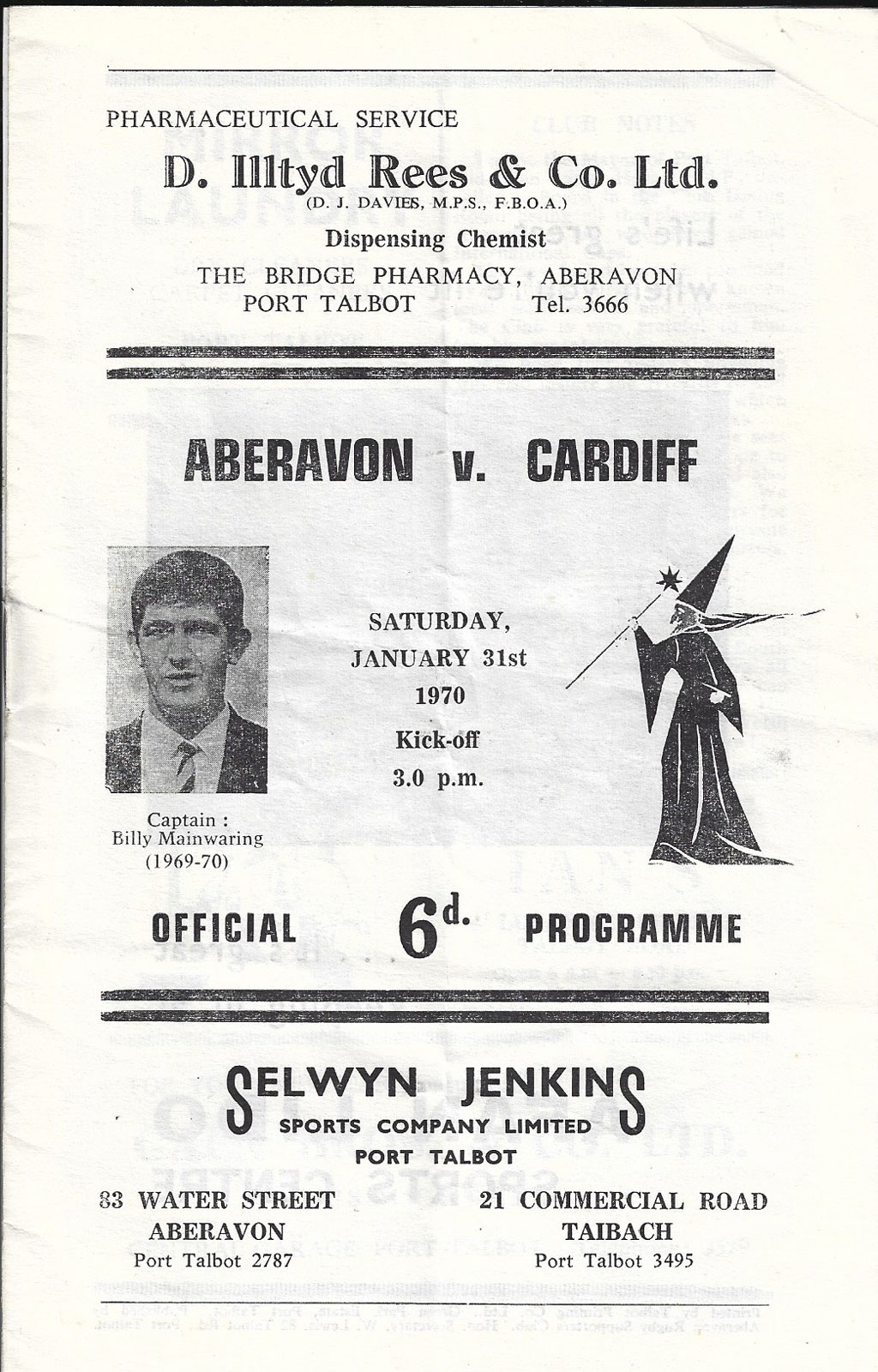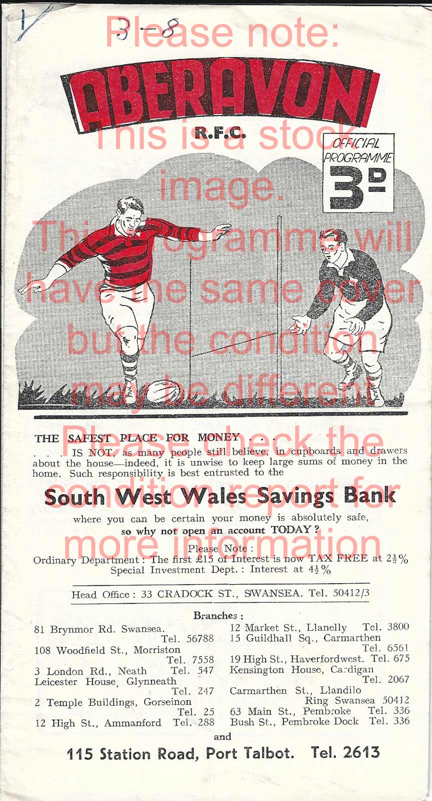 Aberavon v Cardiff | 31 Jan 1953 | Aberavon | good - slight crease Ref: RC542-D-prcb-aav19530131cdf - £15.00 |