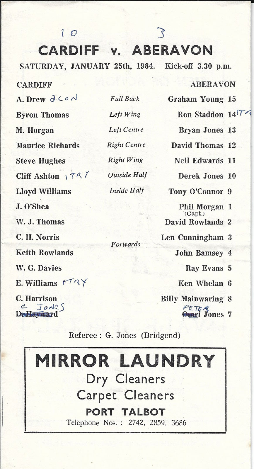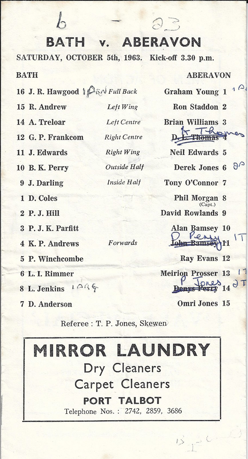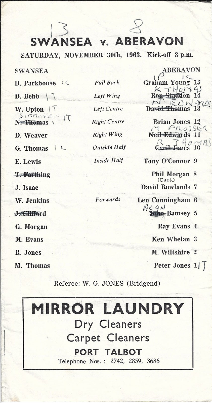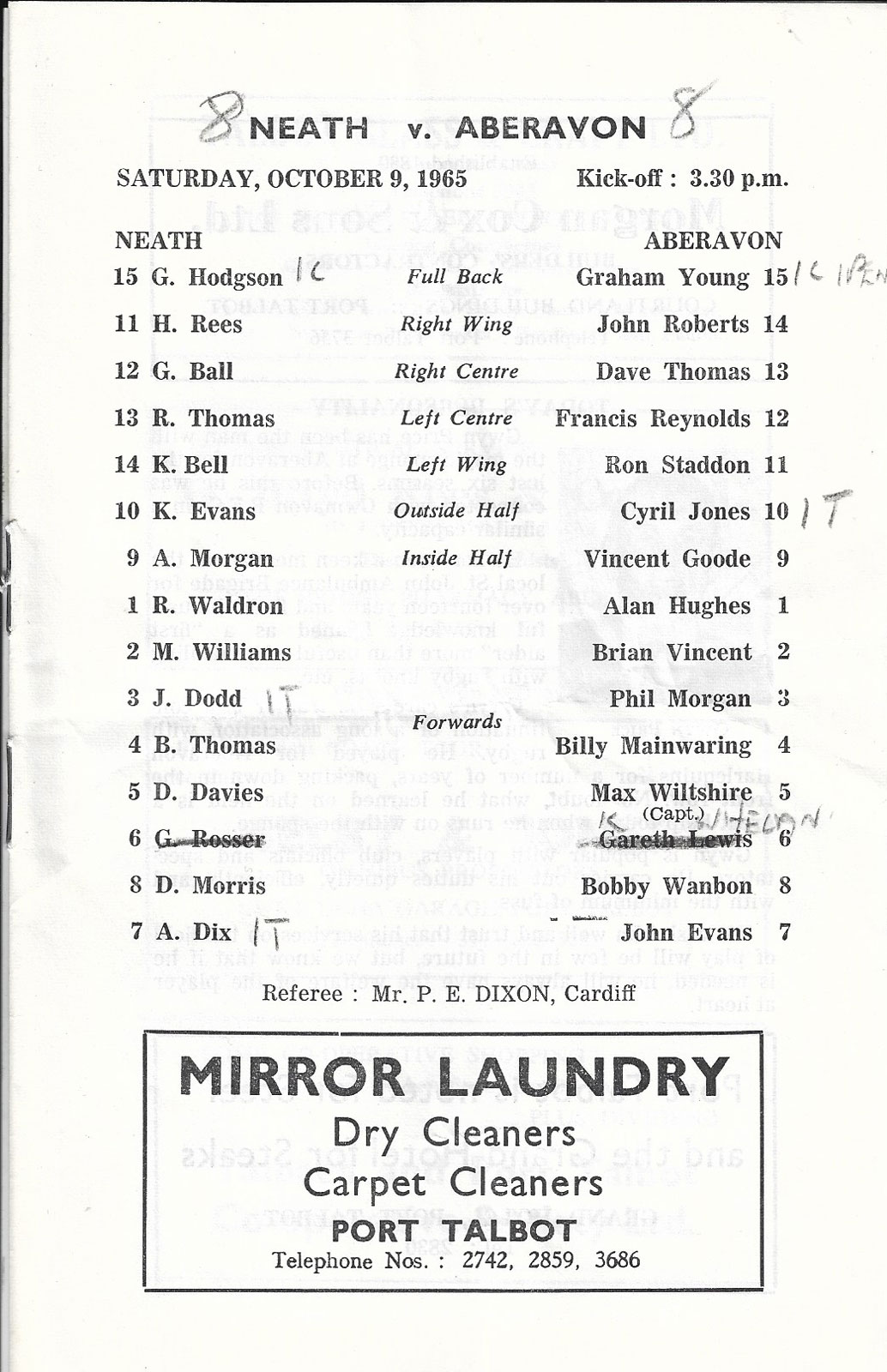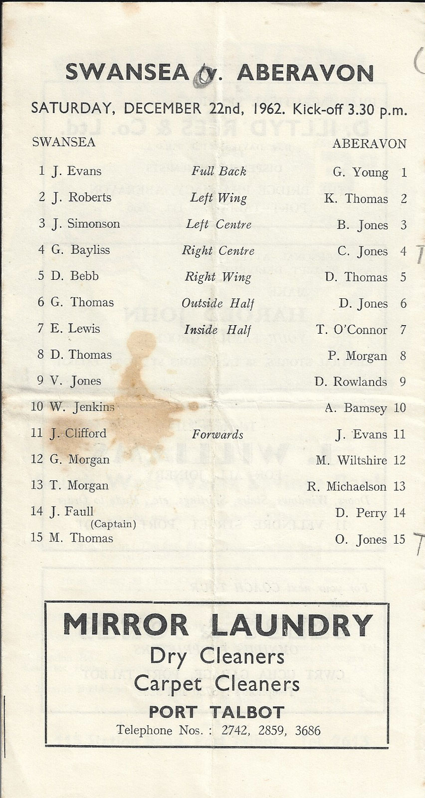 Aberavon v Neath | 28 Feb 1959 | Aberavon | 3-6 | good - folding creases, a little