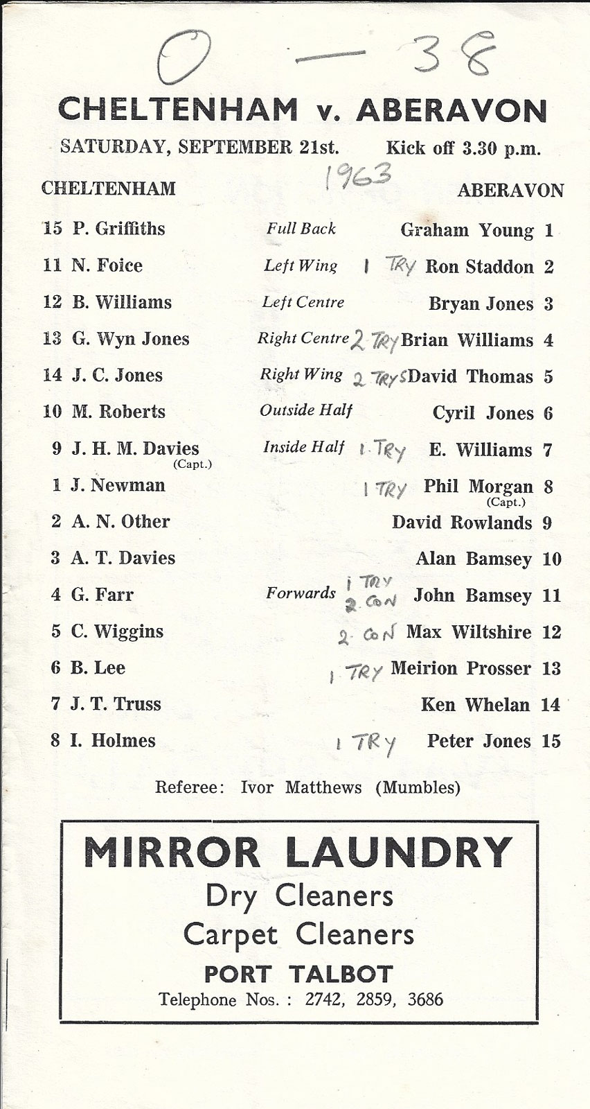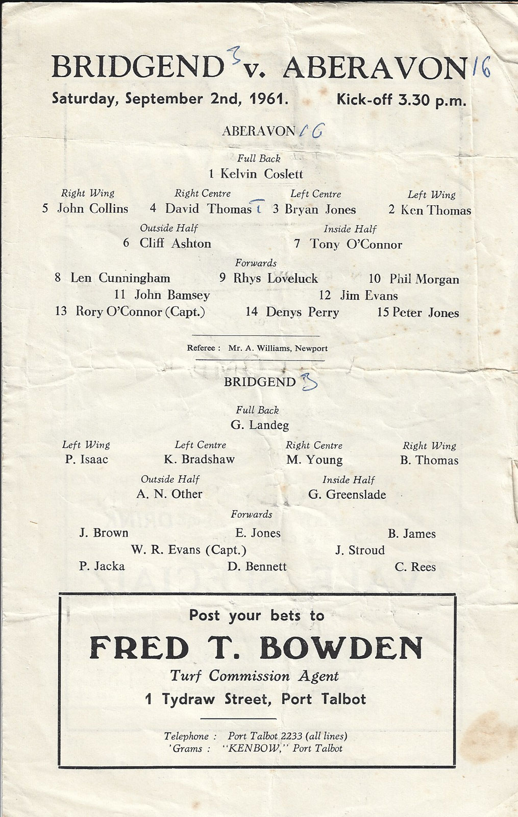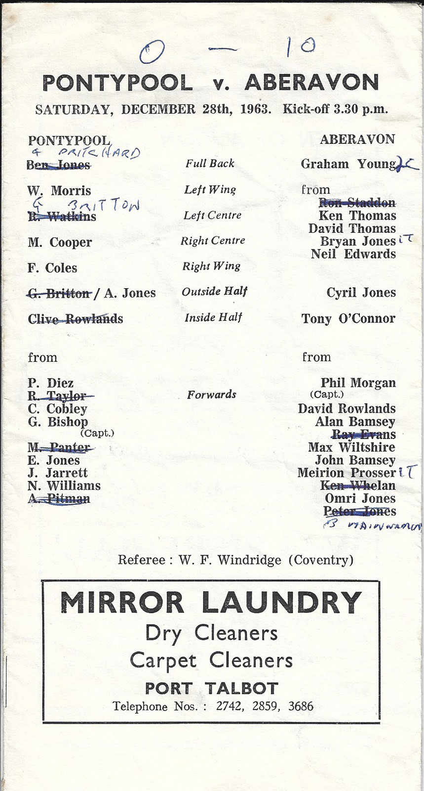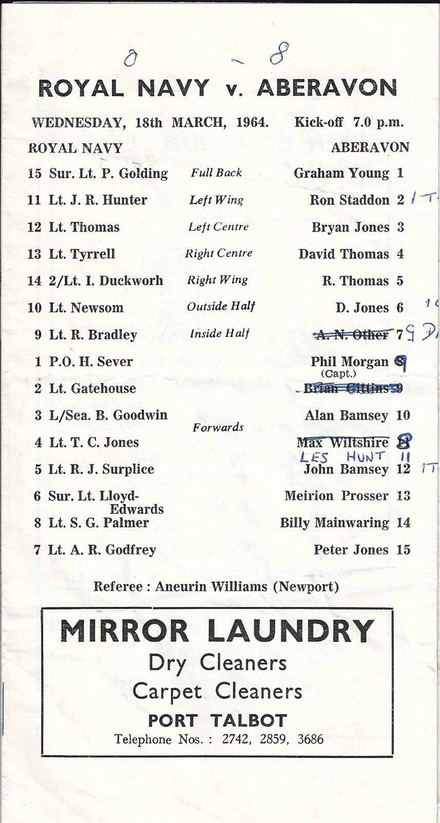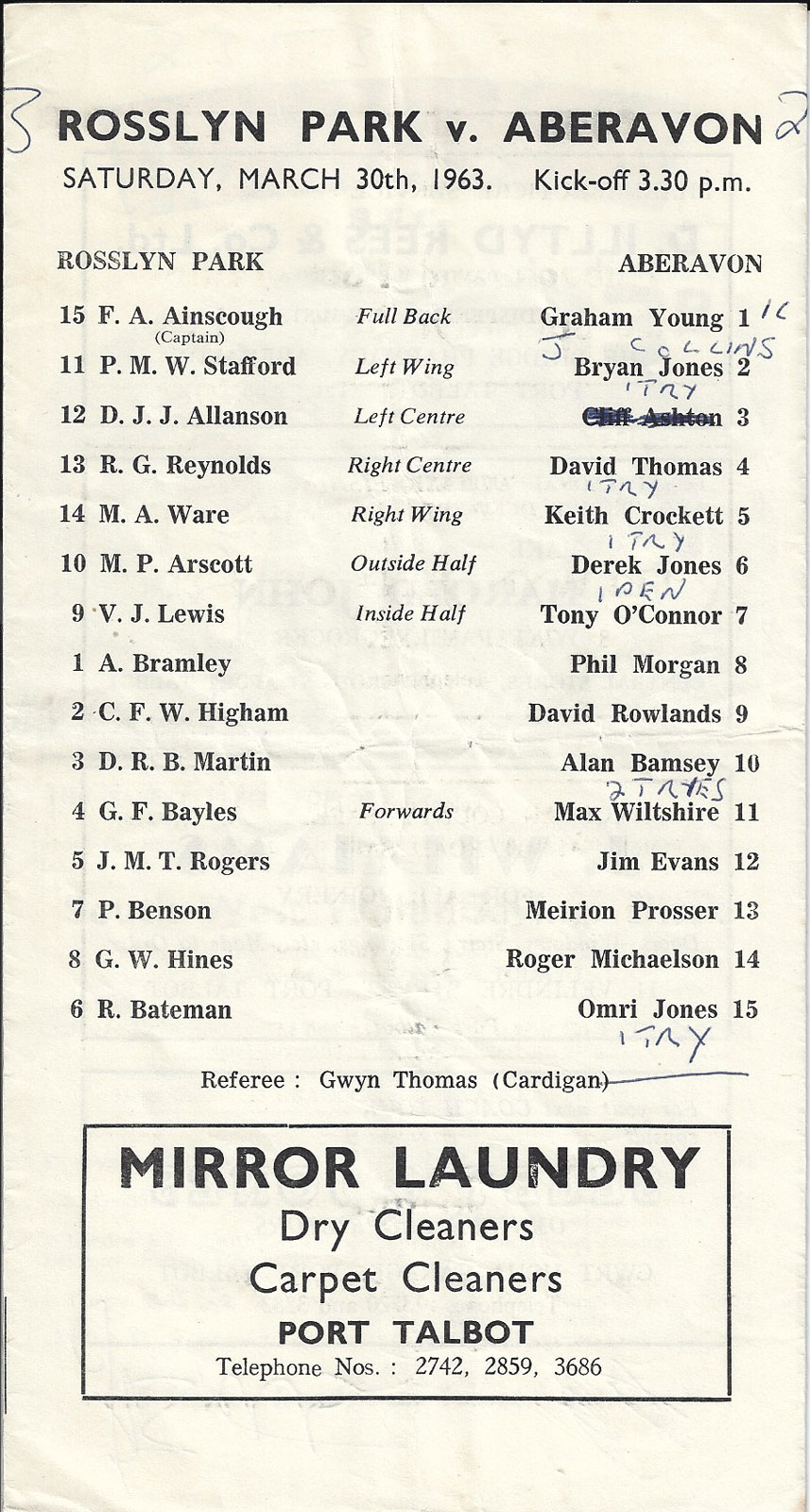 Aberavon v Neath | 28 Feb 1959 | Aberavon | 3-6 | good - folding creases, a little