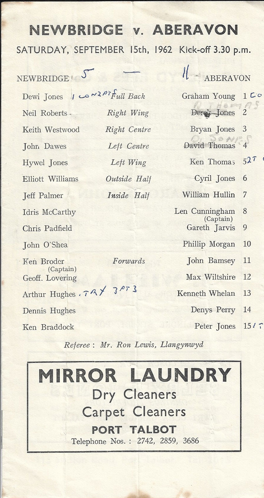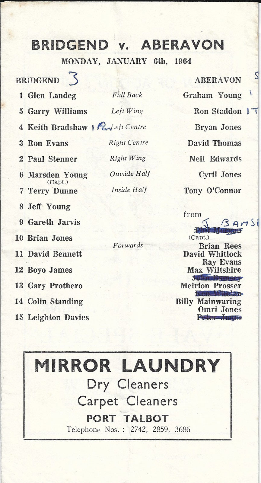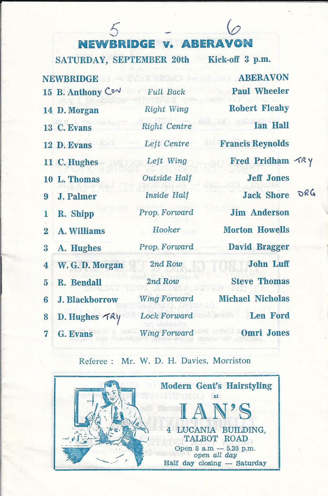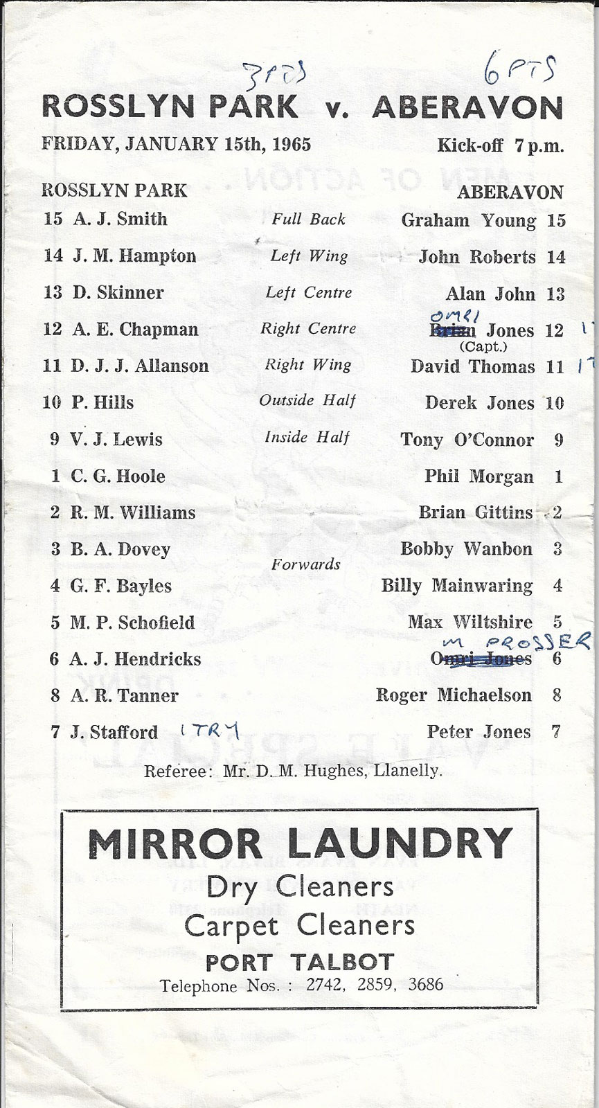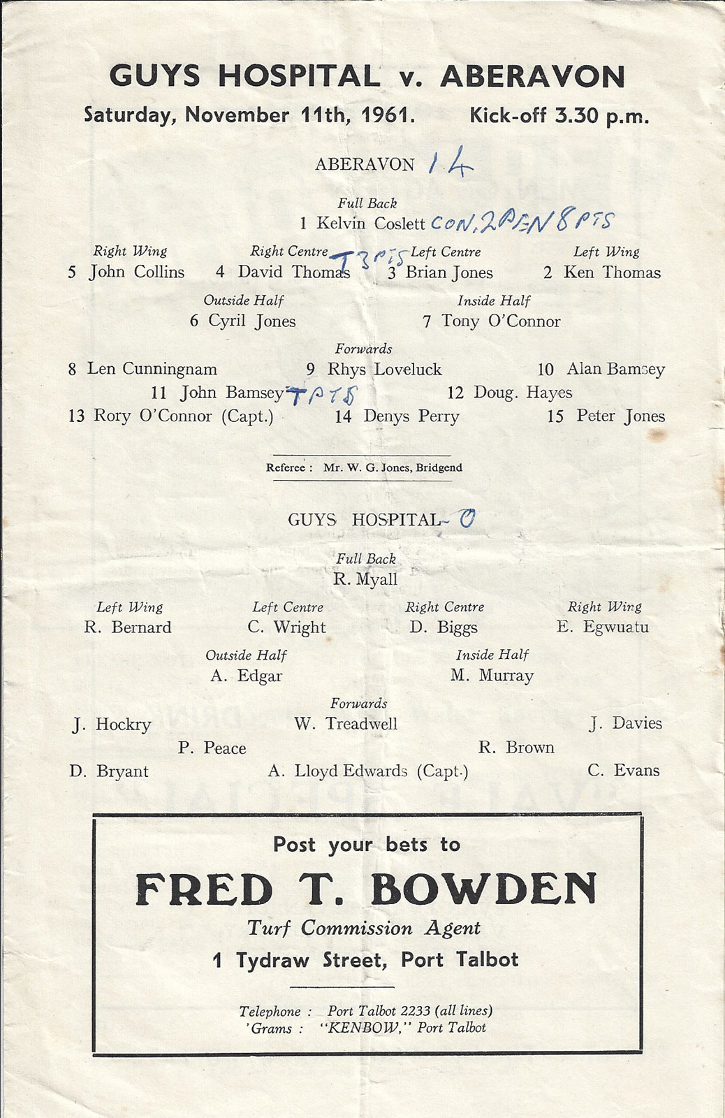Aberavon v Neath | 28 Feb 1959 | Aberavon | 3-6 | good - folding creases, a little
