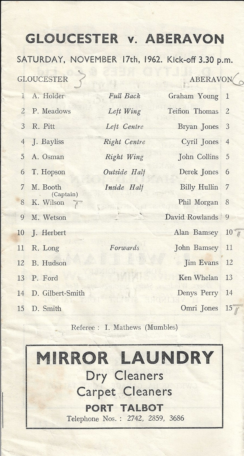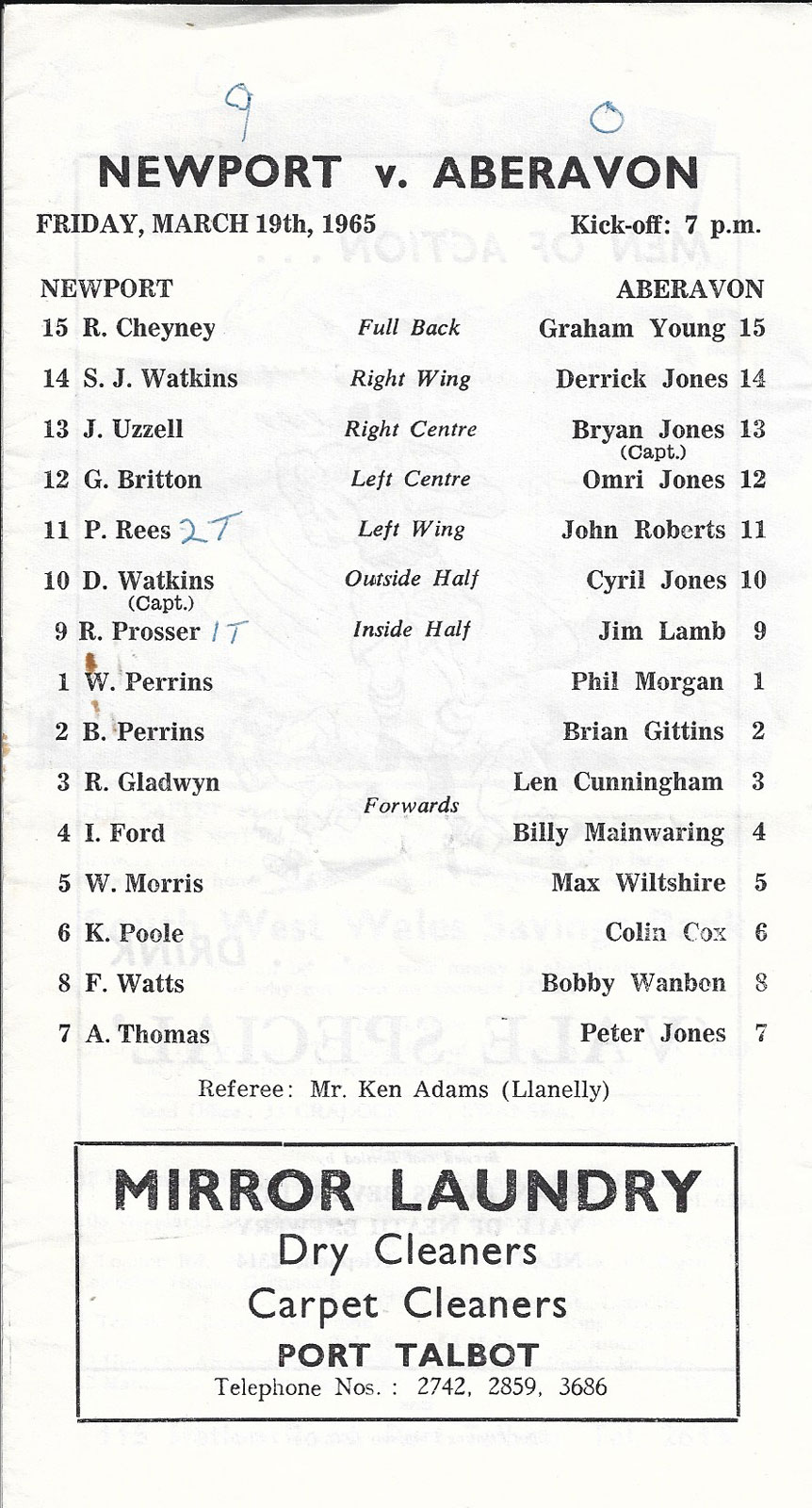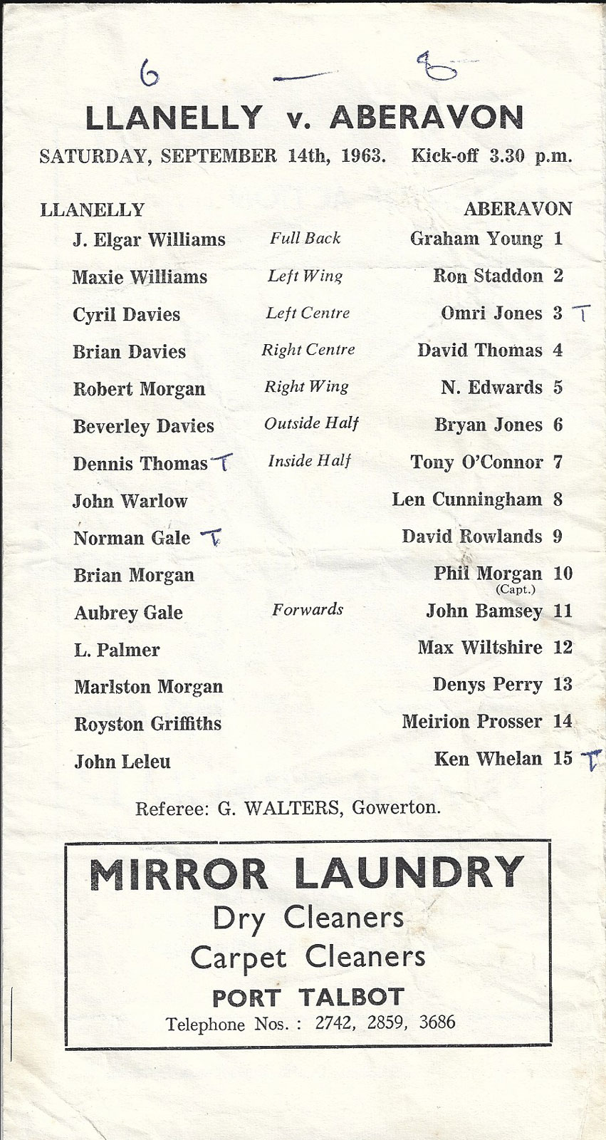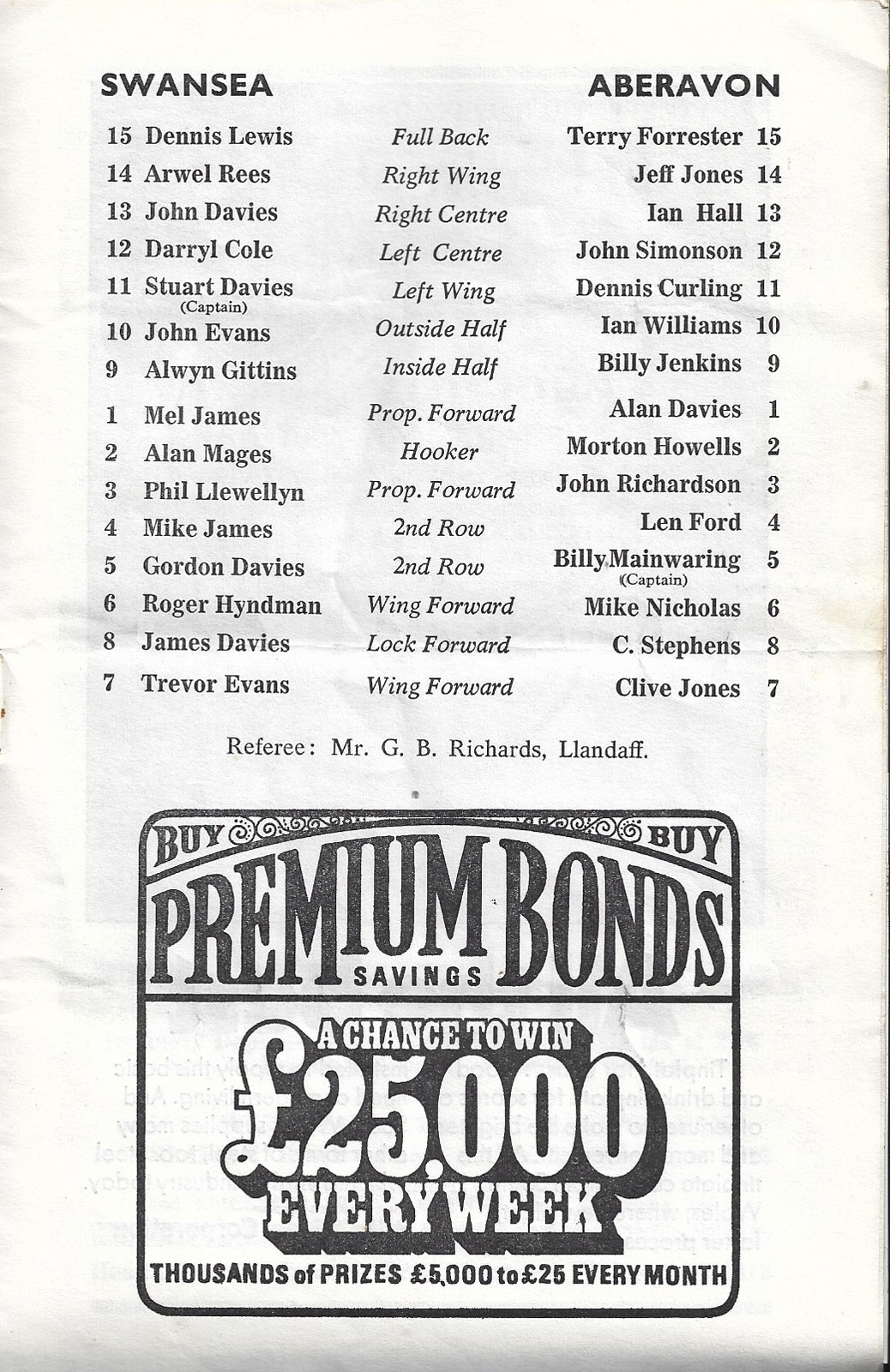Aberavon v Neath | 28 Feb 1959 | Aberavon | 3-6 | good - folding creases, a little