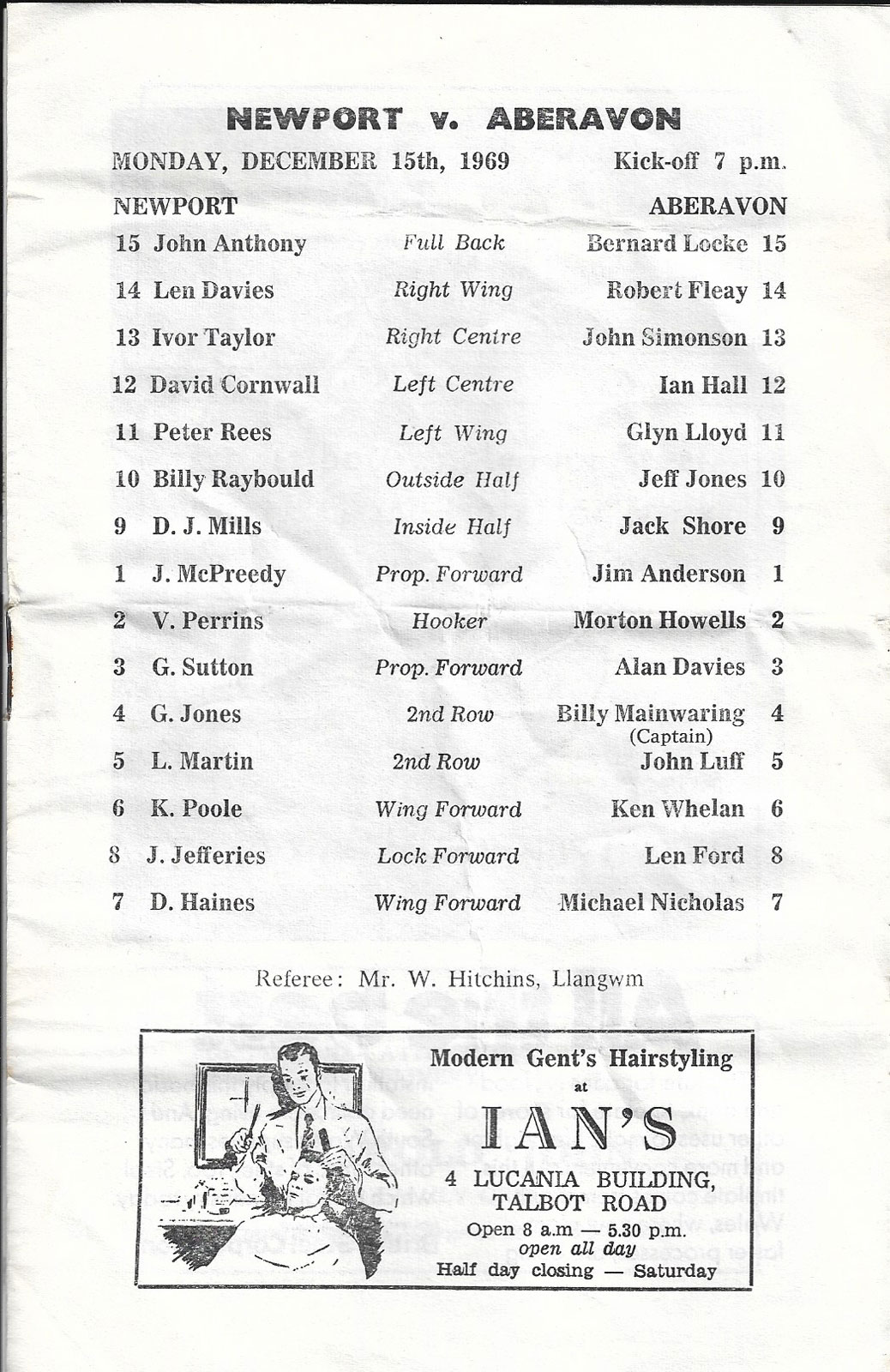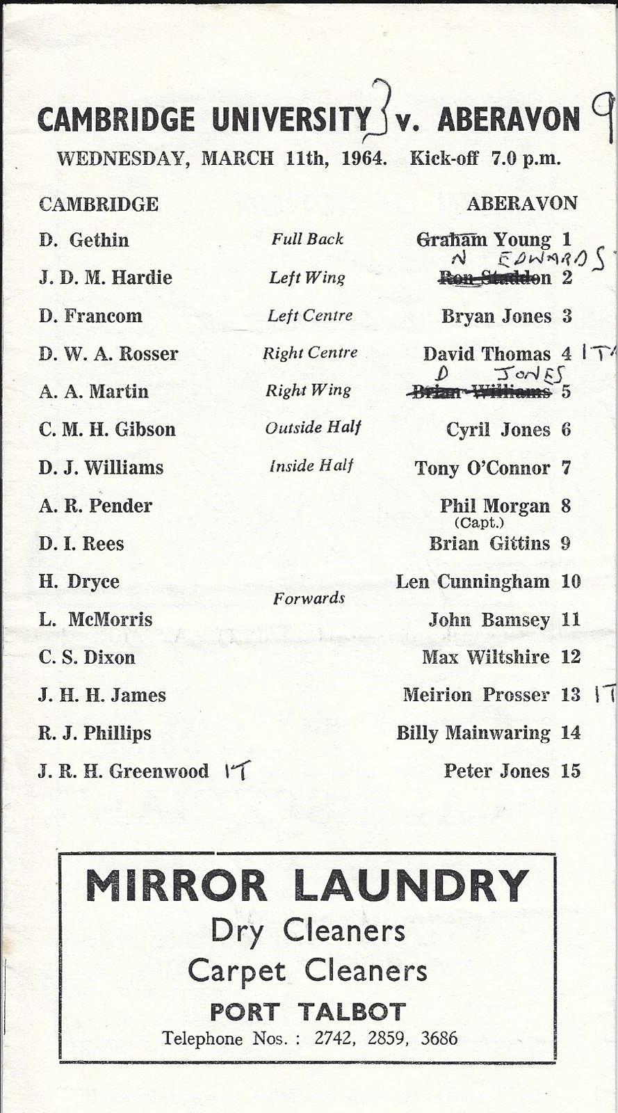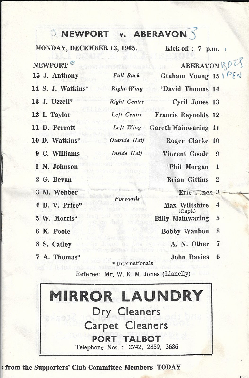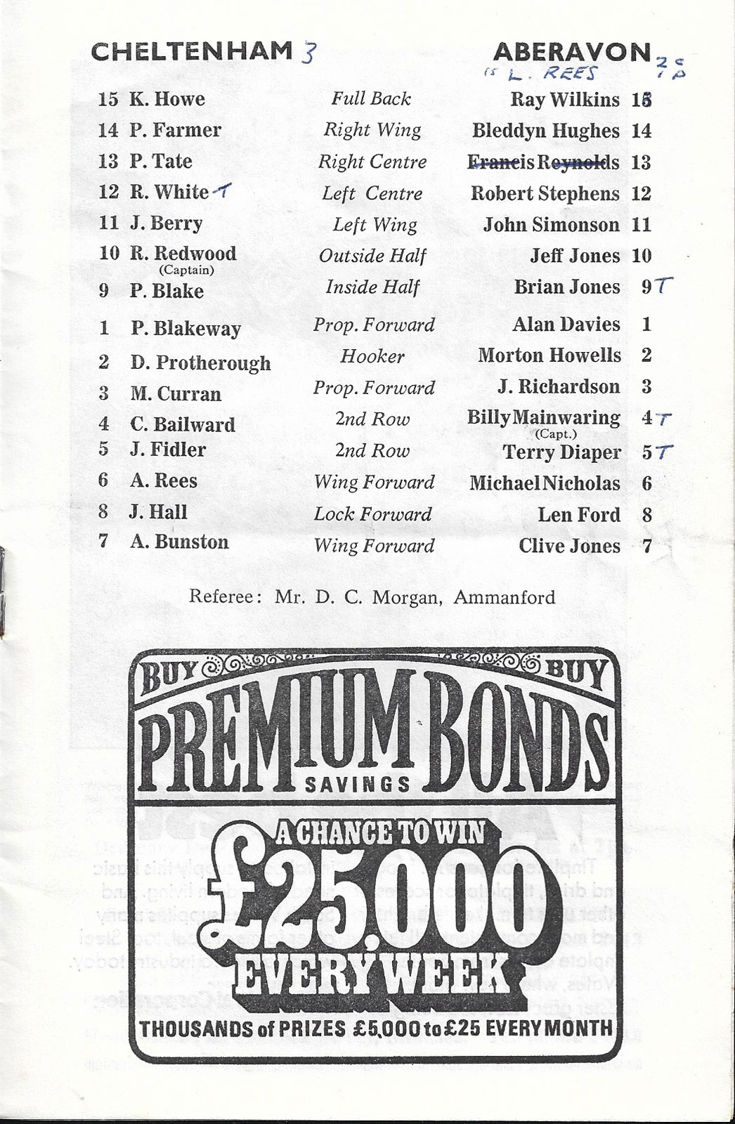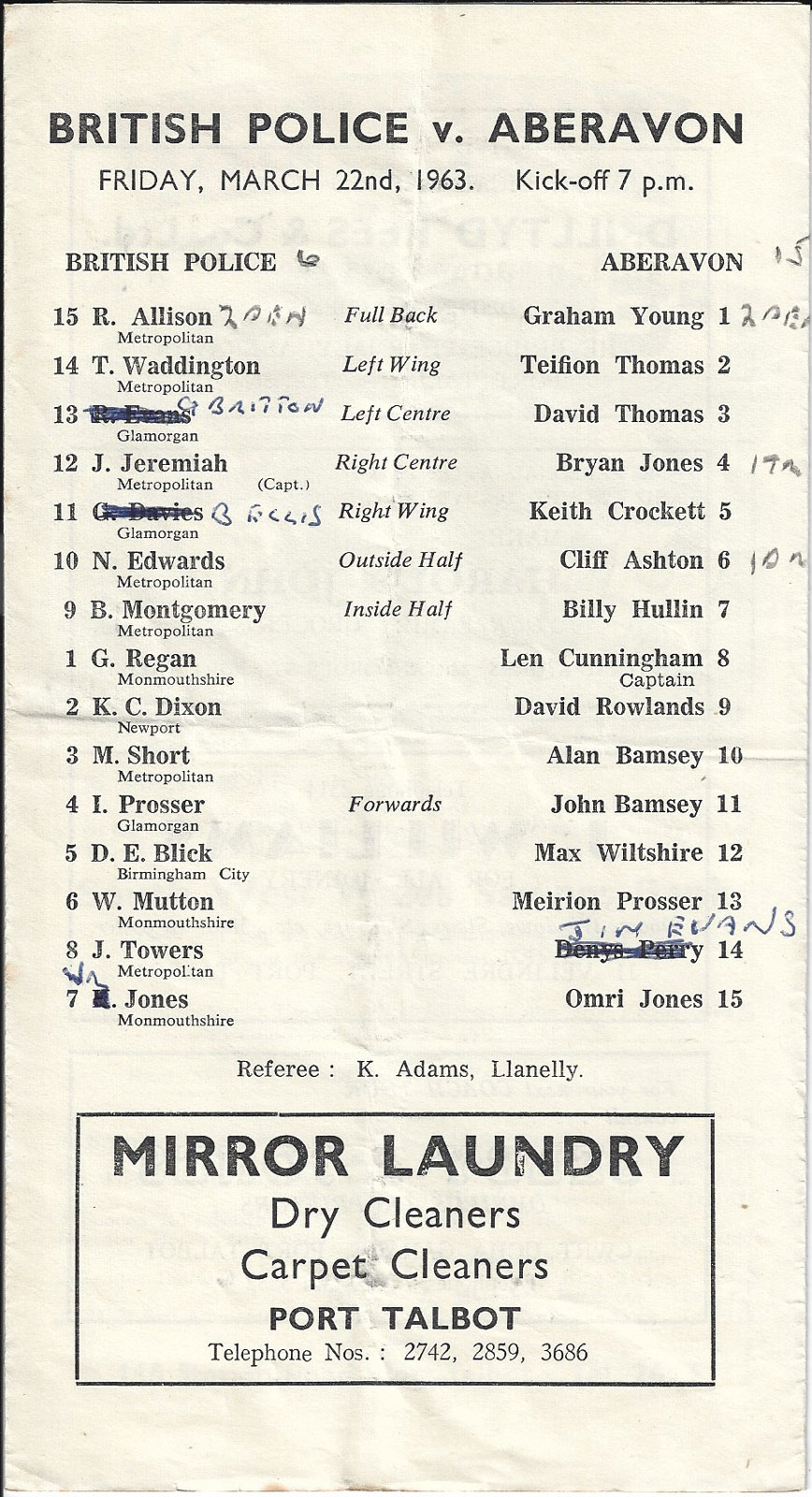 Aberavon v Neath | 28 Feb 1959 | Aberavon | 3-6 | good - folding creases, a little