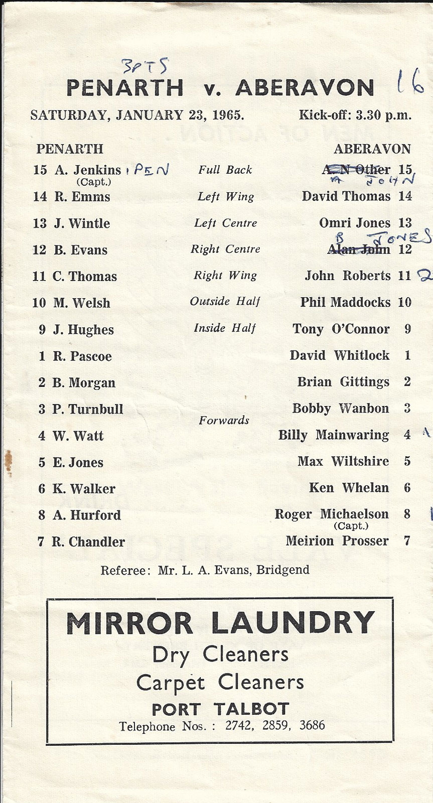 Aberavon v Penarth | 2 Jan 1954 | Aberavon | fair - heavy folding creases Ref: B210-E-prcb-aav19540102pen - £6.00 |
