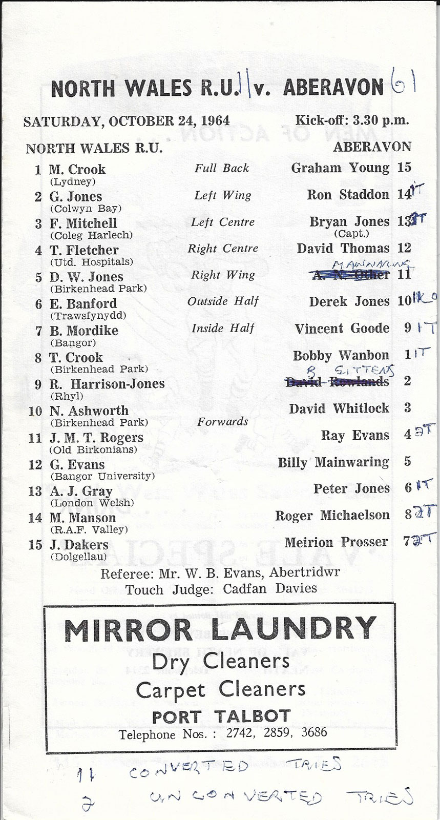 ABERAVON ( RFC ) RUGBY CLUB MEMORABILIA
