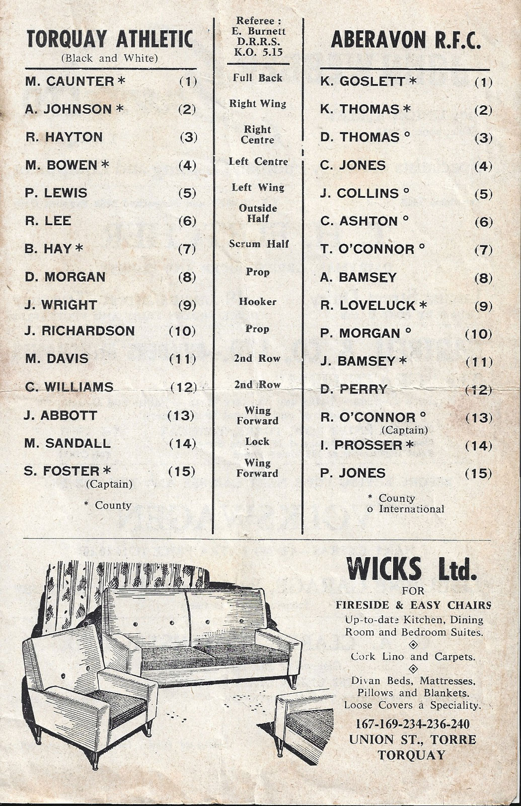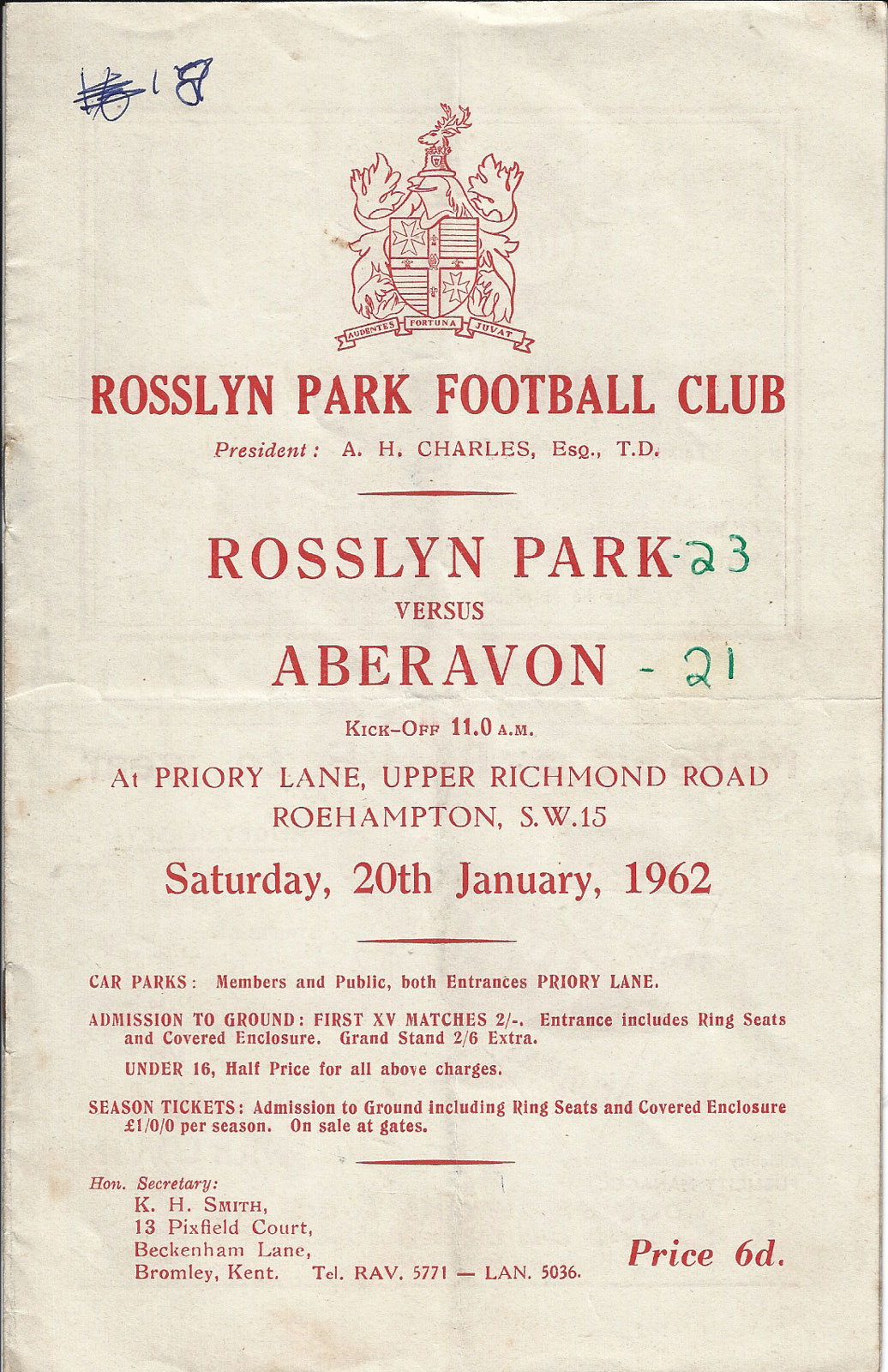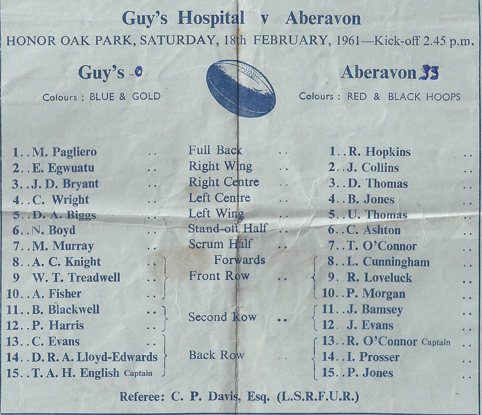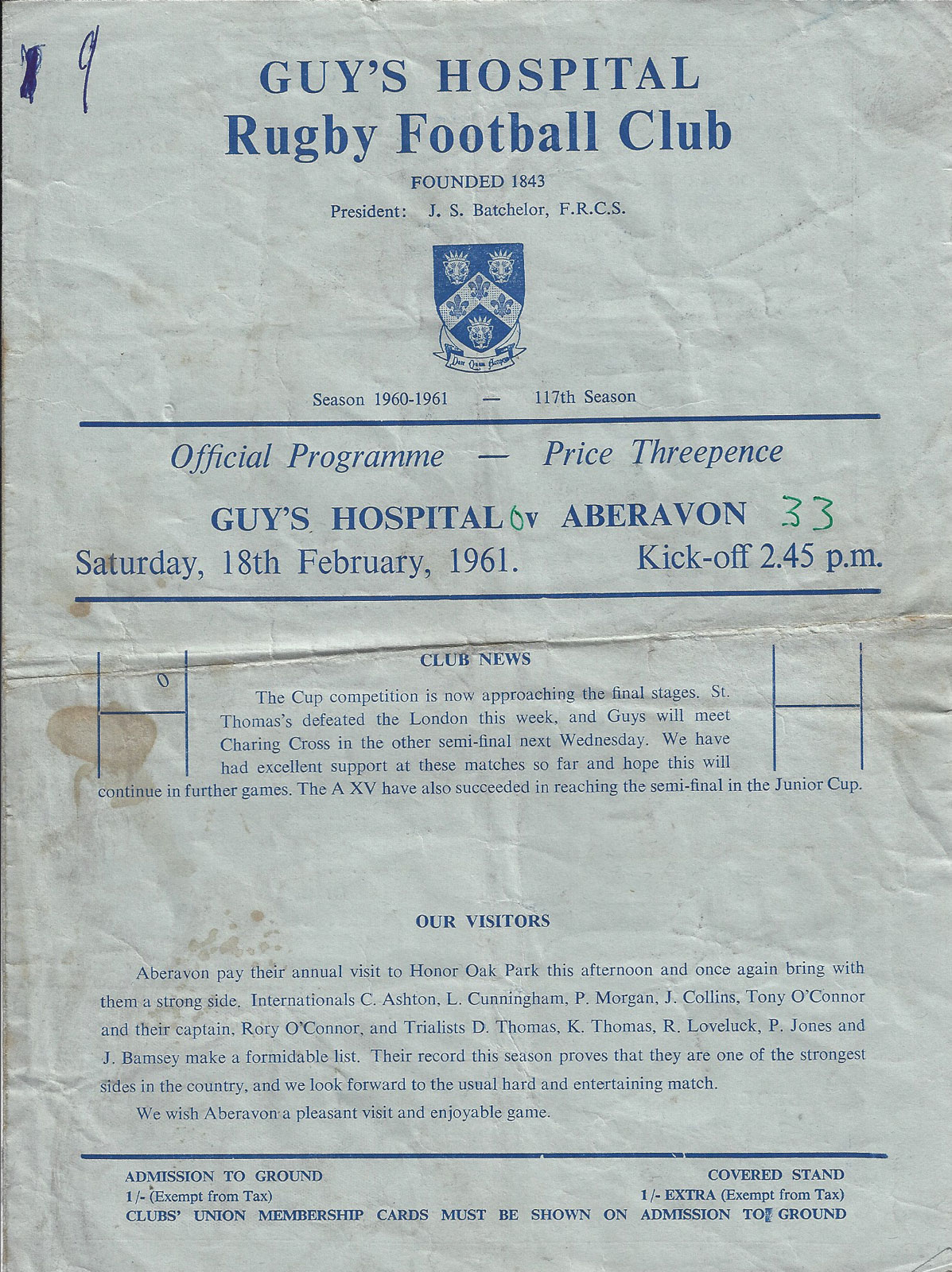 Guy's Hospital v Aberavon | 18 Feb 1961 | Honor Oak Park | fair