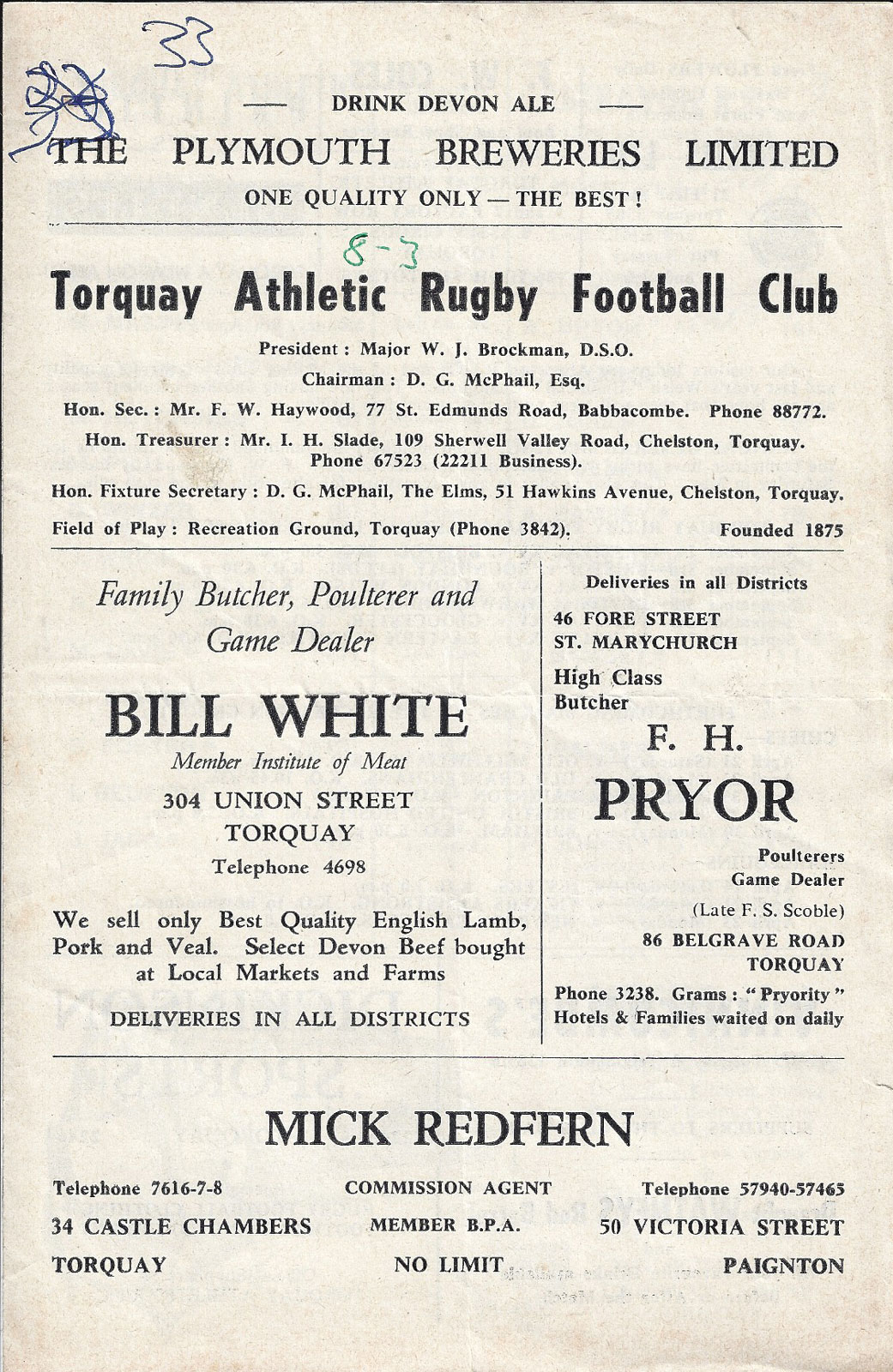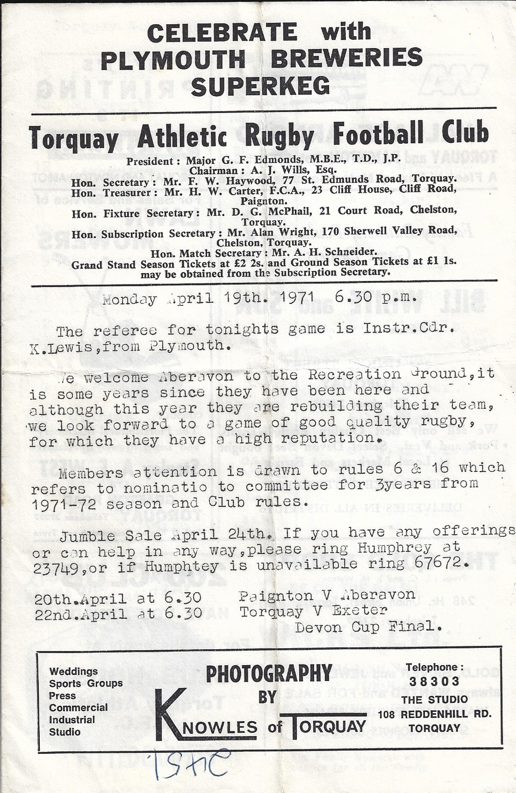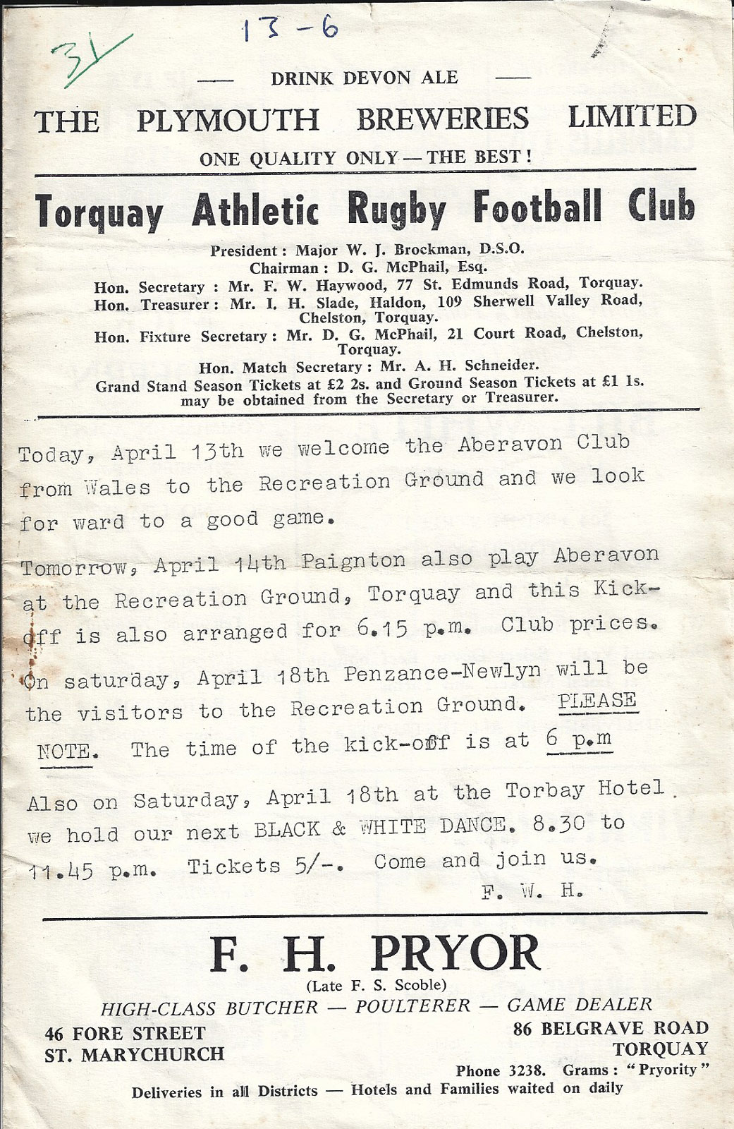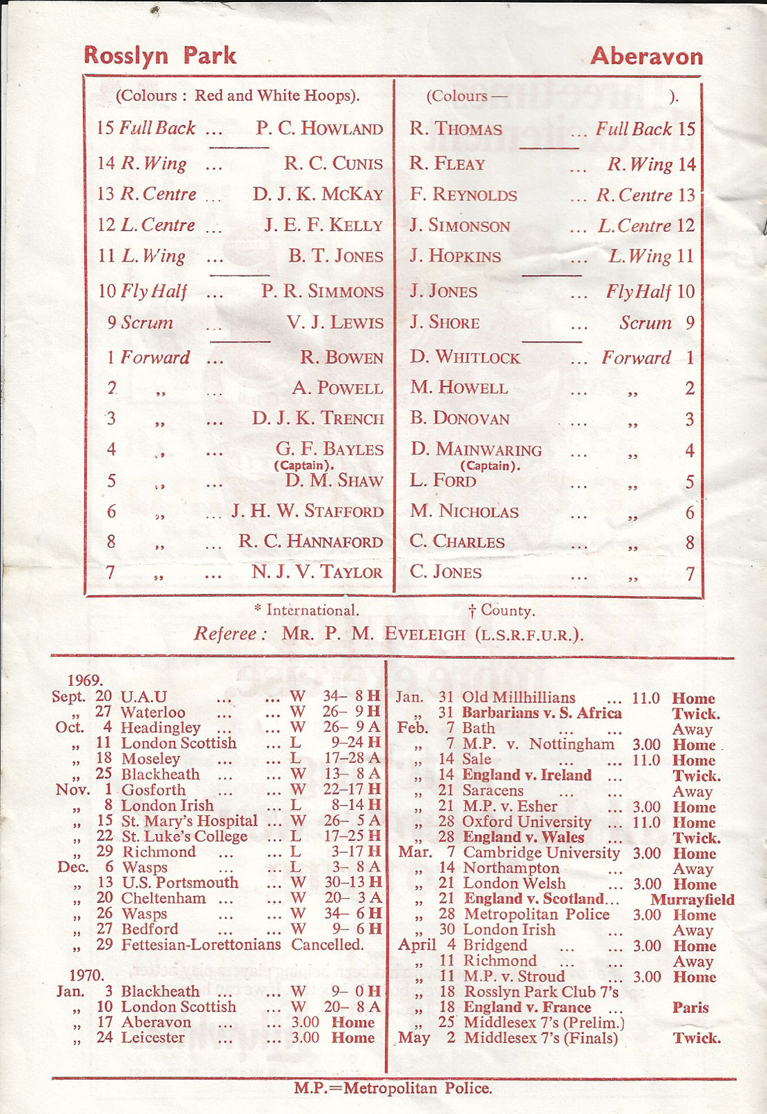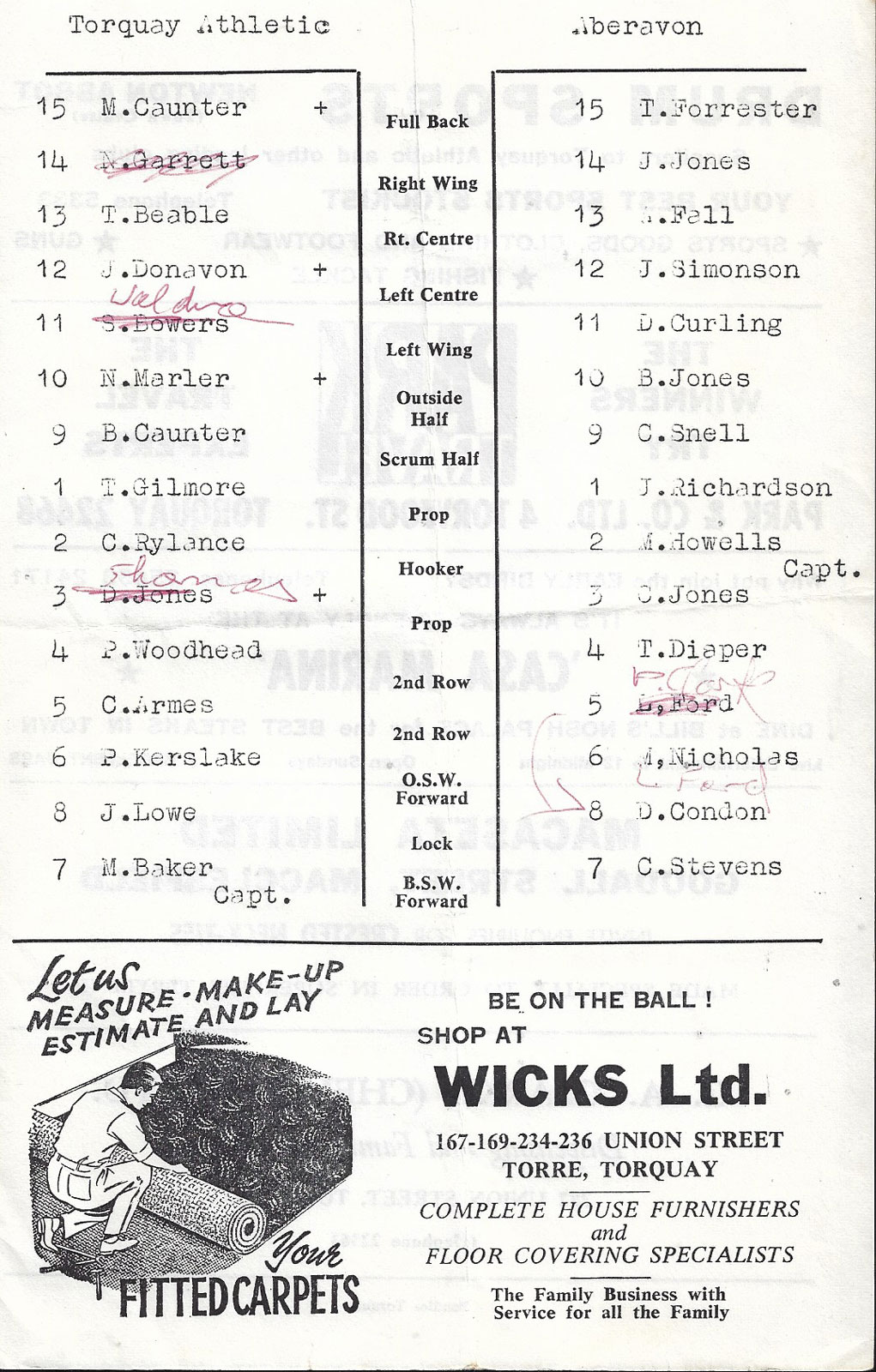 Guy's Hospital v Aberavon | 18 Feb 1961 | Honor Oak Park | fair