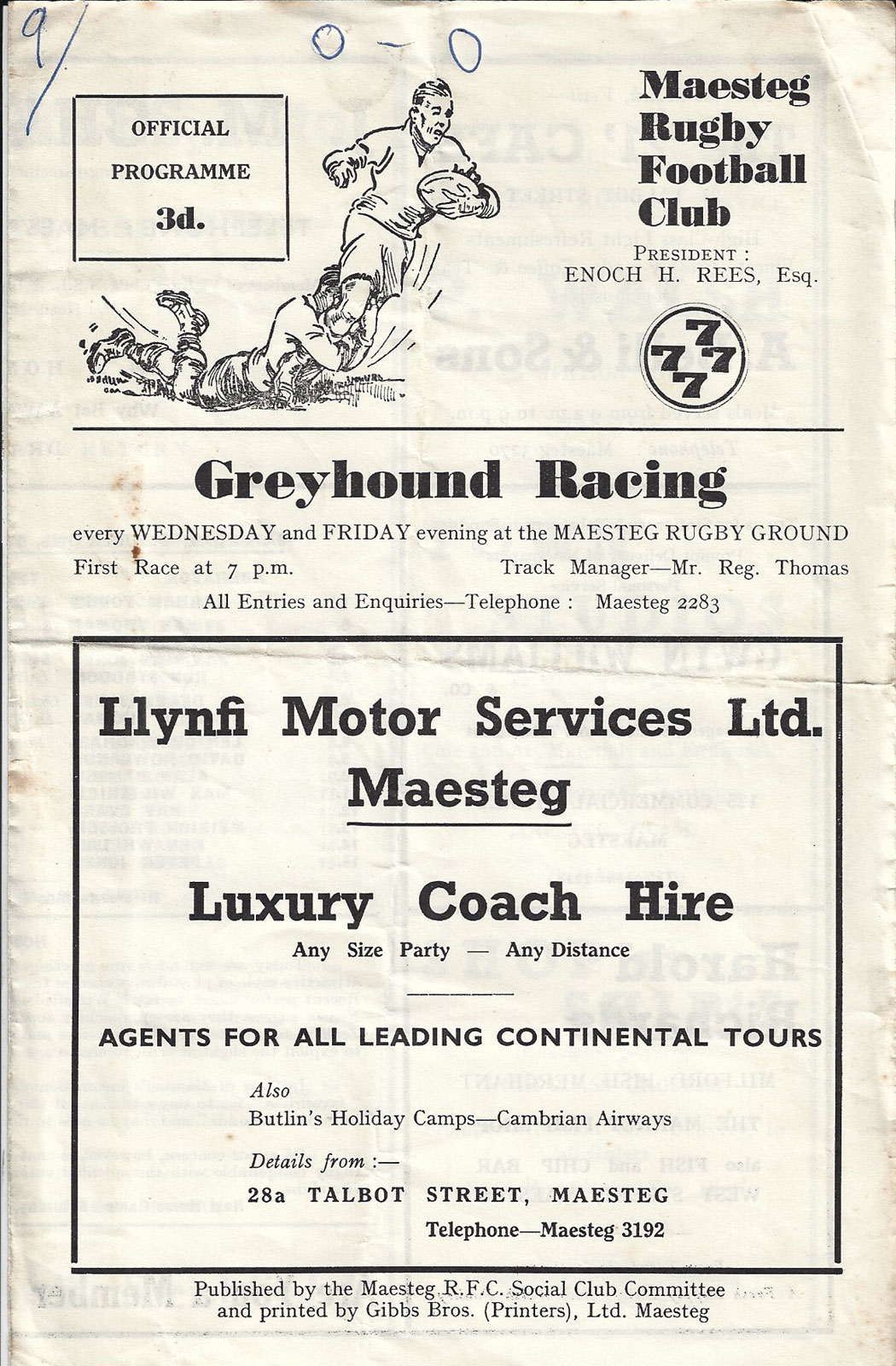 Maesteg v Aberavon | 22 Apr 1963 | Maesteg | good - slight crease, number written