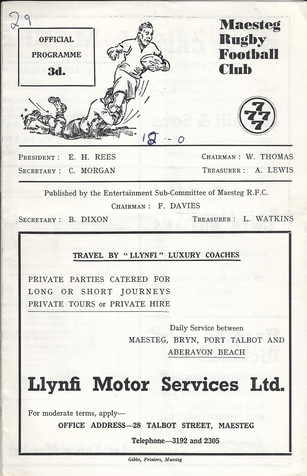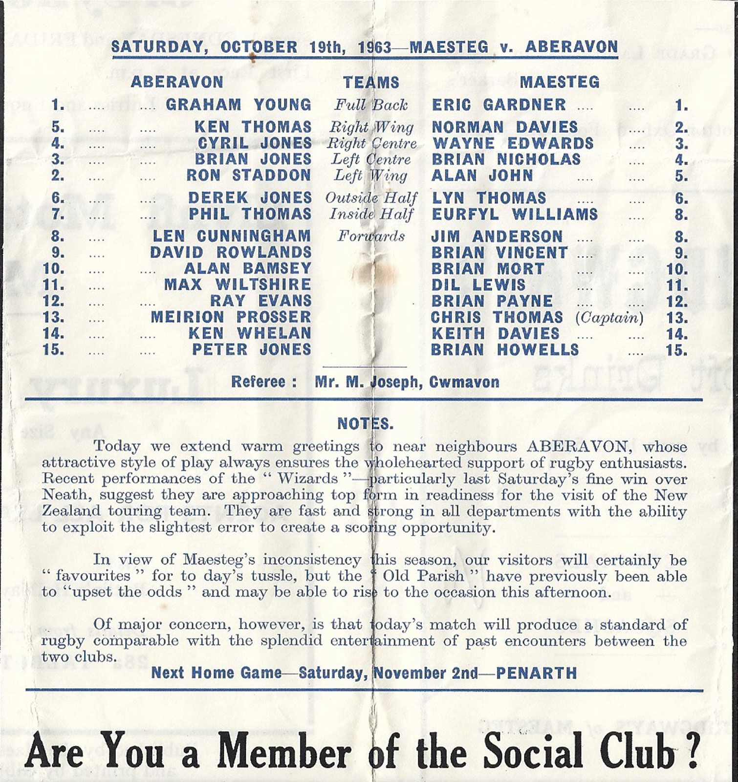 Maesteg v Aberavon | 19 Oct 1963 | Maesteg |