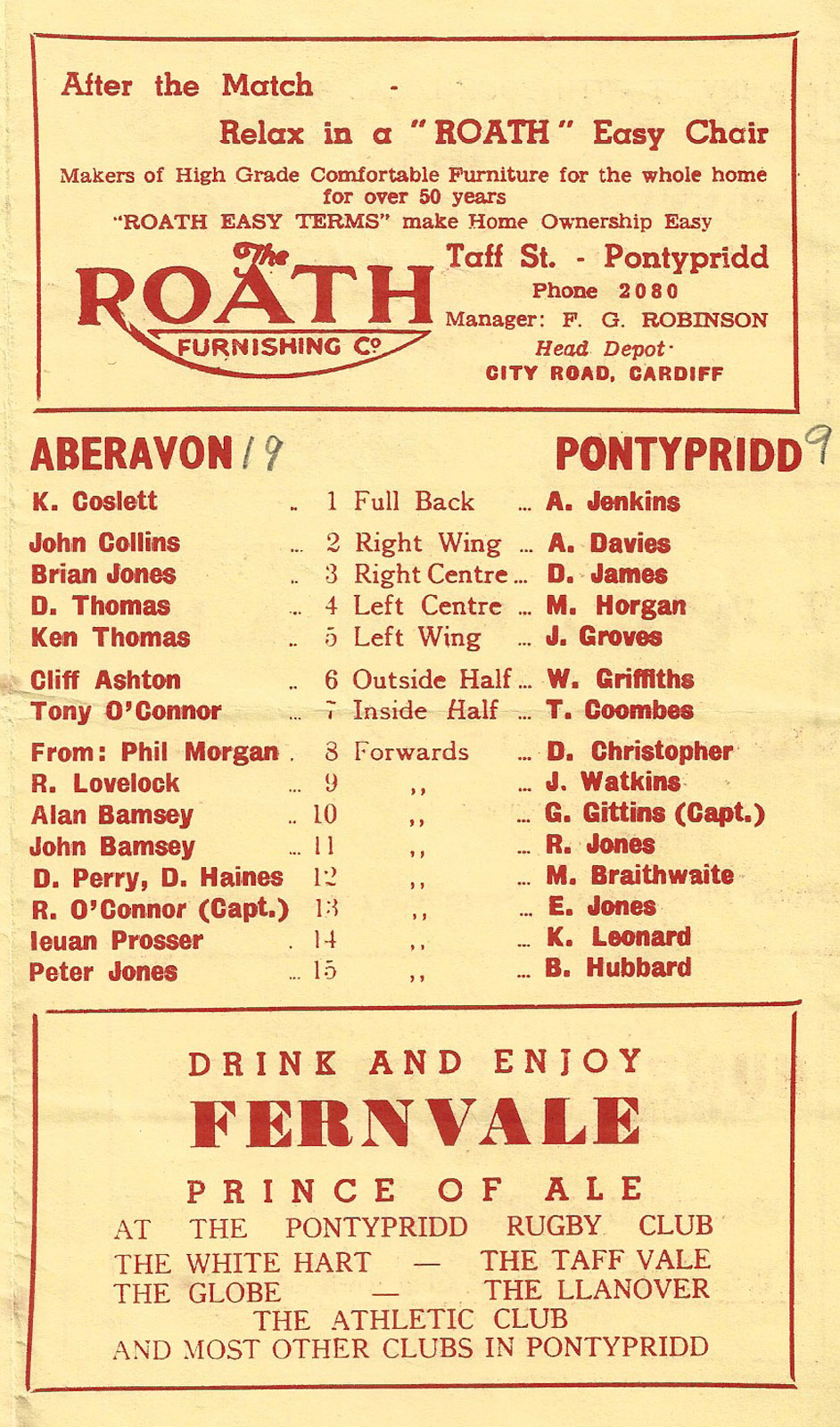 Pontypridd v Aberavon | 17 Apr 1961 | Pontypridd | good