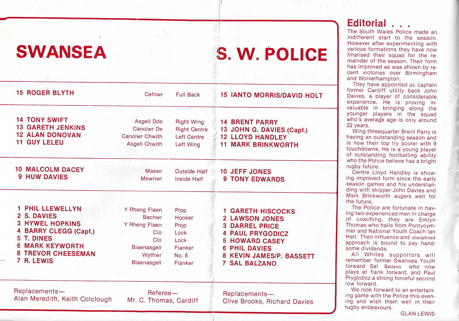 for Swansea RFC away programmes please visit our other club programme pages......... Aberavon - Bath - Bridgend - Bristol - Cardiff - Ebbw Vale - English Clubs - Gloucester - Irish Clubs - Irish Provincial - Llanelli & Scarlets - Maesteg - Neath - Newbridge - Newport - Pontypool - Pontypridd - Saracens - Scottish Clubs - Welsh Clubs |