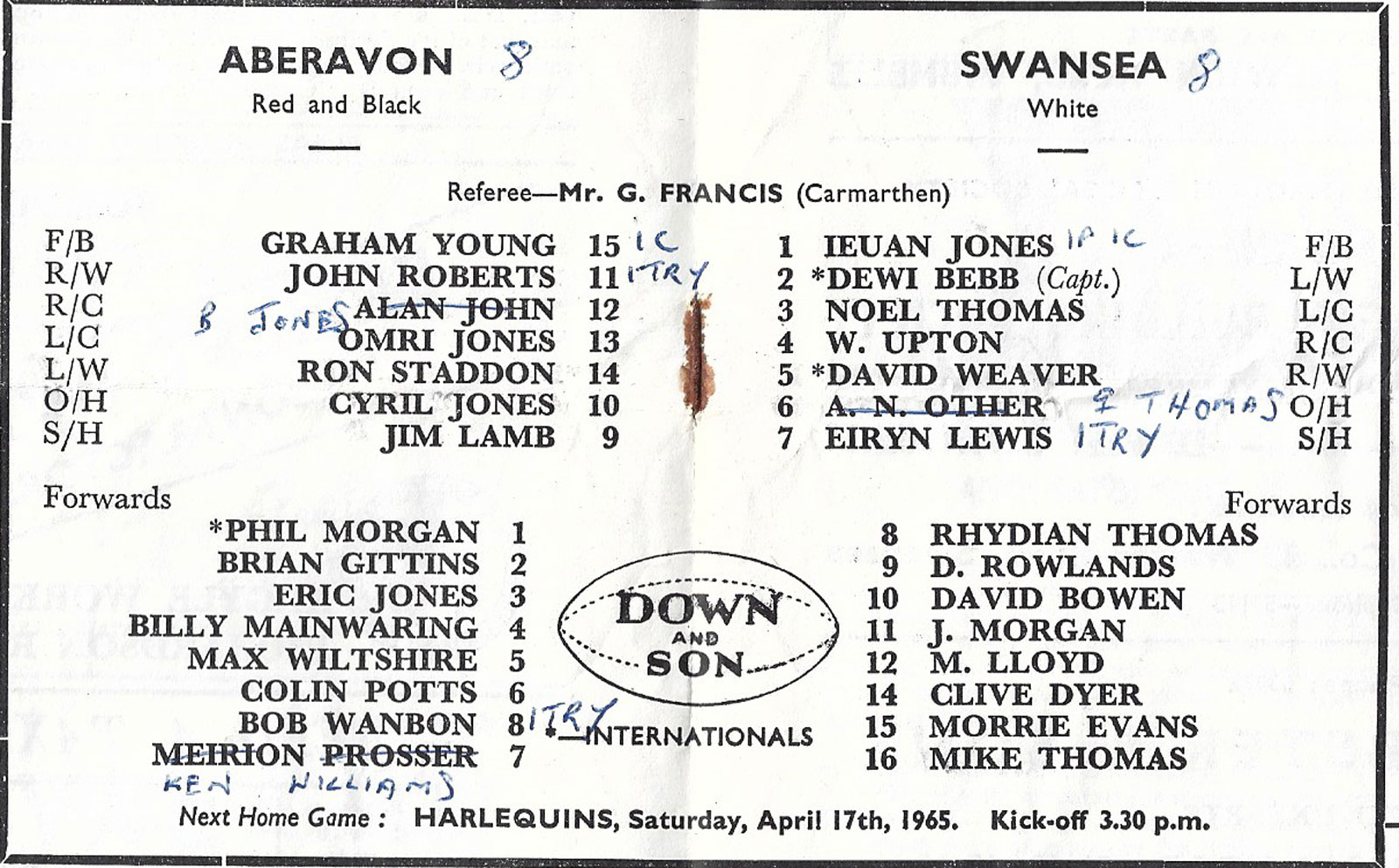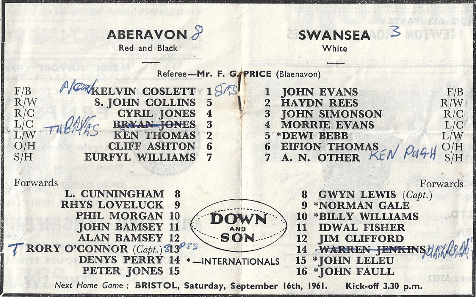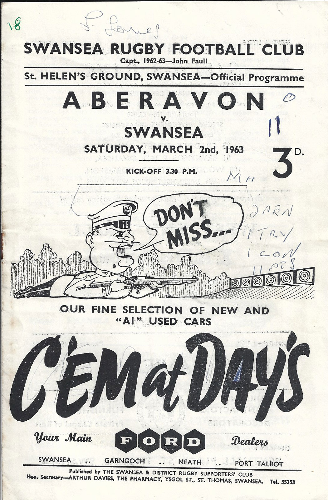 Swansea v Aberavon | 7 Mar 1959 | St Helens, Swansea | good - folding creases Ref: RC518-E-prcb-swa19590307aav - £8.00 |