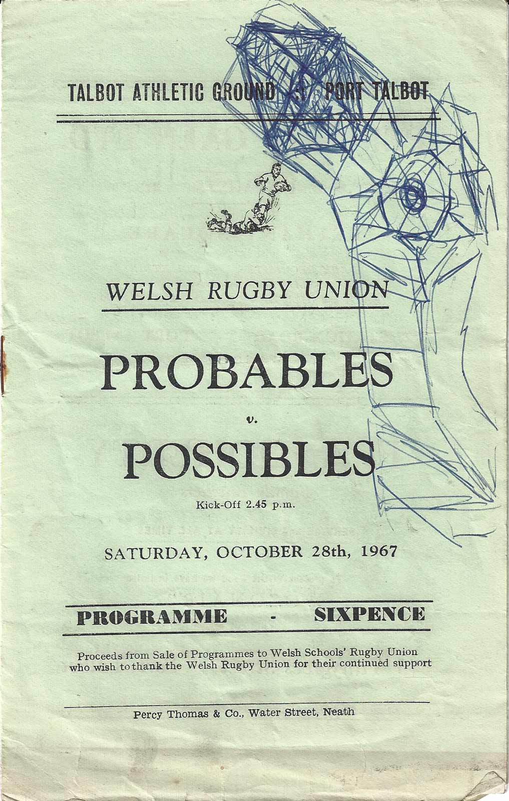 Welsh international trial match - A4 single sheet with match report