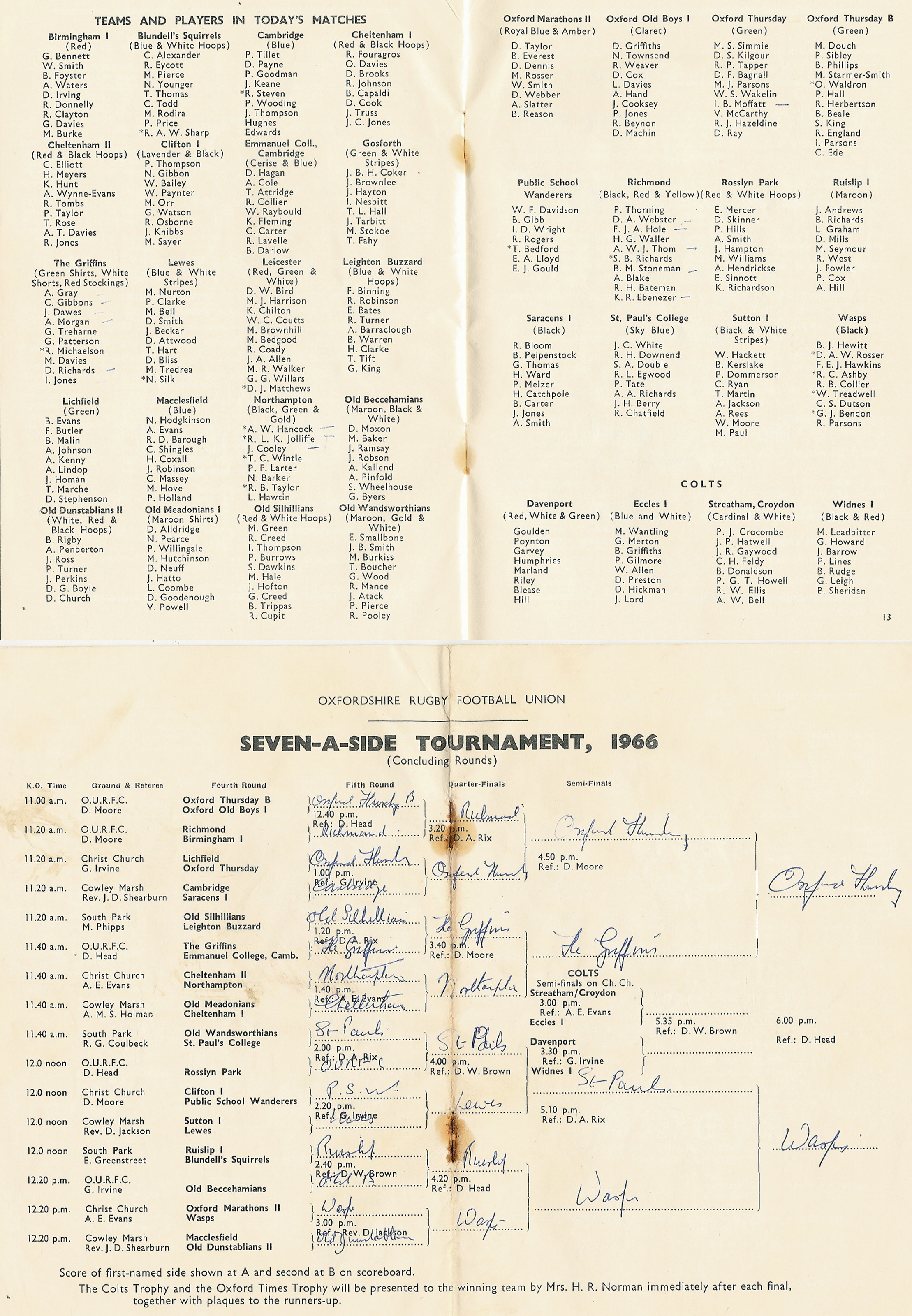 OXFORDSHIRE RFU 19th ANNUAL SCHOOLS SEVENS - teams include Avonhurst, Chipping Norton, Llandovery College, Roundhay and Uppingham. |