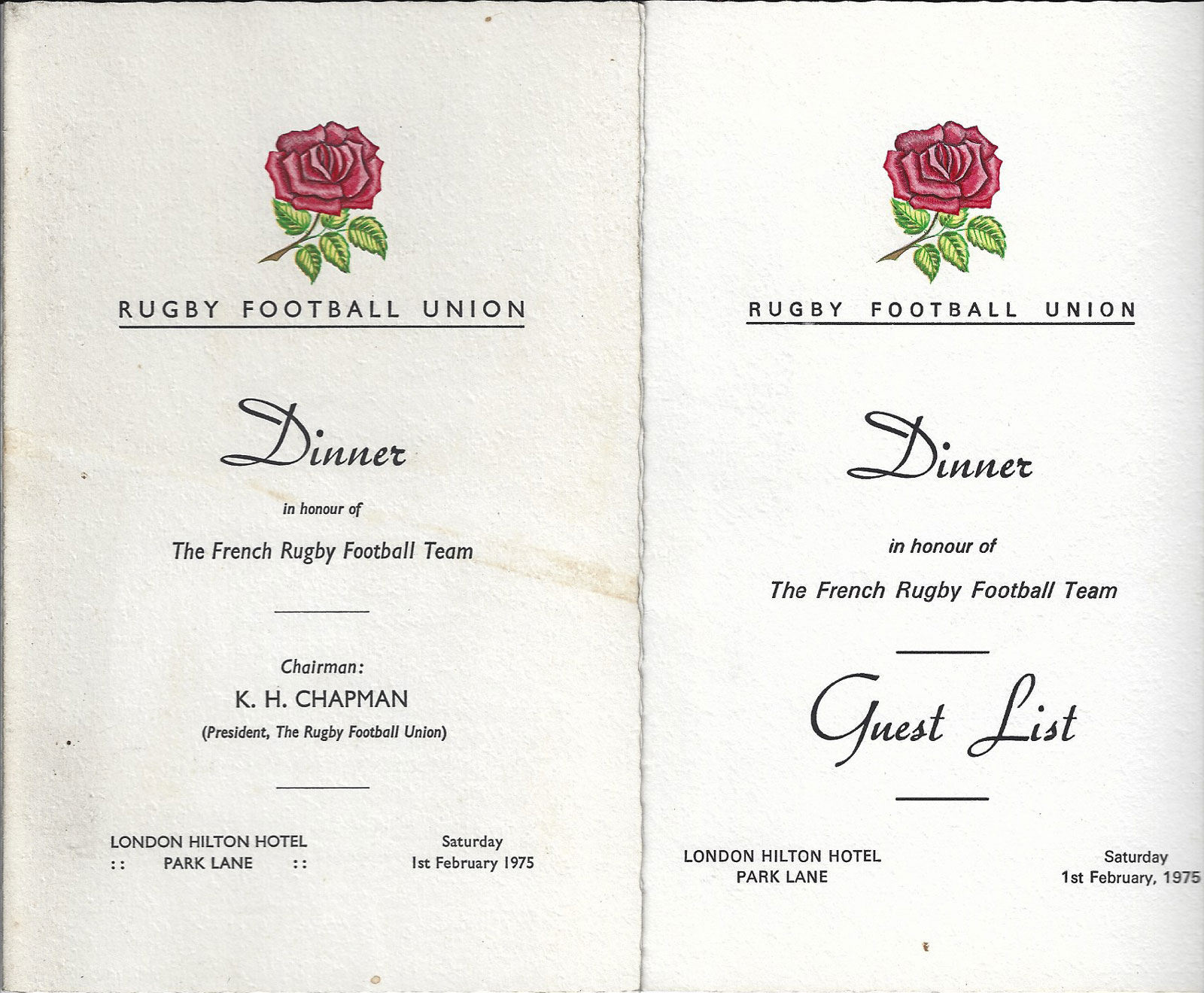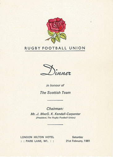 - RUGBY WORLD CUP - OFFICIAL MENU CARDS