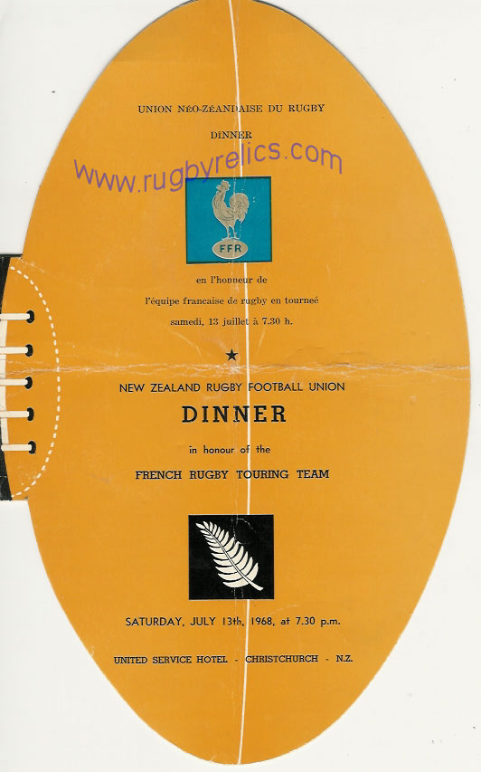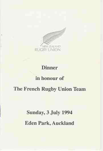 Dinner Menu for the RWC Final, New Zealand v France & 3/4 Place Play Off,