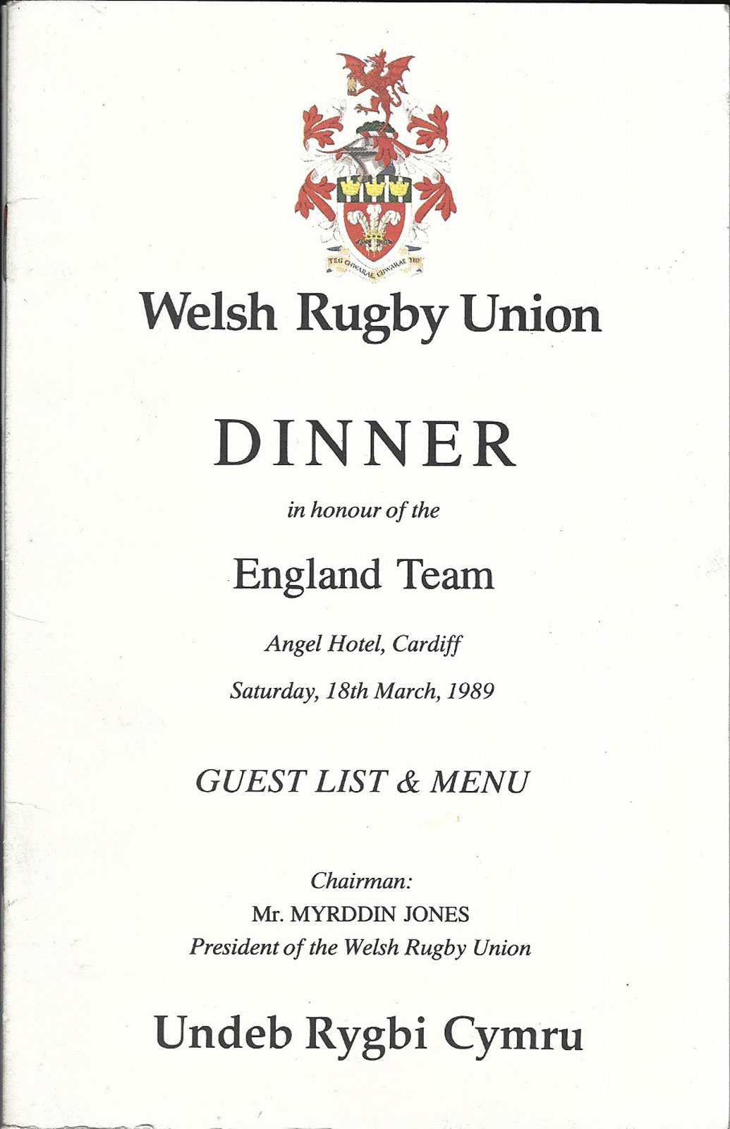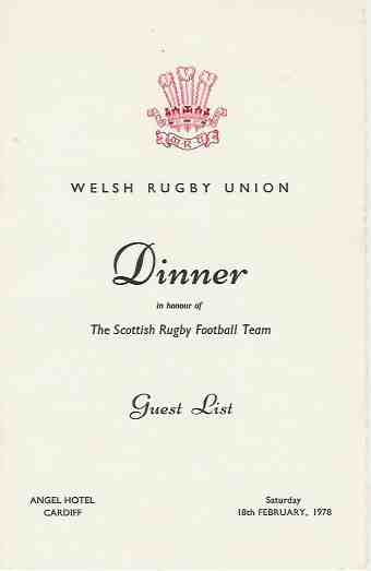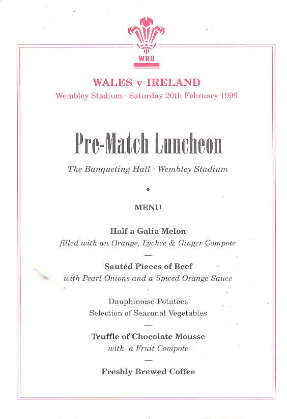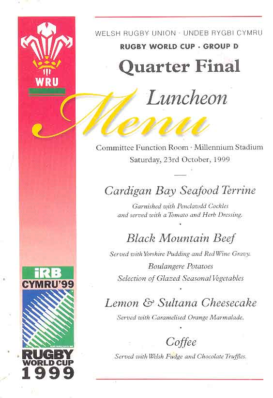 | Rugby World Cup 1999 - Pre-Tournament Dinner at Caernarfon Suite, Celtic