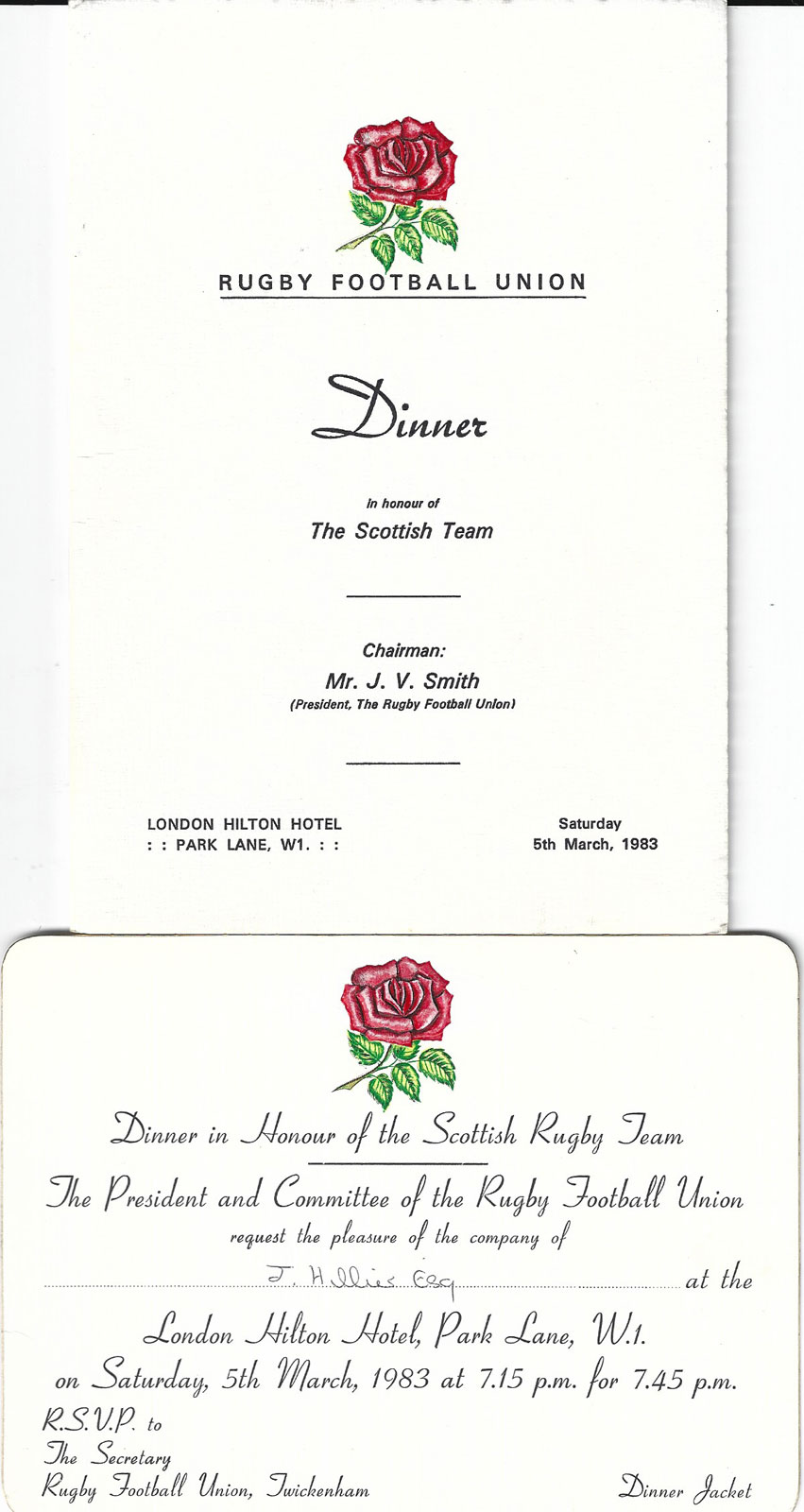 UNOFFICIAL AND HOSPITALITY INTERNATIONAL MATCH MENU CARDS