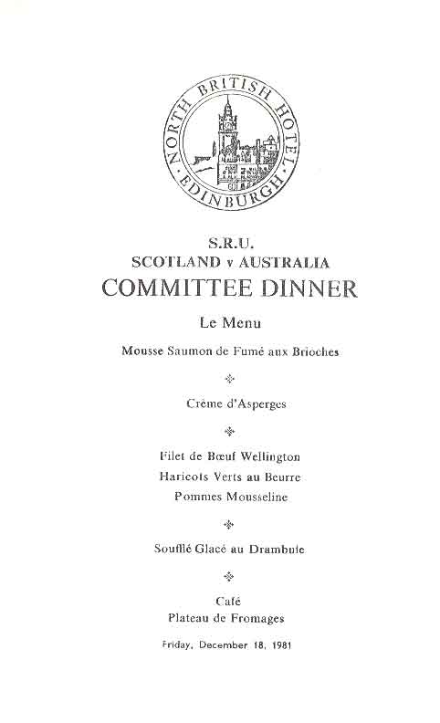 | Rugby World Cup - Australia v France Final Dinner Menu by