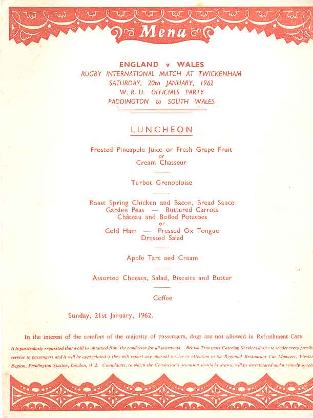 South Africa v Australia - 1st Test | 5 Aug 1961 | Dinner Menu | very good