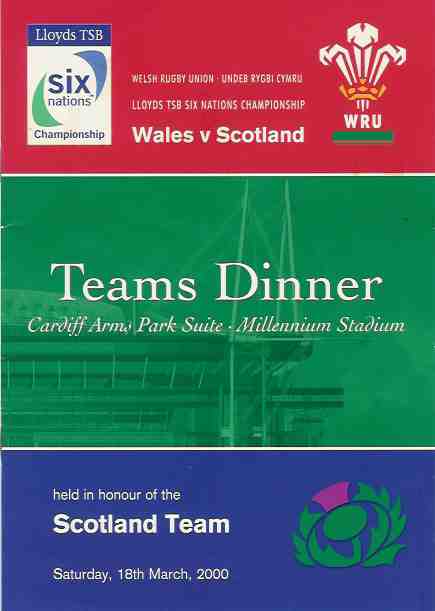 Room, Millennium Stadium on Saturday 6 November 1999. A single card