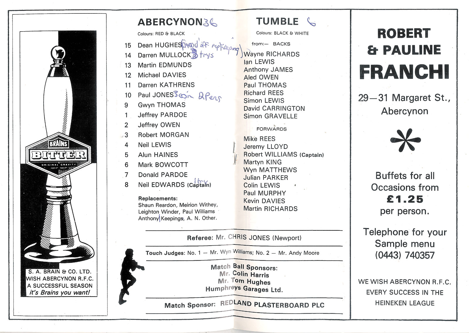 good - score on front Ref: RC568-D-prcb-acy19911207tum -