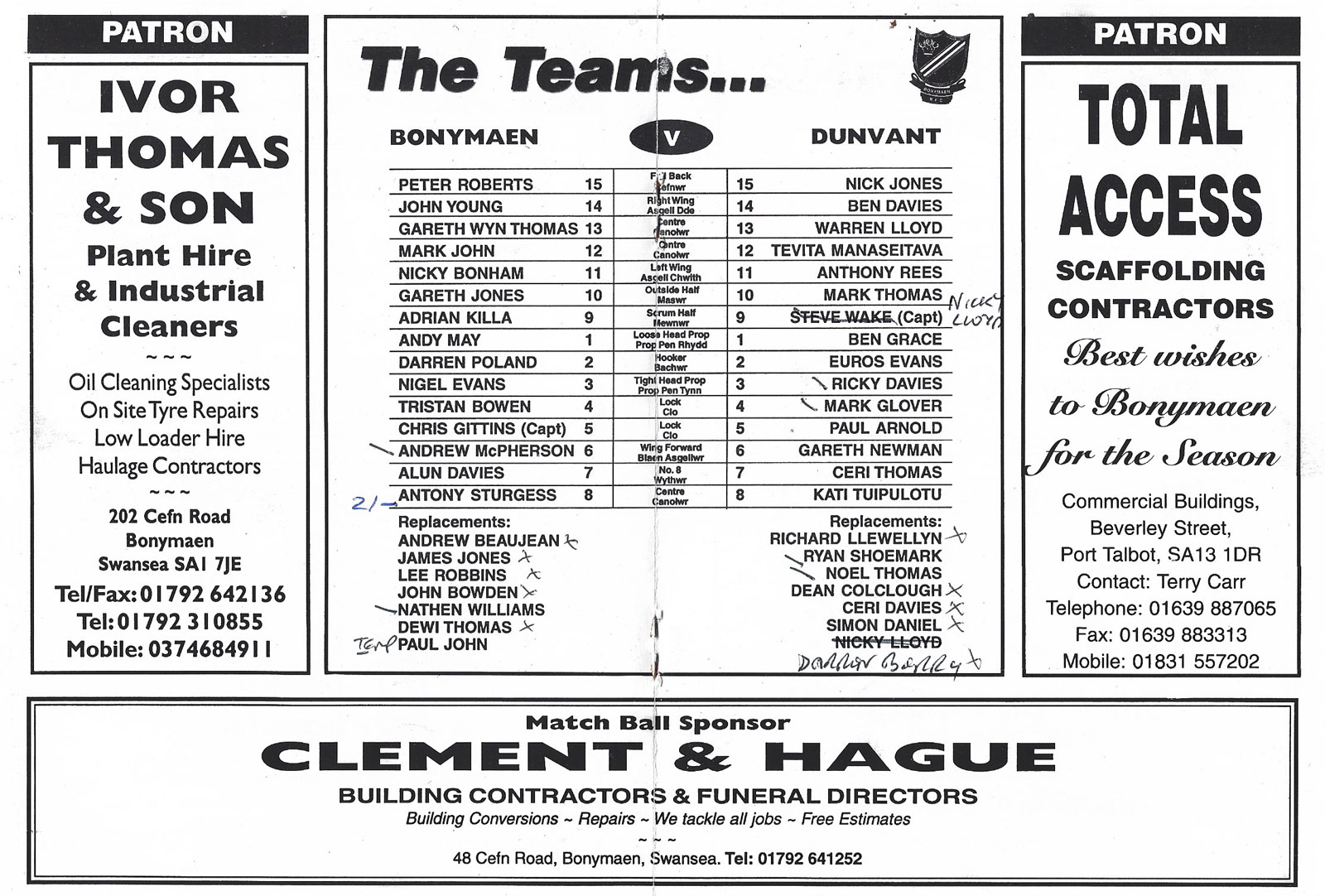 Bonymaen v Dunvant
