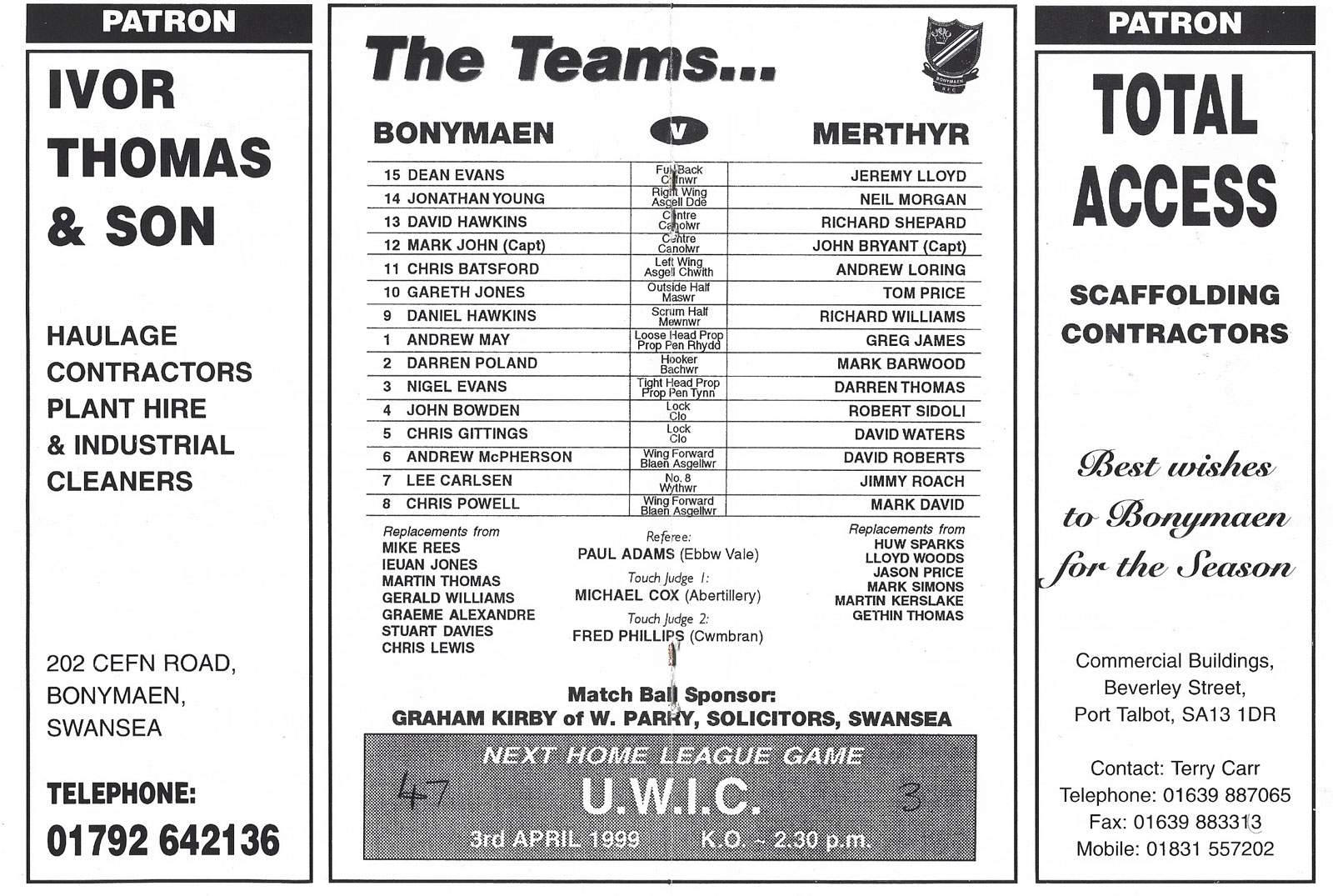 Bonymaen v Merthyr