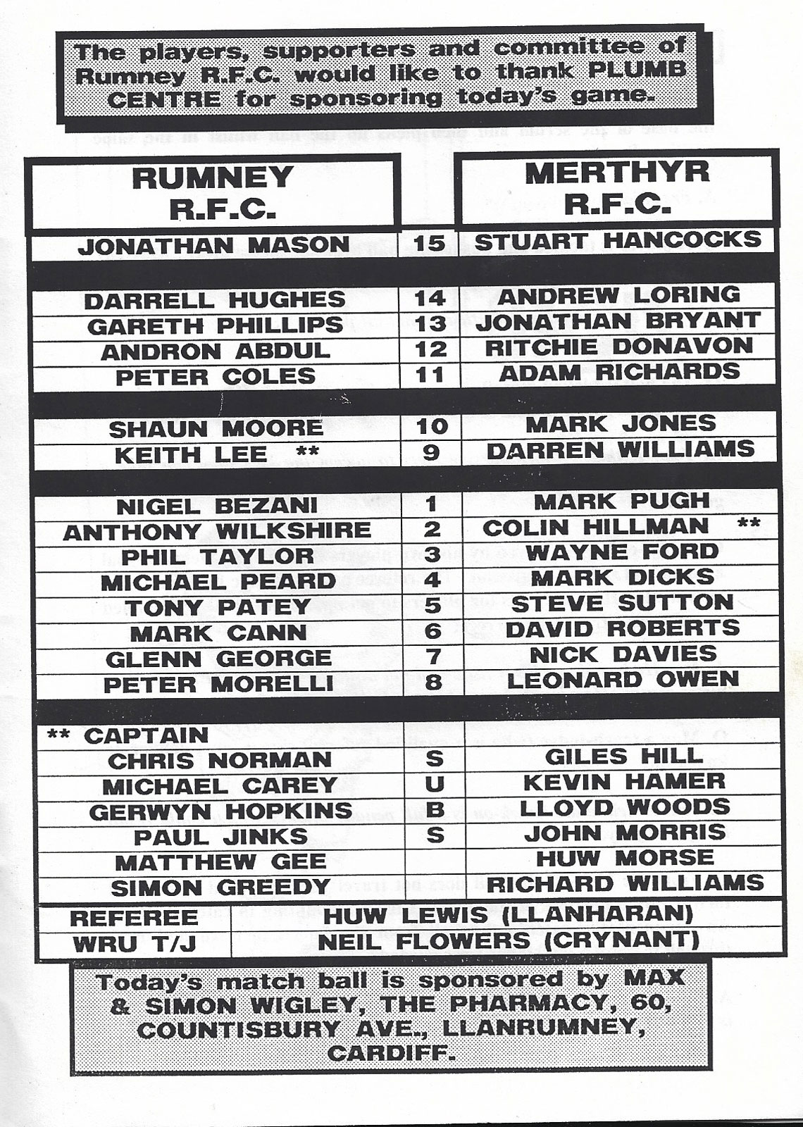 91.jpg (248044 bytes) Rumney v Pontypridd