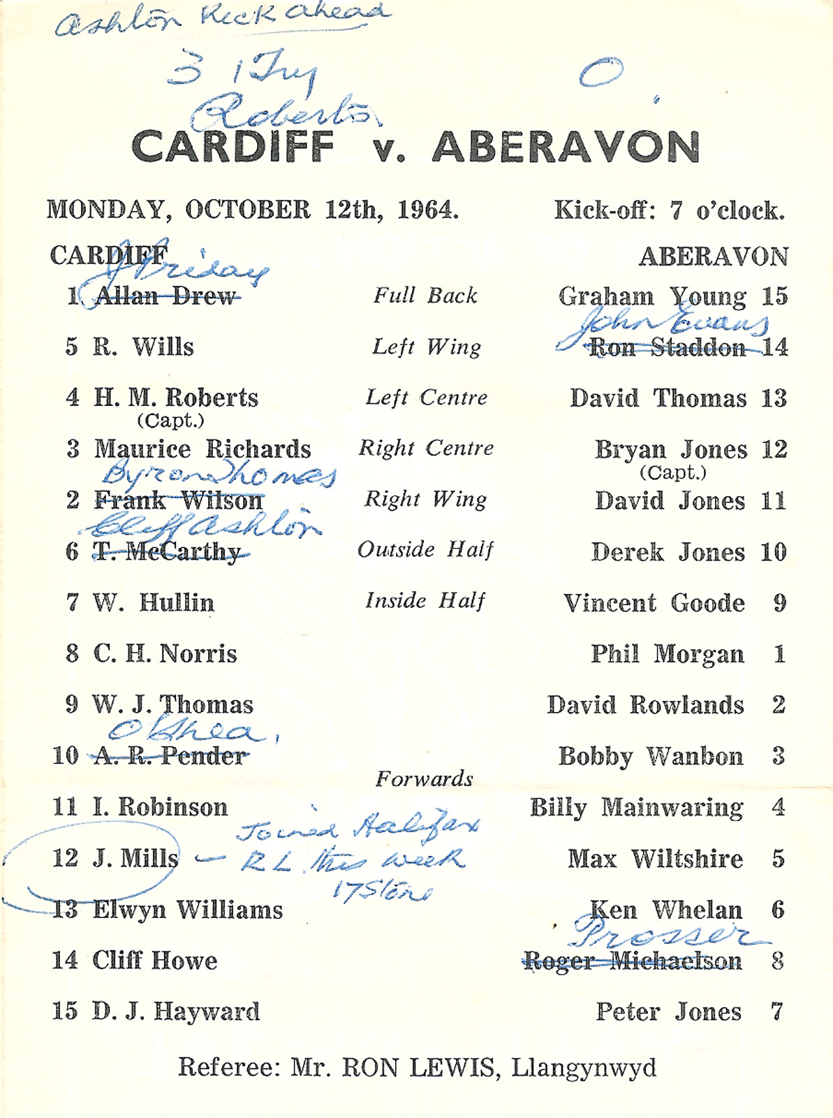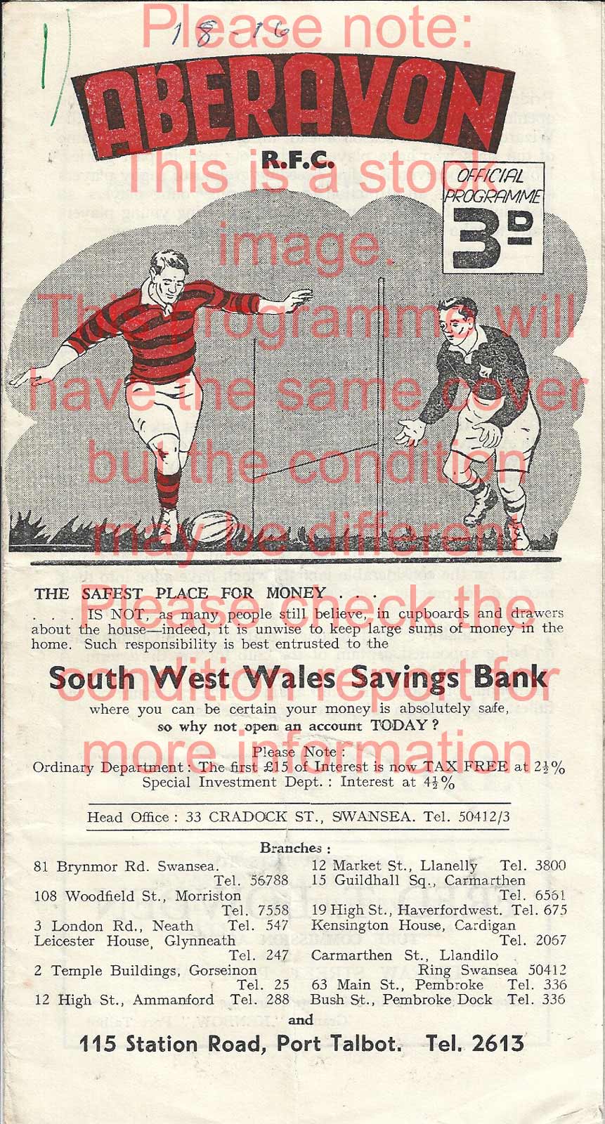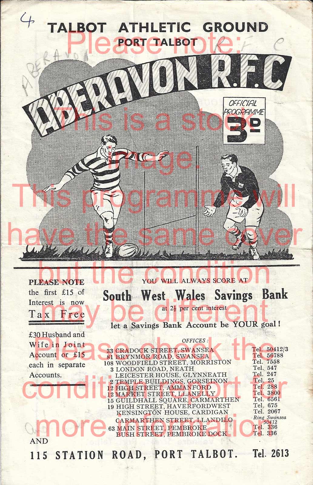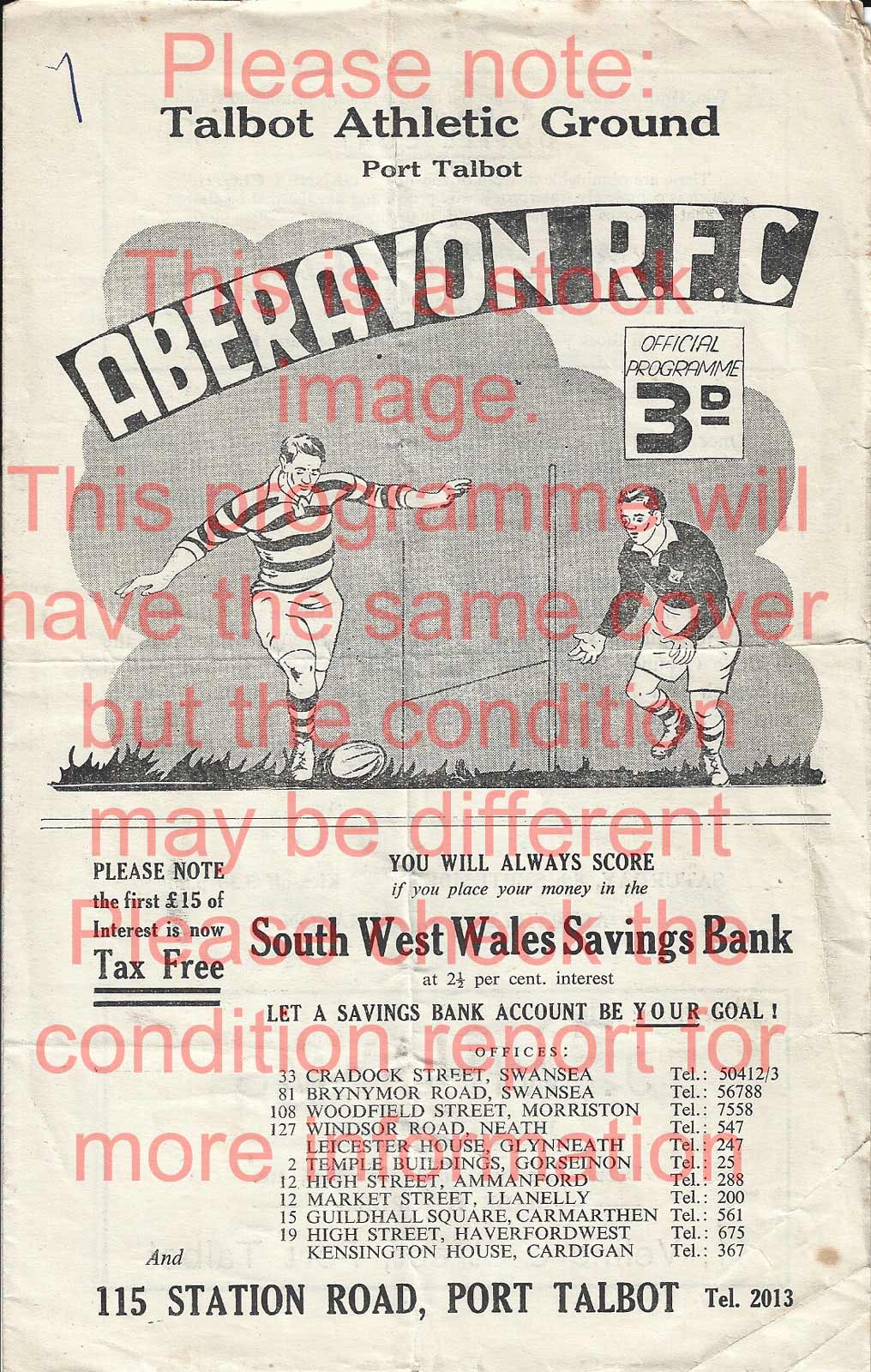Aberavon v Cardiff | 31 Jan 1953 | Aberavon | good - slight crease Ref: RC542-D-prcb-aav19530131cdf - £15.00 |