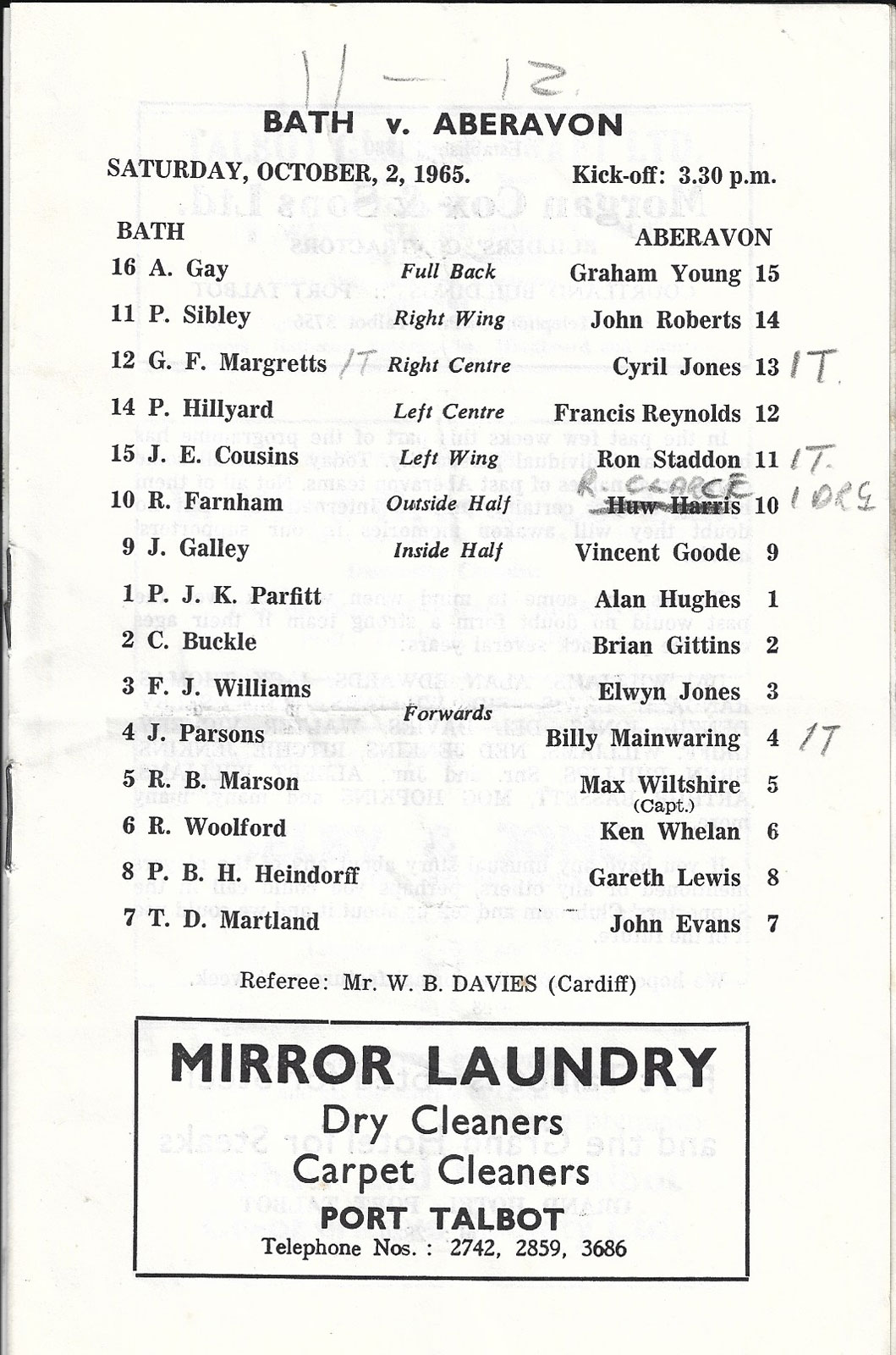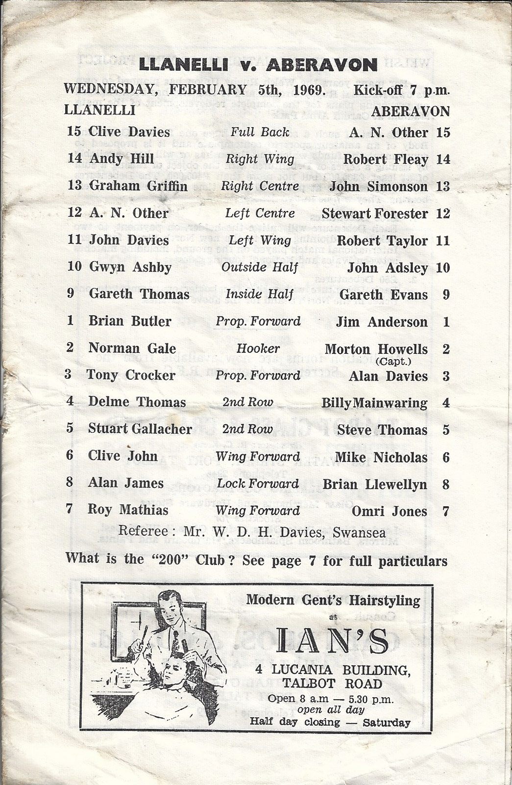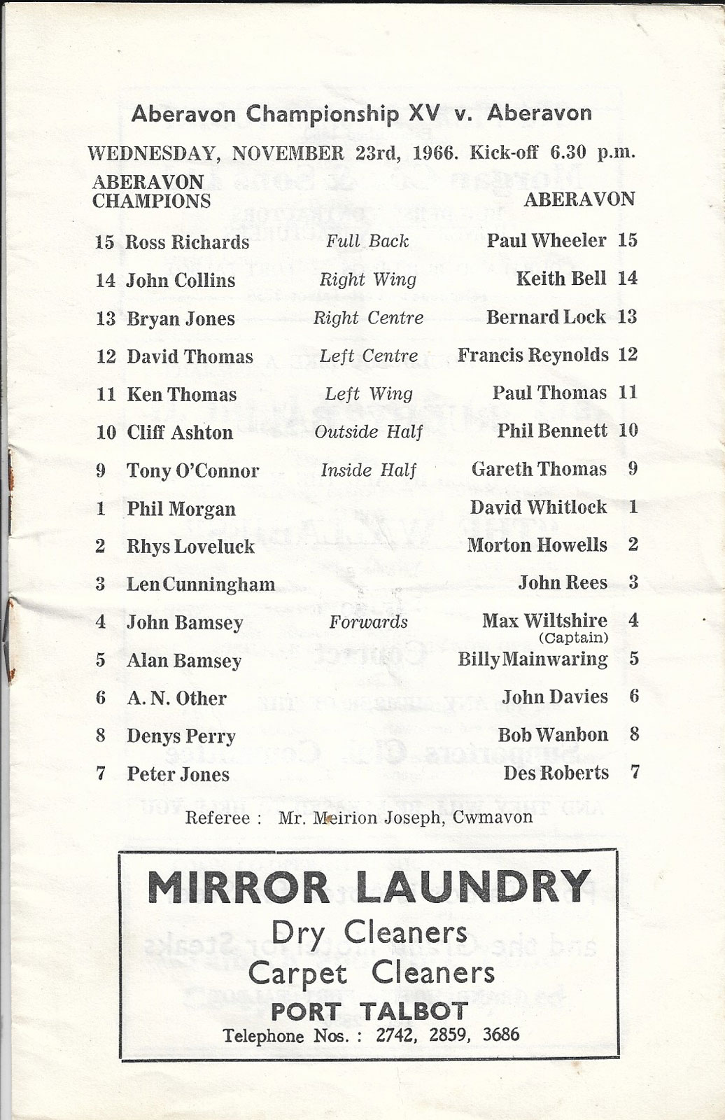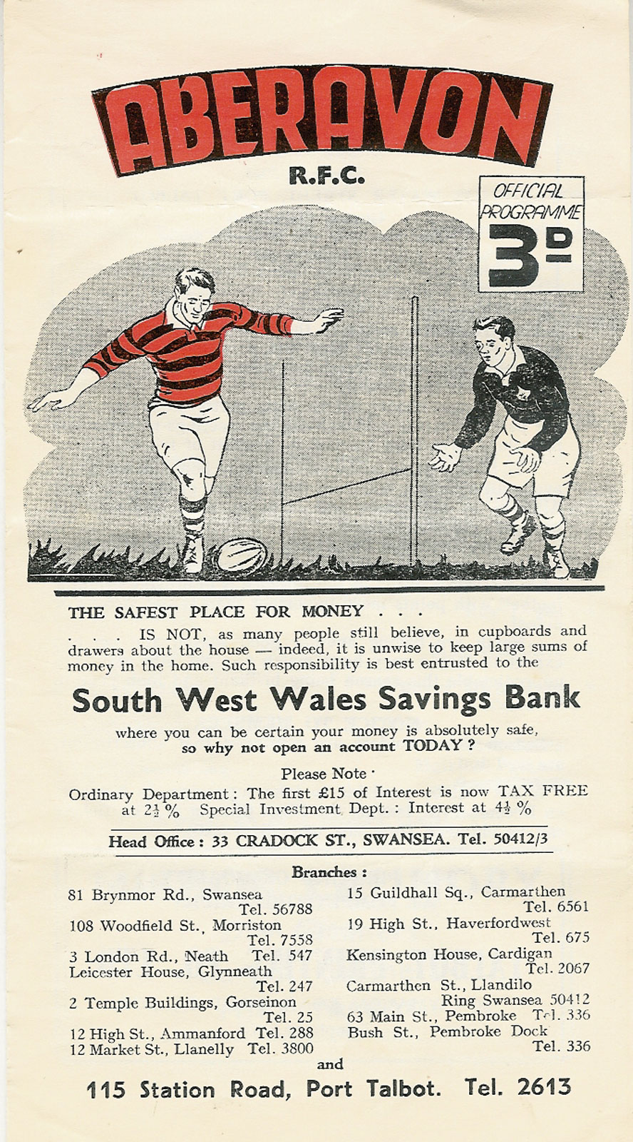 for Aberavon RFC away programmes please visit our other club programme pages......... Bath - Bridgend - Cardiff - Ebbw Vale - English Clubs - Gloucester - Irish Clubs - Irish Provincial - Llanelli & Scarlets - Maesteg - Neath - Newbridge - Newport - Pontypool - Pontypridd - Saracens - Scottish Club - Swansea - Welsh Clubs |