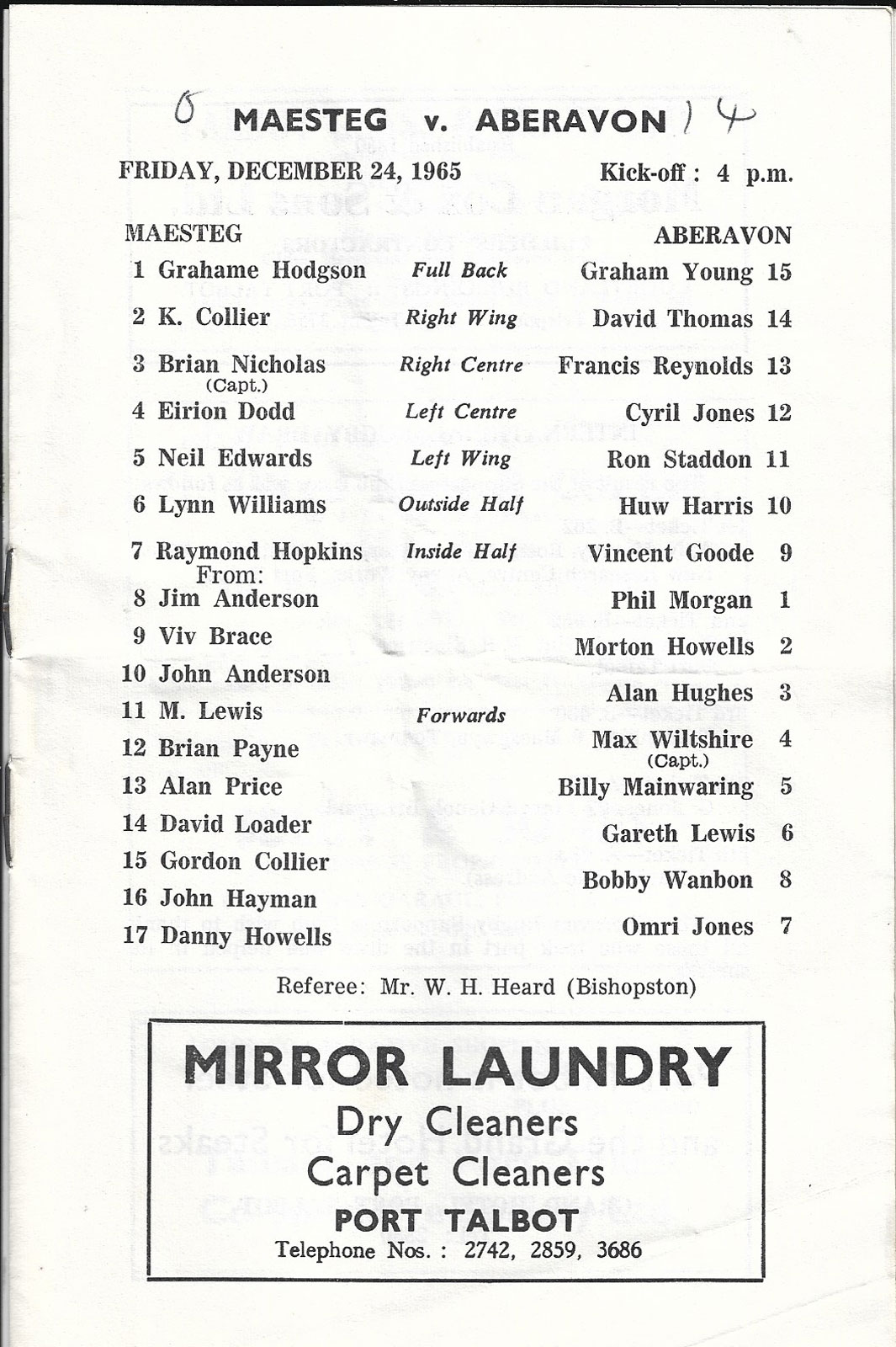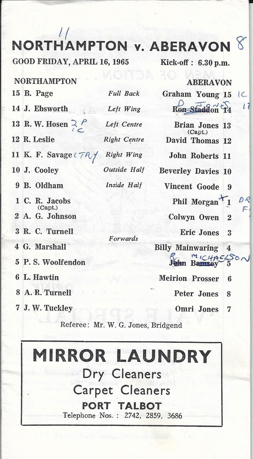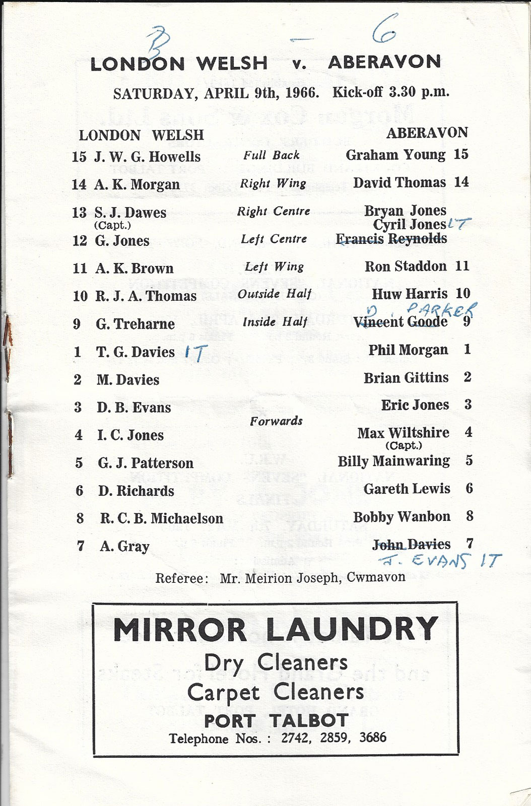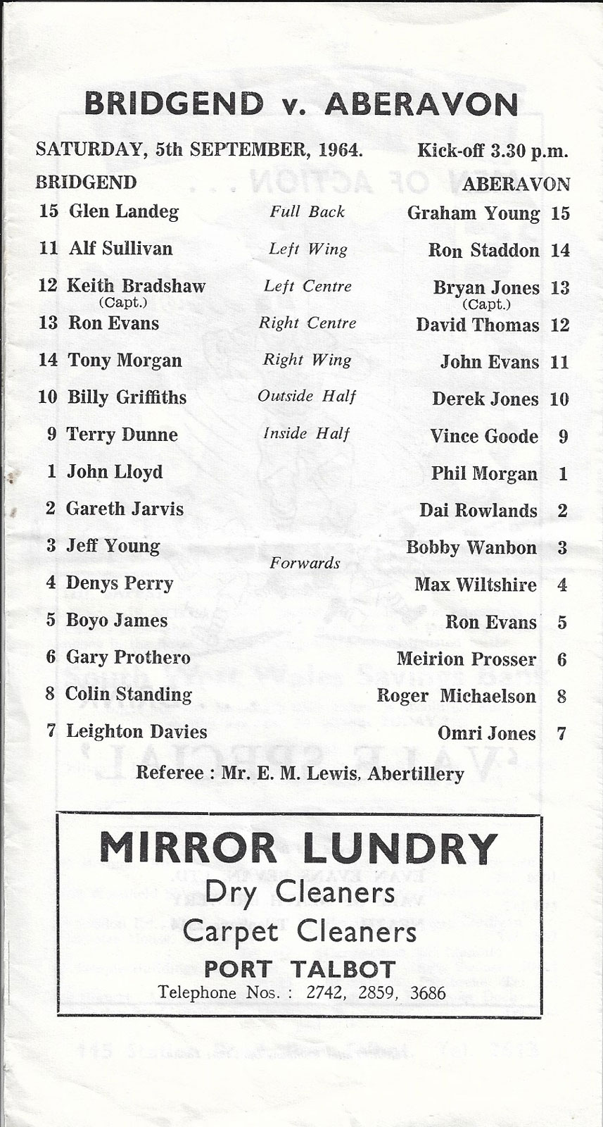 for Aberavon RFC away programmes please visit our other club programme pages......... Bath - Bridgend - Cardiff - Ebbw Vale - English Clubs - Gloucester - Irish Clubs - Irish Provincial - Llanelli & Scarlets - Maesteg - Neath - Newbridge - Newport - Pontypool - Pontypridd - Saracens - Scottish Club - Swansea - Welsh Clubs |