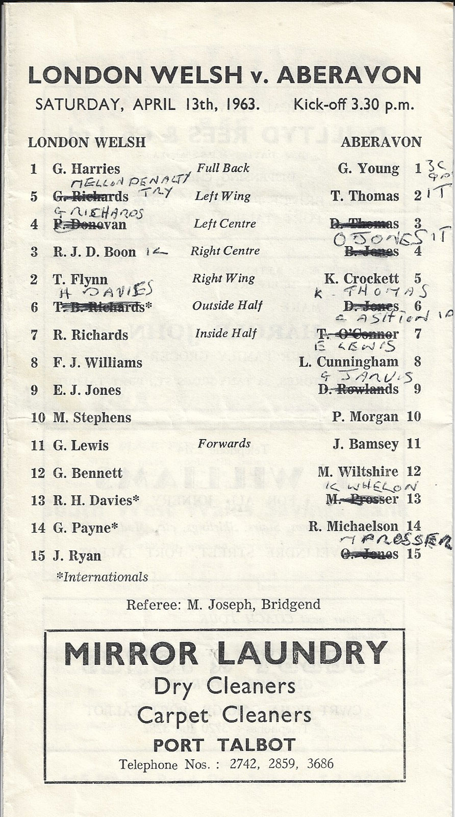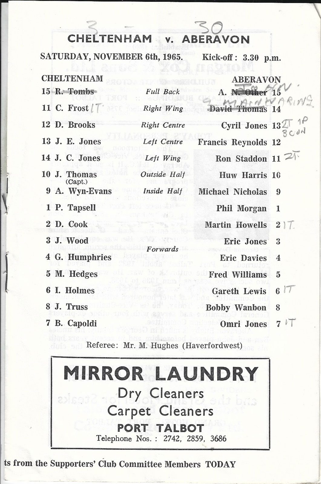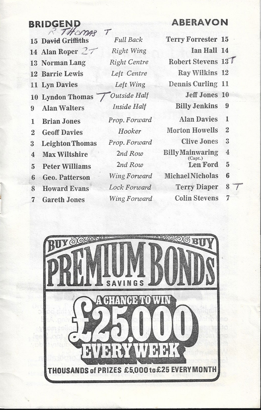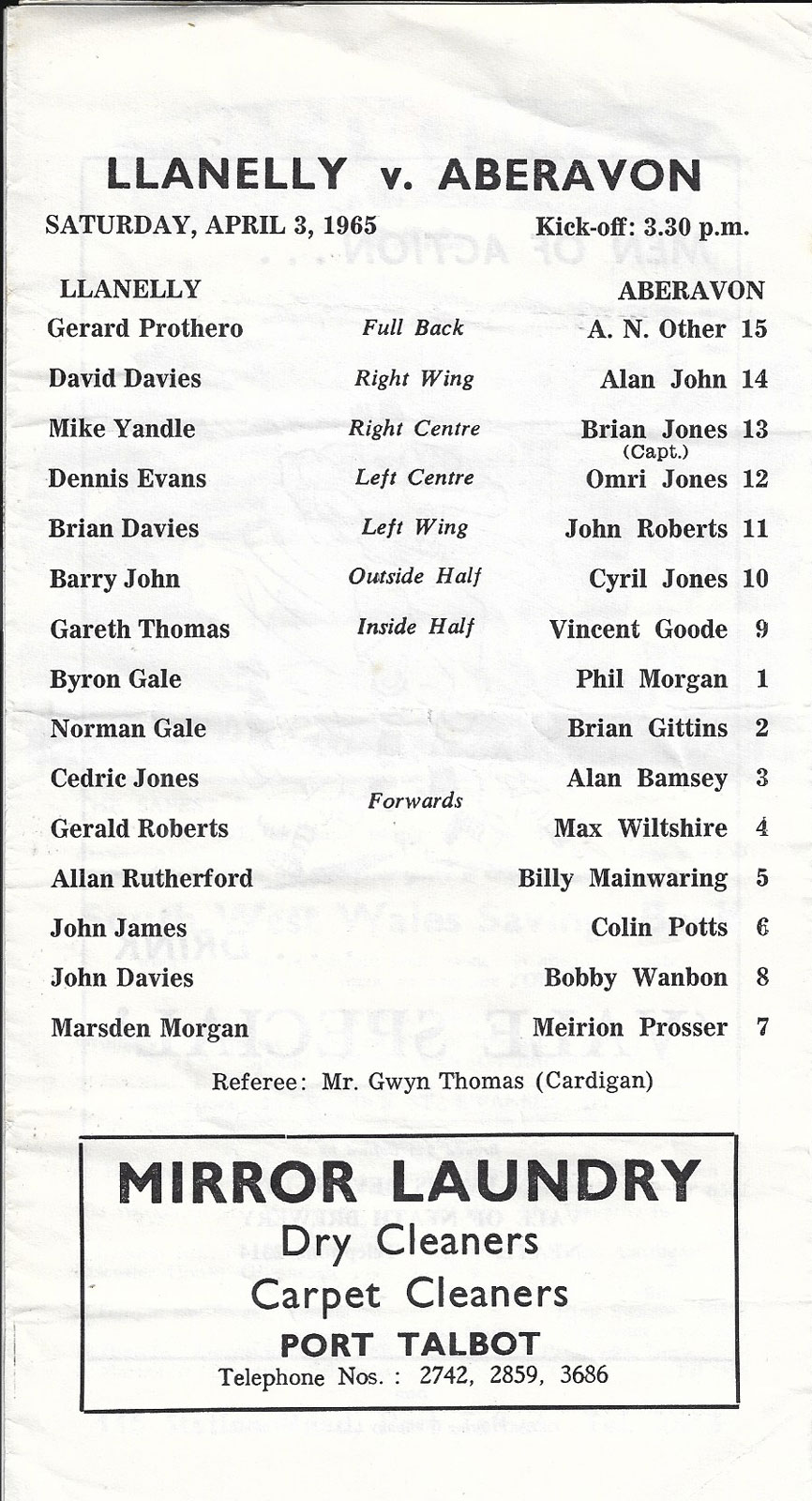 for Aberavon RFC away programmes please visit our other club programme pages......... Bath - Bridgend - Cardiff - Ebbw Vale - English Clubs - Gloucester - Irish Clubs - Irish Provincial - Llanelli & Scarlets - Maesteg - Neath - Newbridge - Newport - Pontypool - Pontypridd - Saracens - Scottish Club - Swansea - Welsh Clubs |