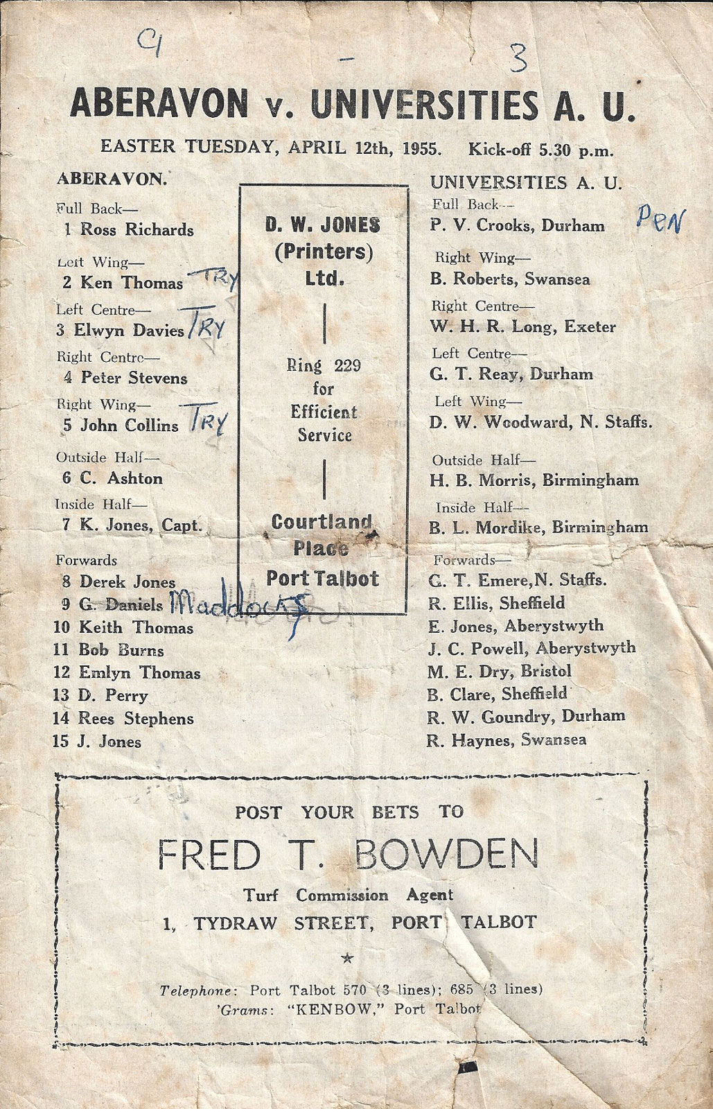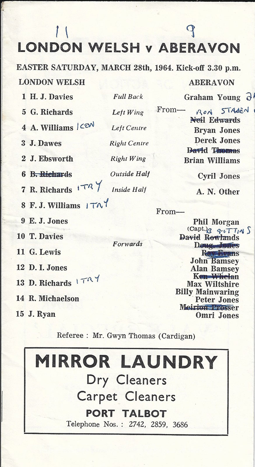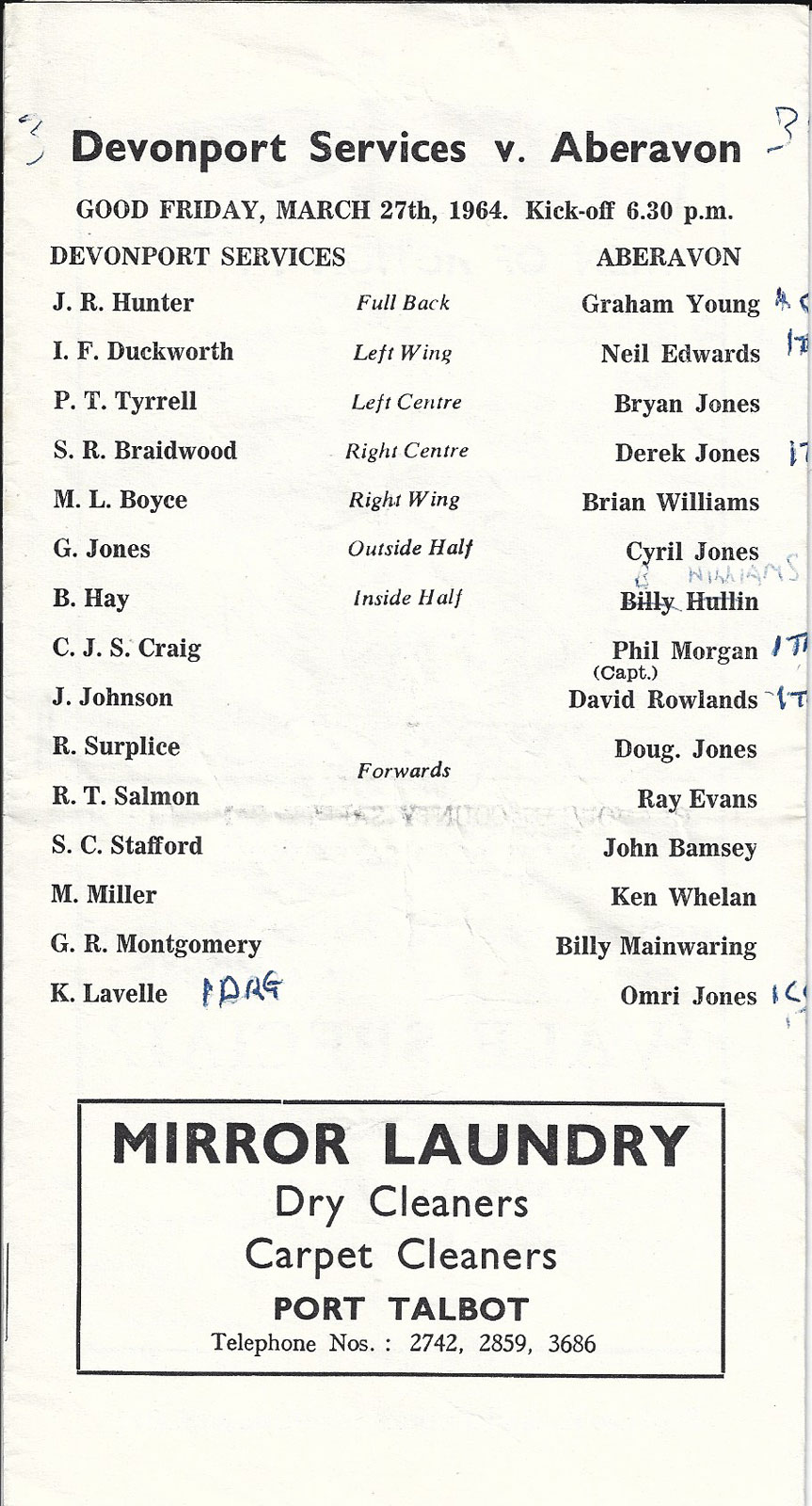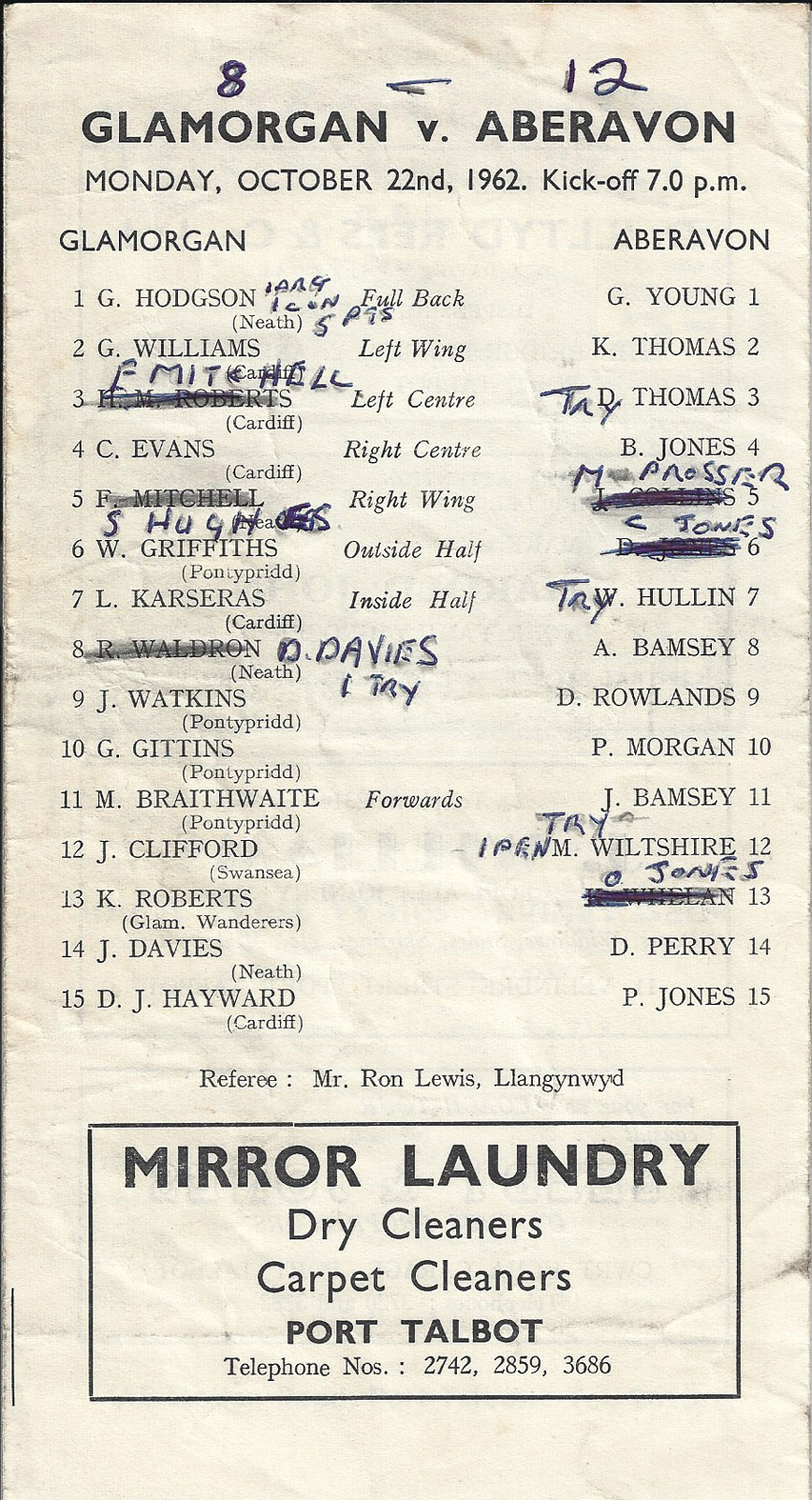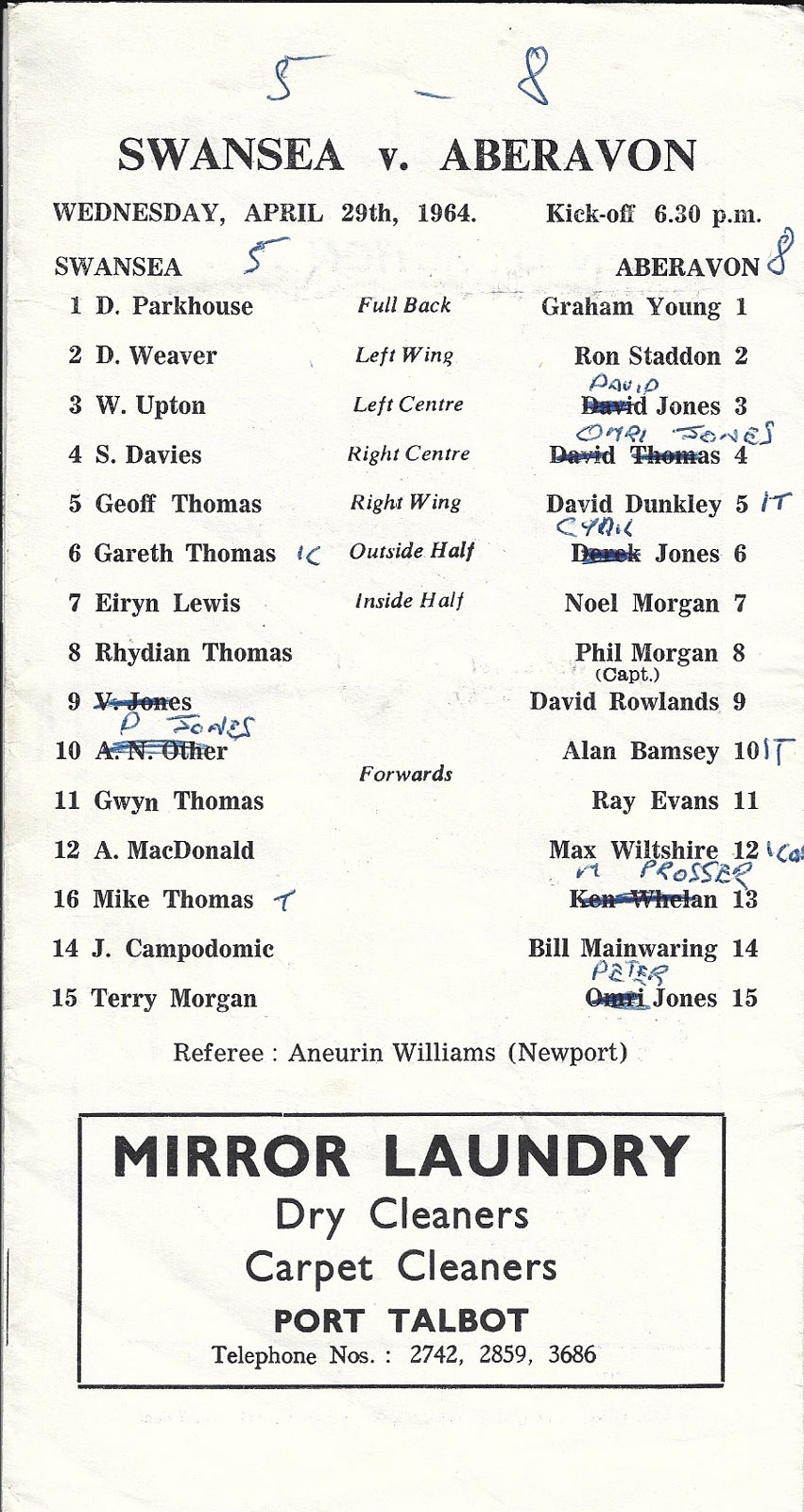 Aberavon v Neath | 28 Feb 1959 | Aberavon | 3-6 | good - folding creases, a little