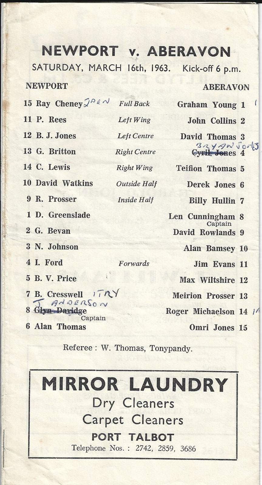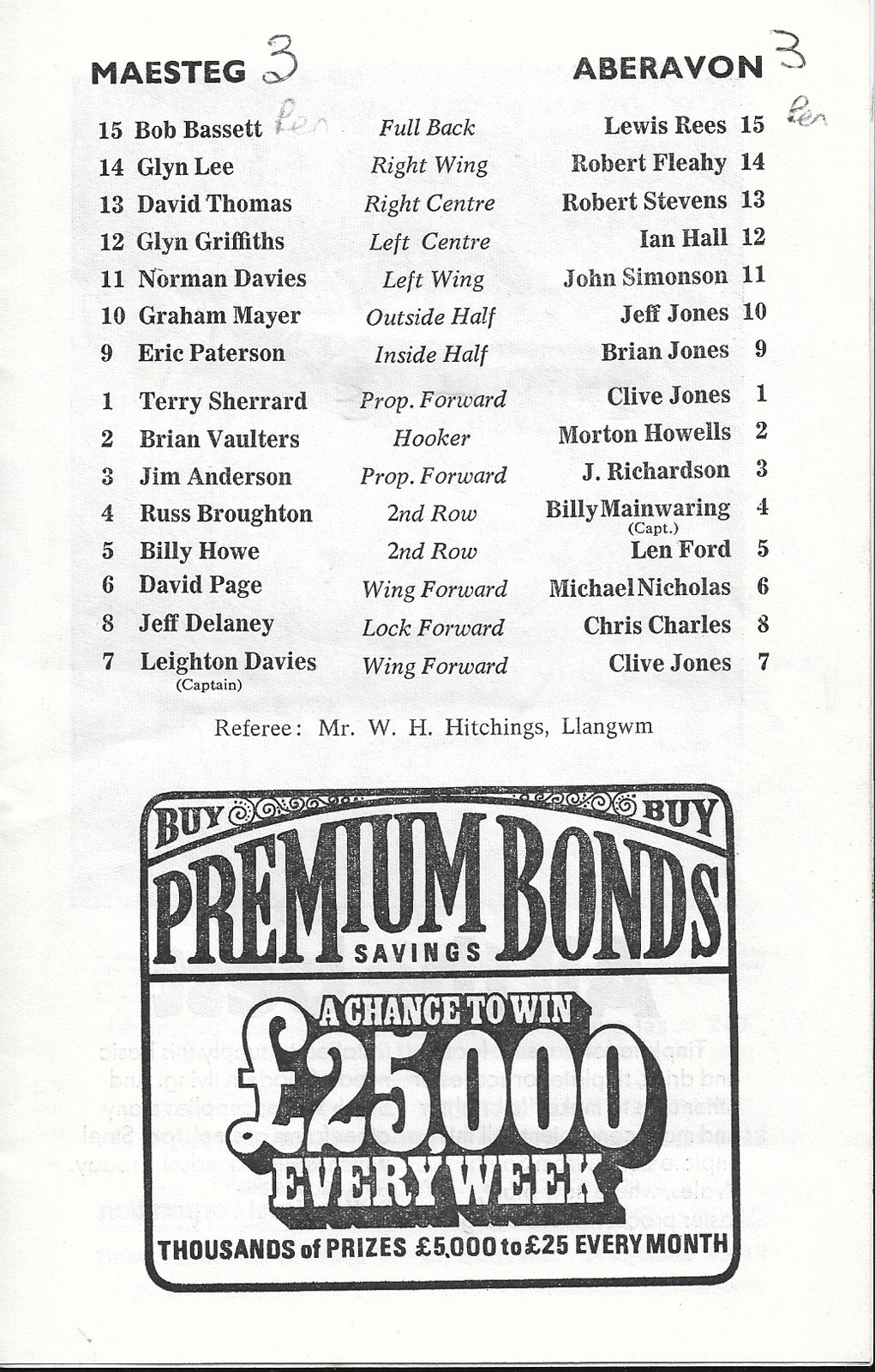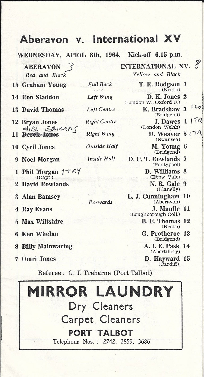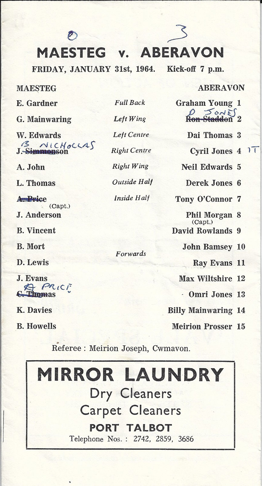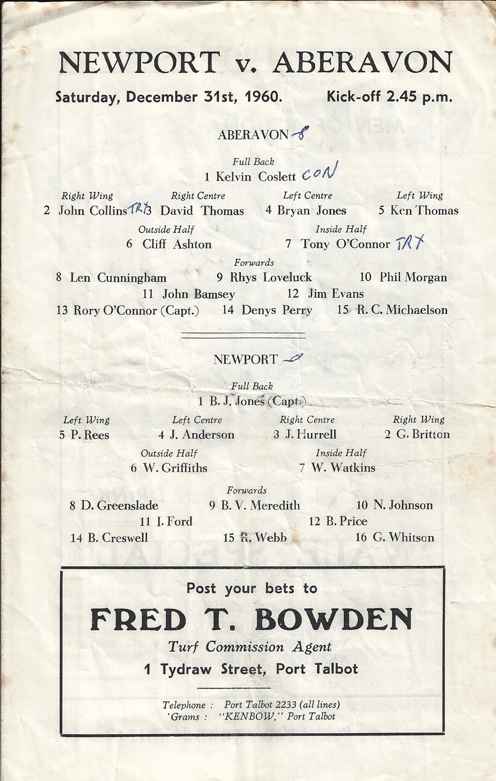 Aberavon v Neath | 28 Feb 1959 | Aberavon | 3-6 | good - folding creases, a little