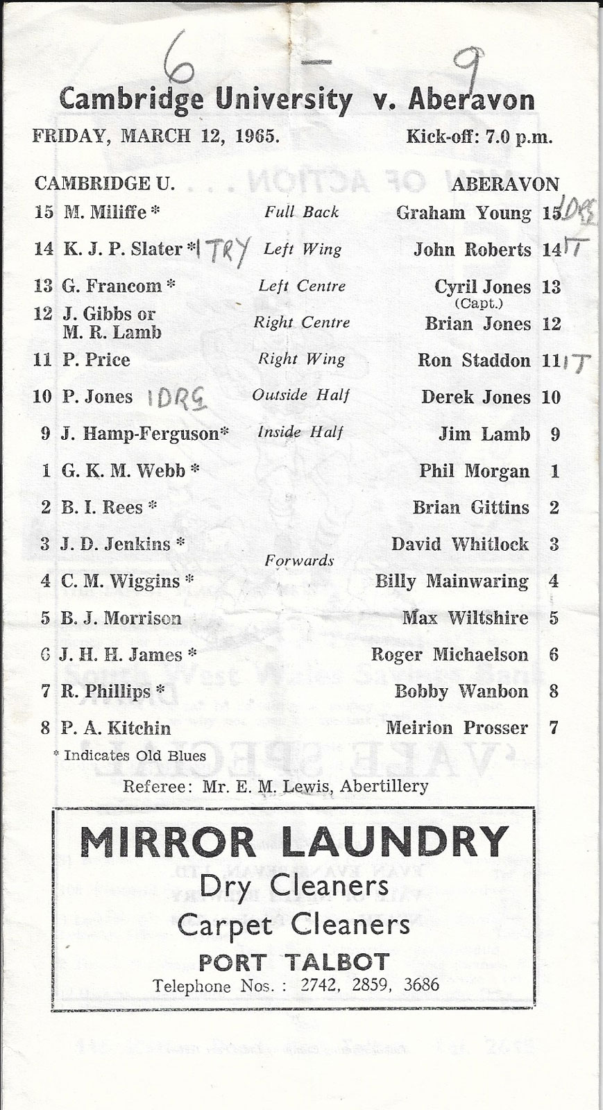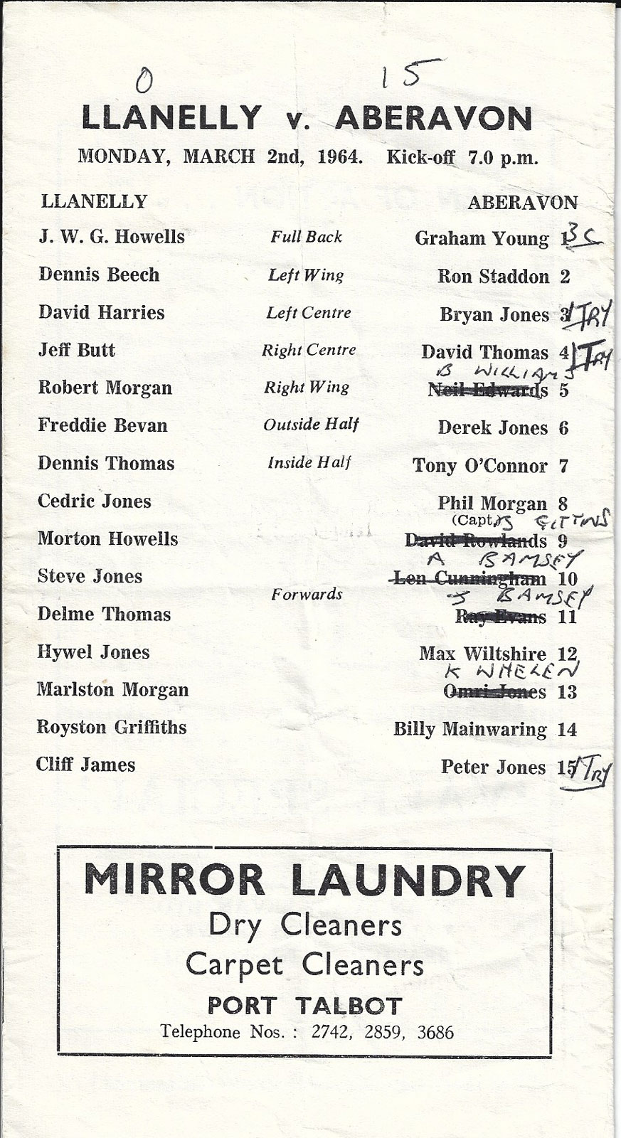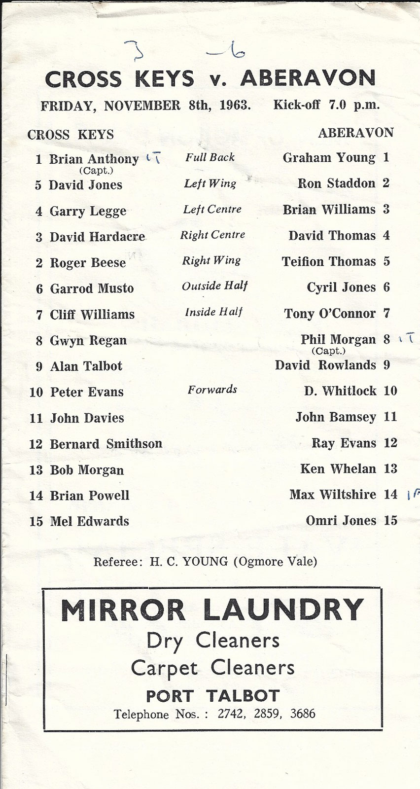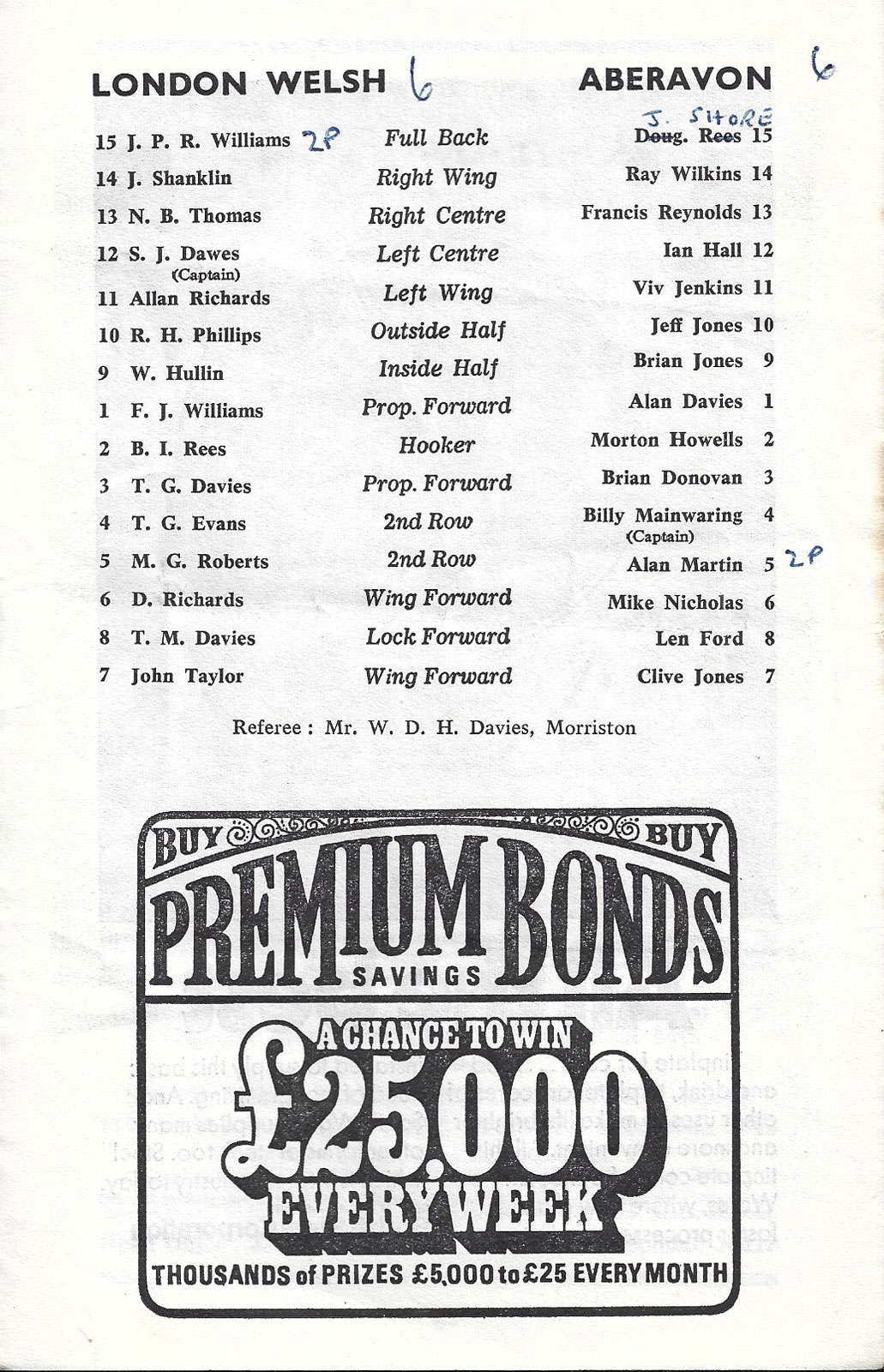 Aberavon v Neath | 28 Feb 1959 | Aberavon | 3-6 | good - folding creases, a little
