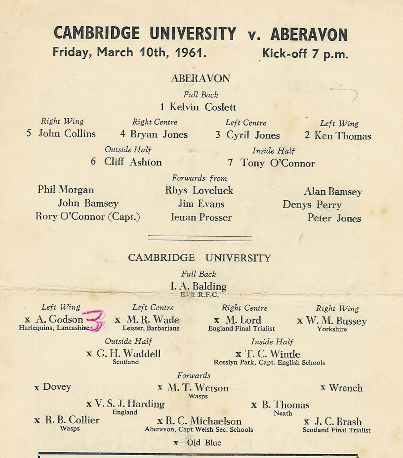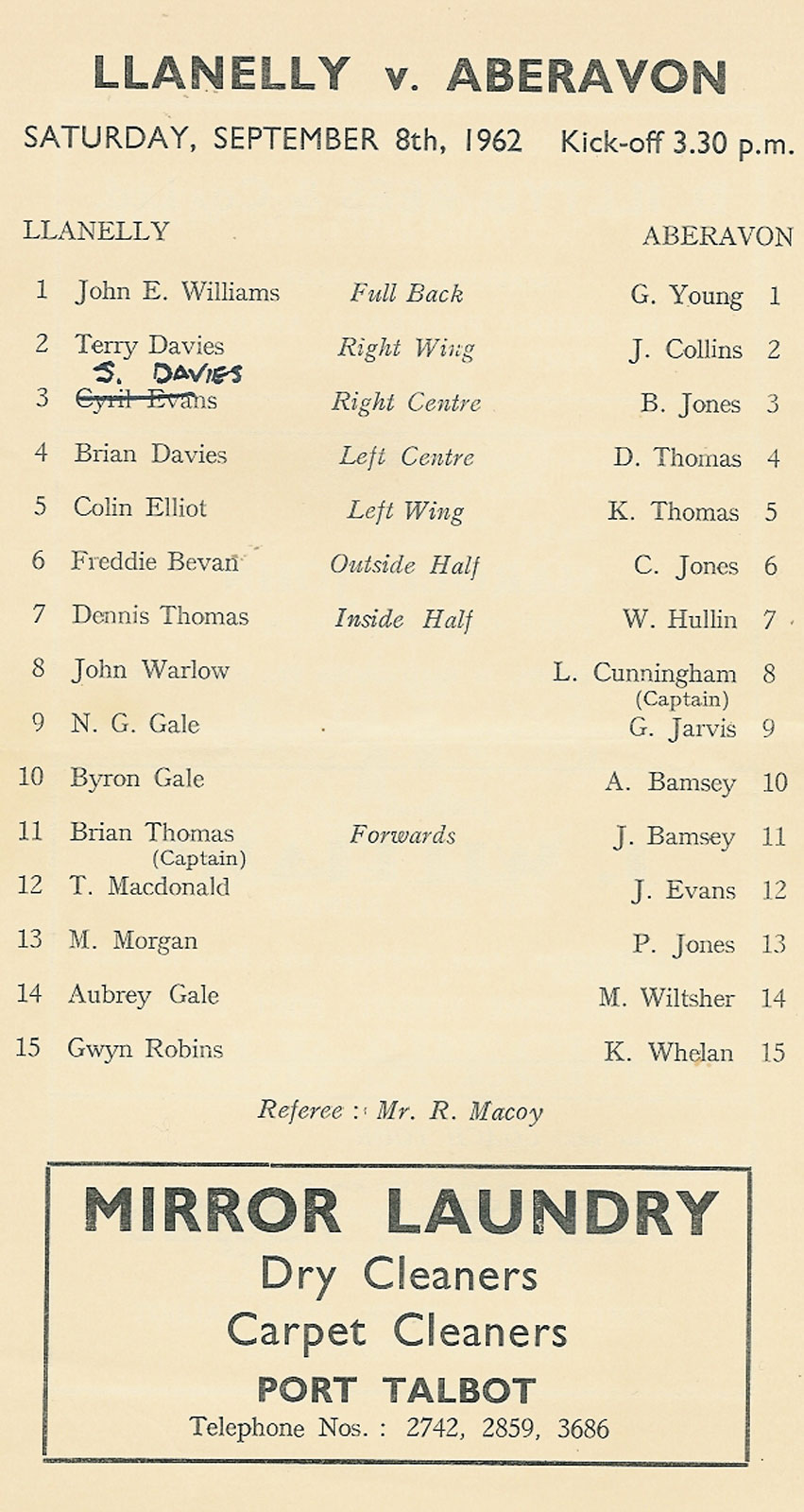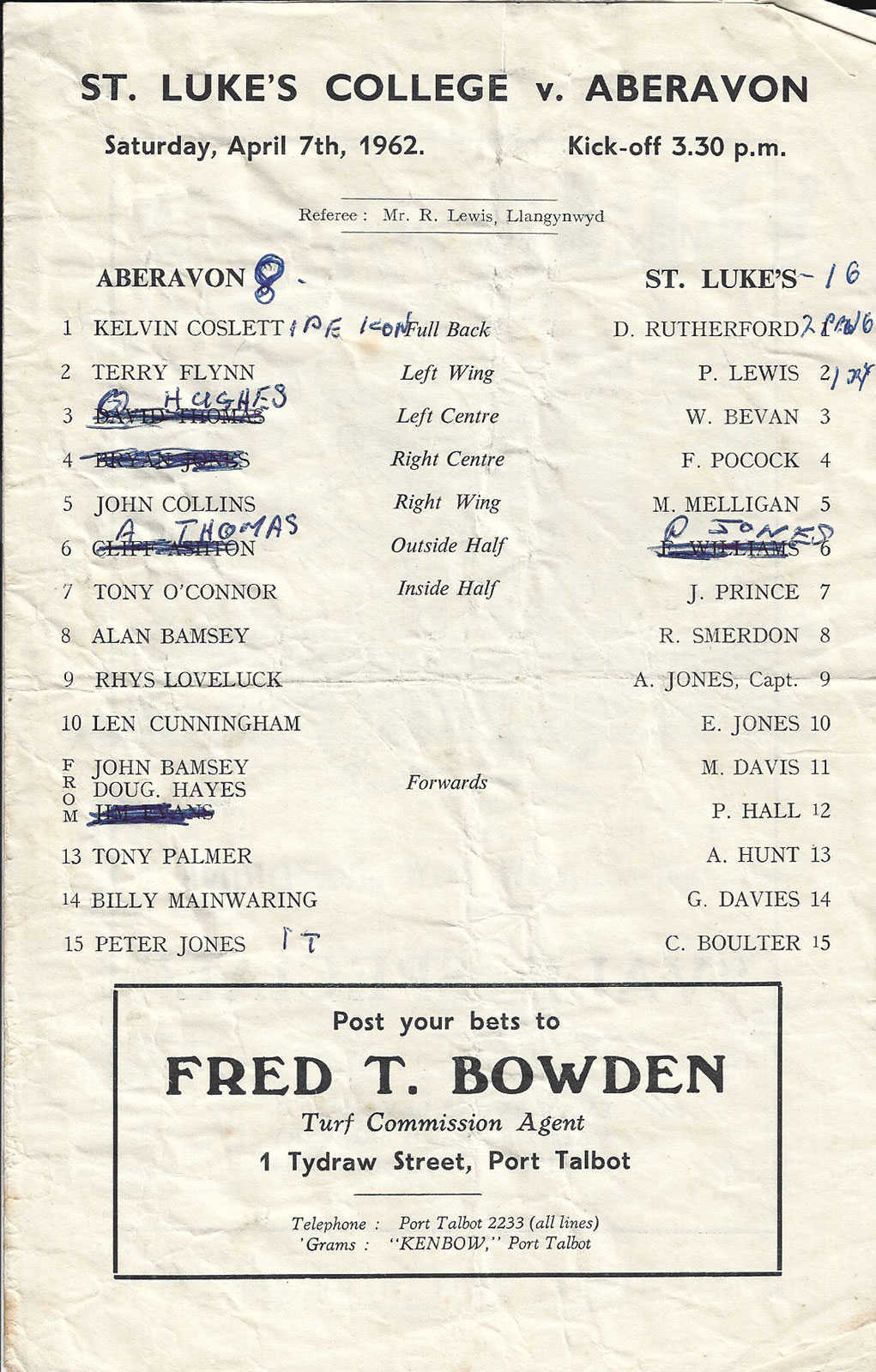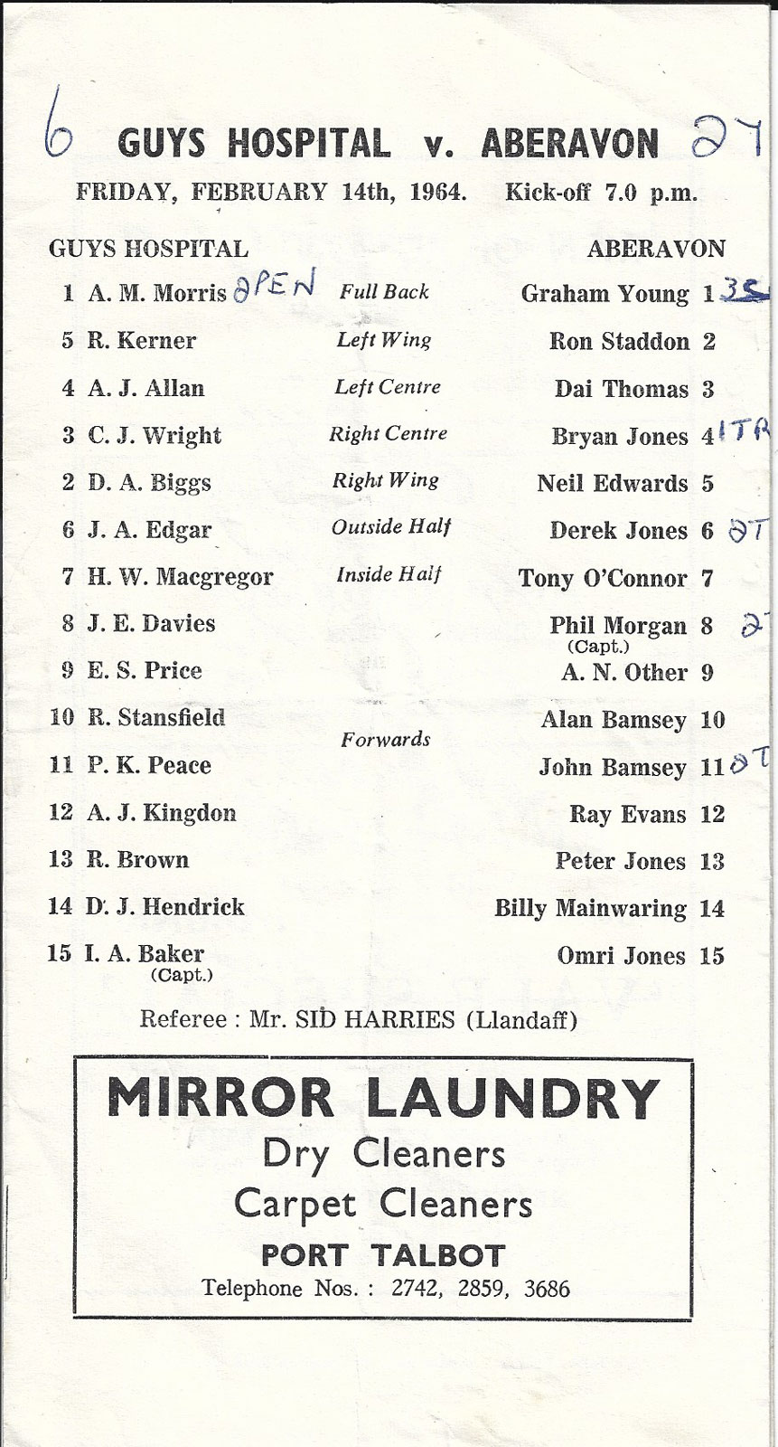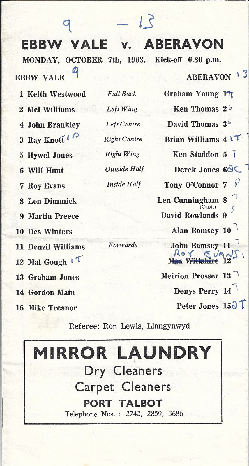 Aberavon v Neath | 28 Feb 1959 | Aberavon | 3-6 | good - folding creases, a little