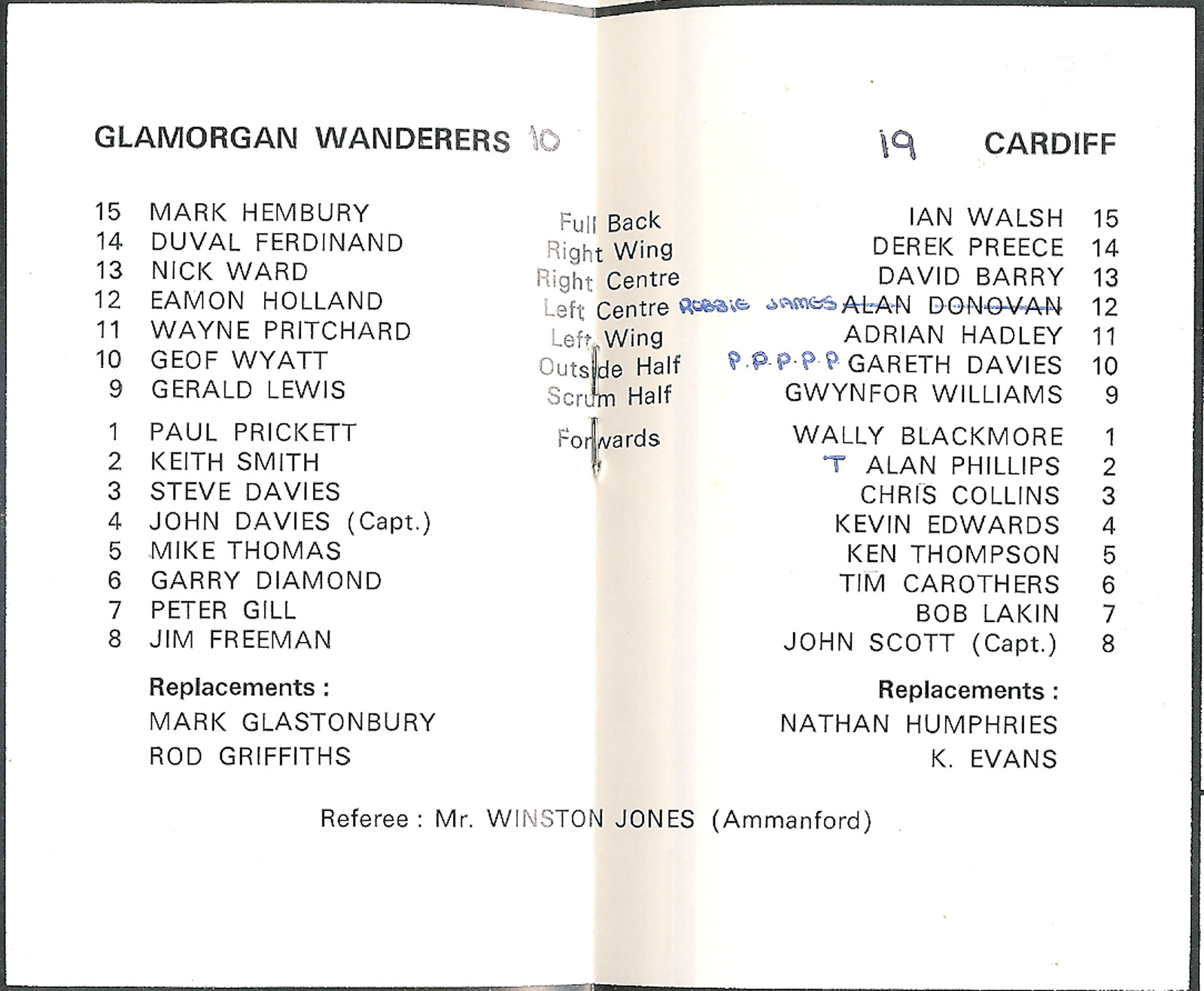 Glamorgan Wanderers v Cardiff | 1 Sep 1969 | Memorial Ground, Ely | very good Ref: PC12-prcb-glw19690901cdf* - £4.00 |