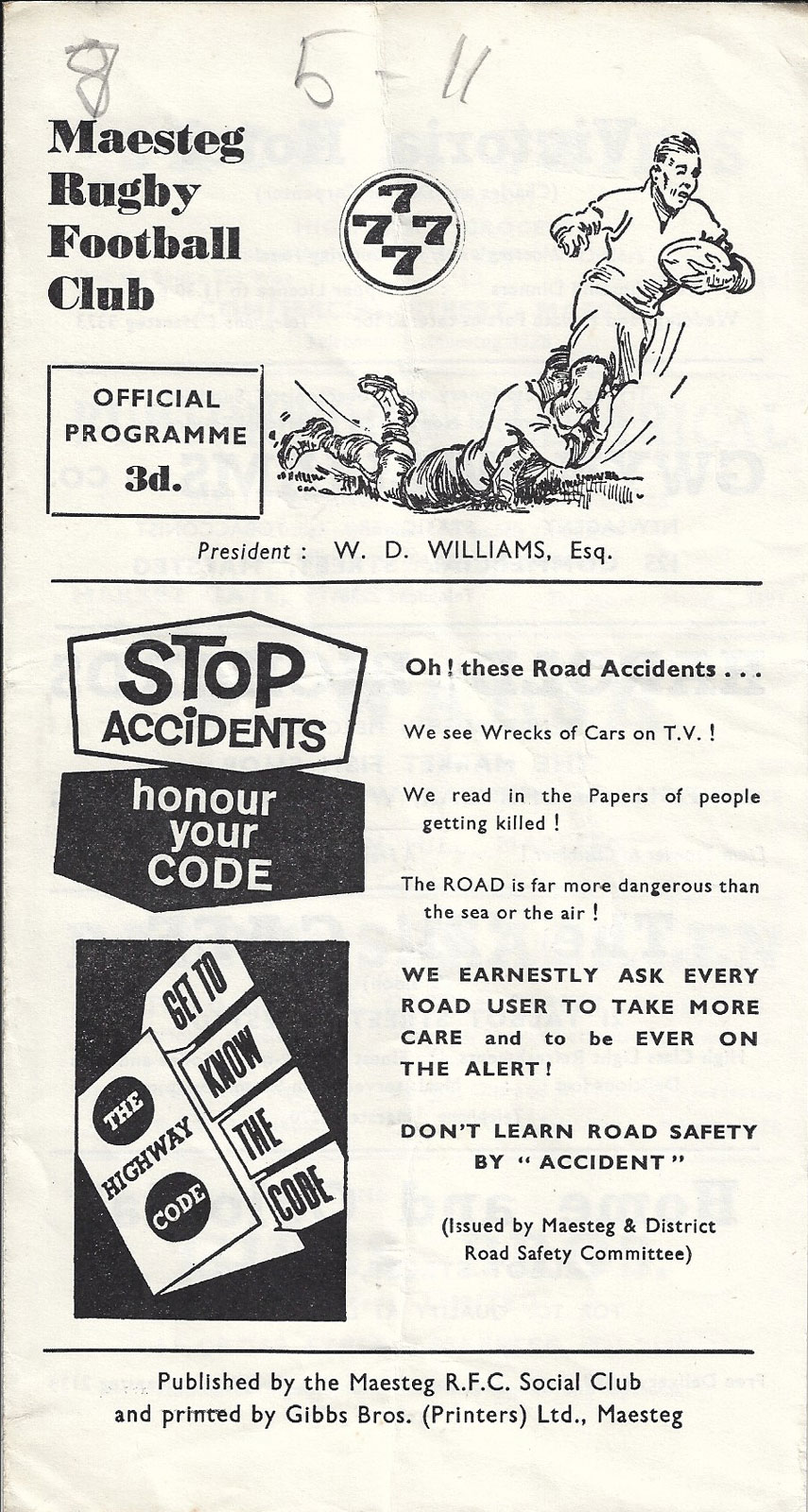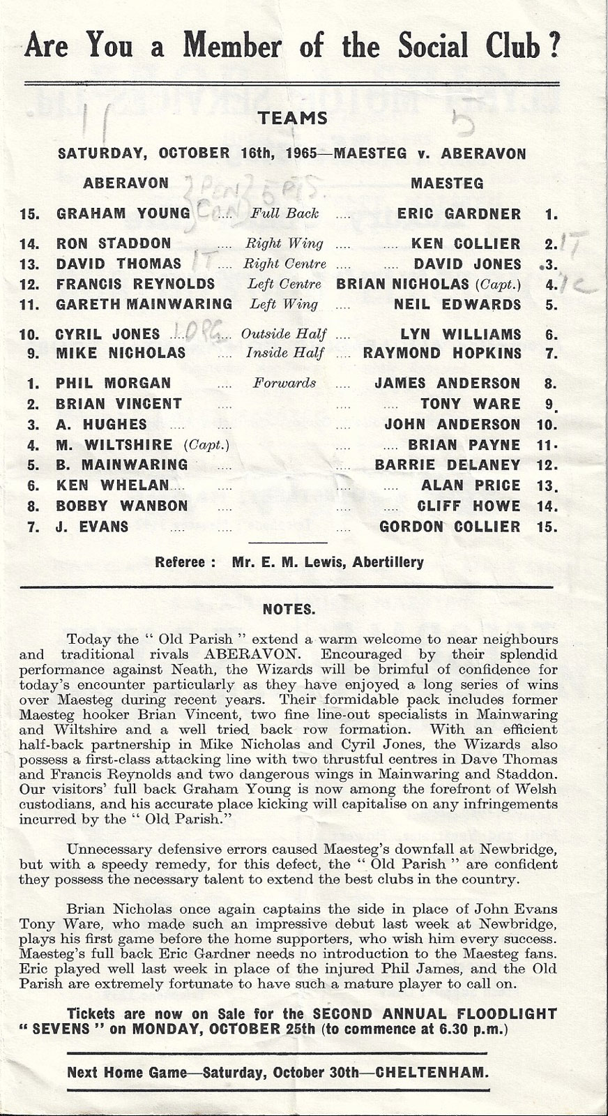 Maesteg v Aberavon | 16 Oct 1965 | Maesteg |
