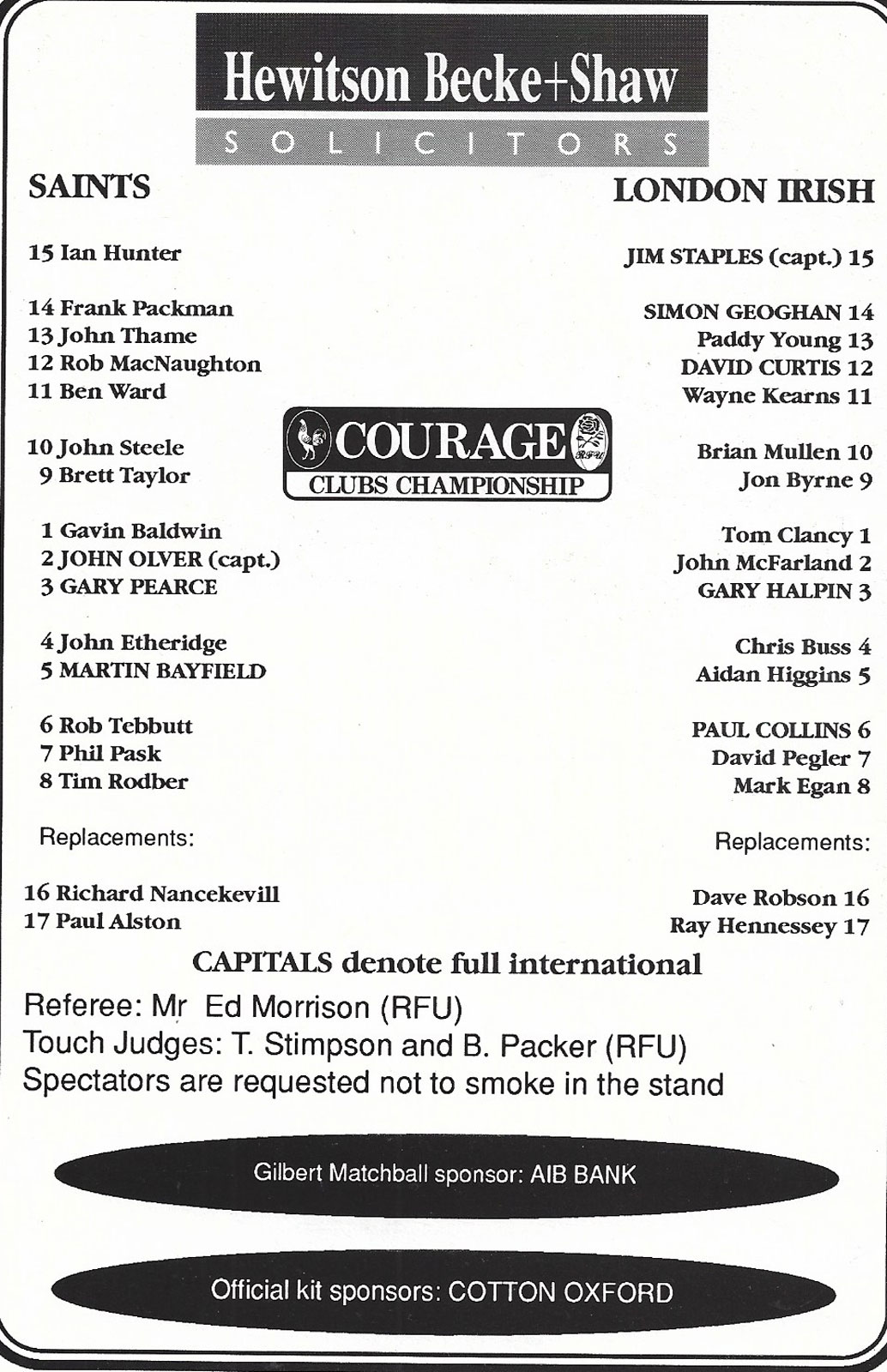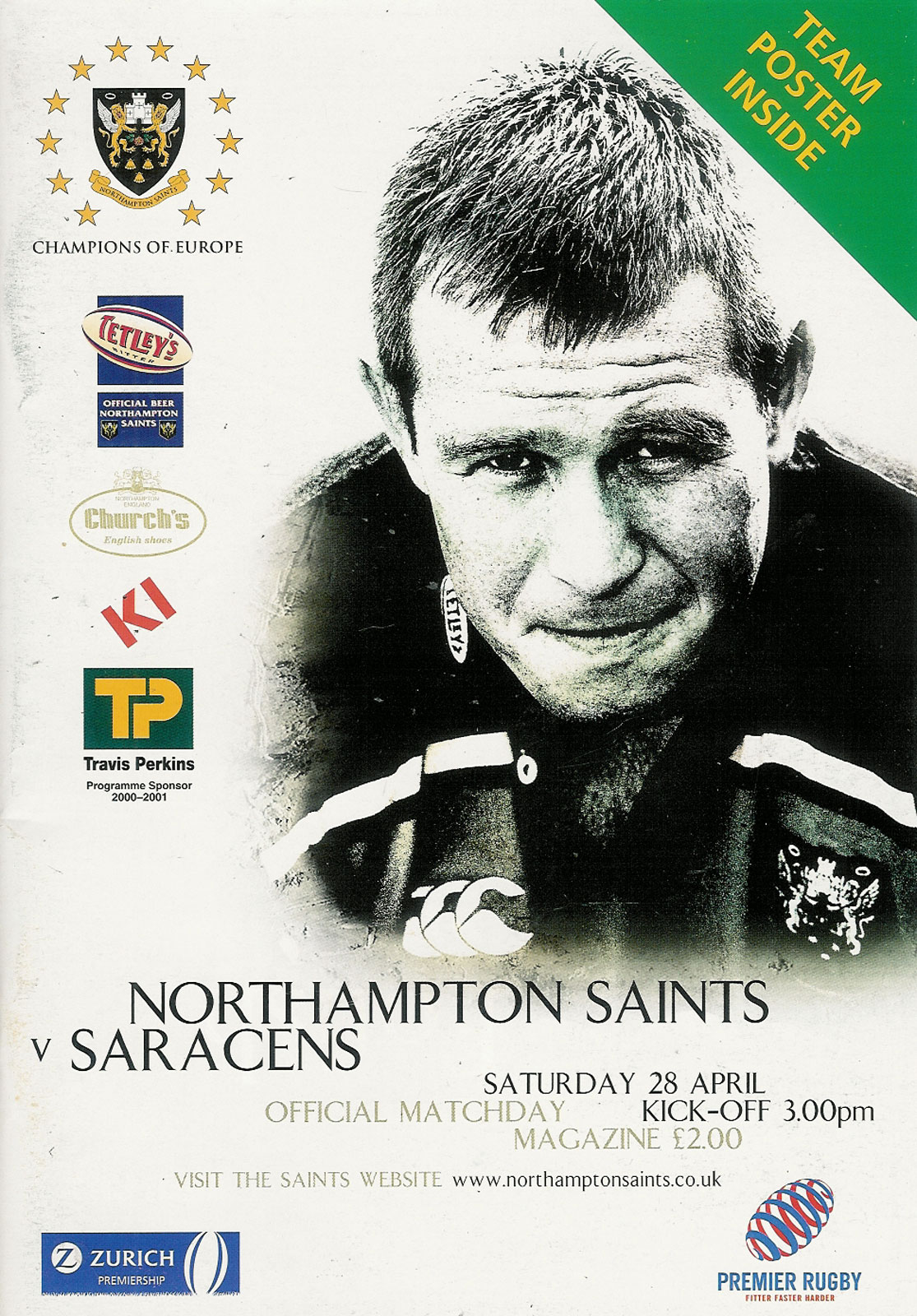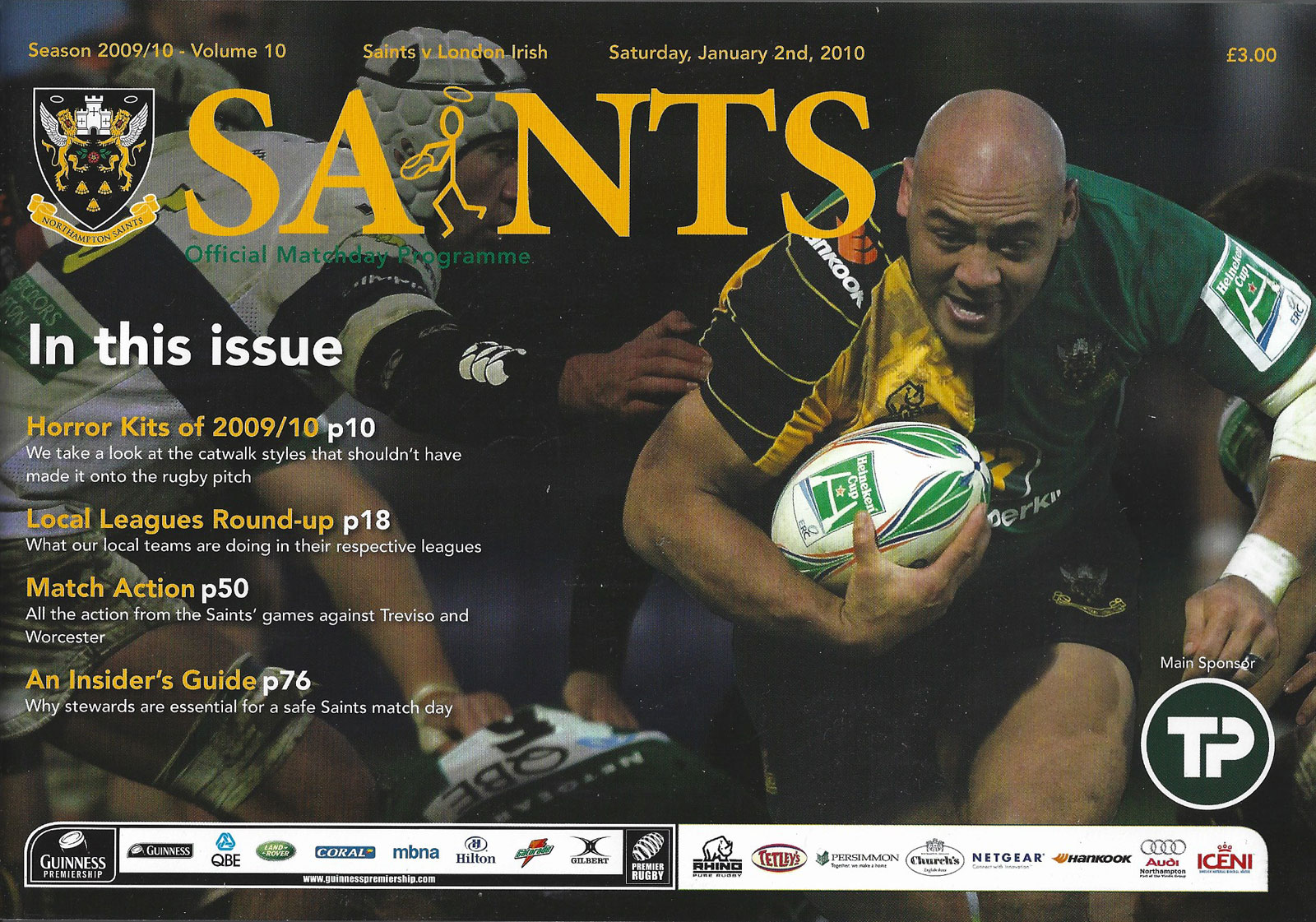 for Northampton Saints FC away programmes please visit our other club programme pages......... Aberavon - Bath - Bridgend - Bristol - Cardiff - Ebbw Vale - English Clubs - Gloucester - Harlequins - Irish Clubs - Irish Provincial - Leicester - Llanelli & Scarlets - London Irish - London Scottish - London Welsh - Maesteg - Neath - Newbridge - Newport - Ospreys - Pontypool - Pontypridd - Richmond - Saracens - Scottish Club - Scottish District - Swansea - Welsh Clubs |