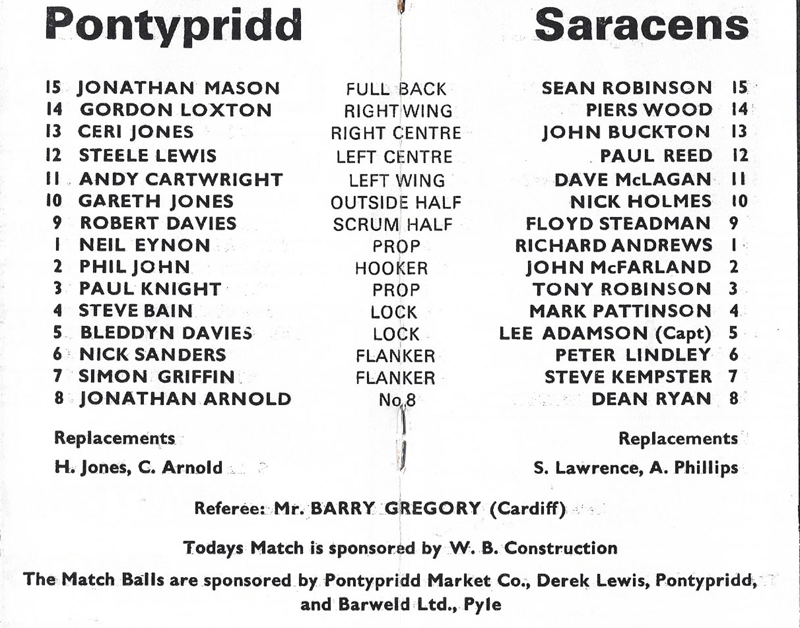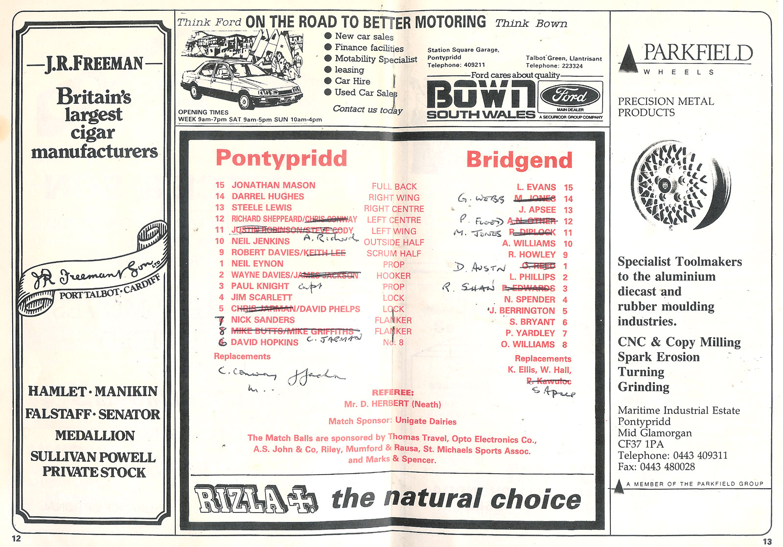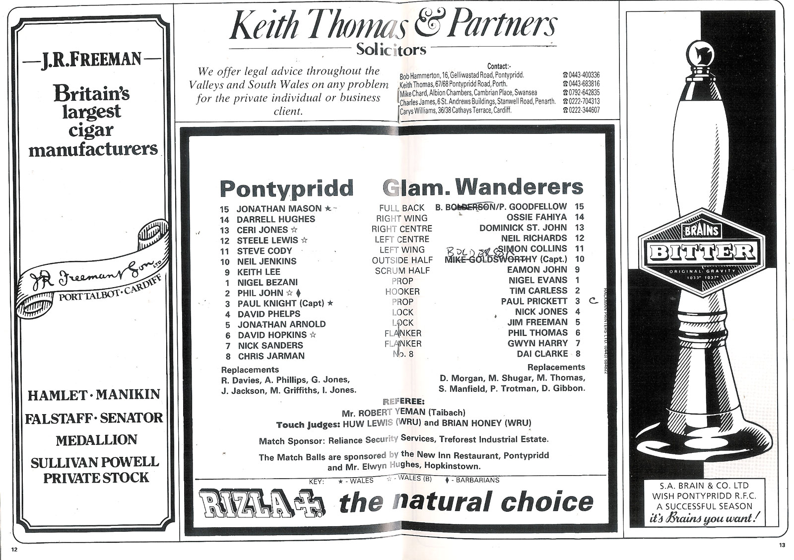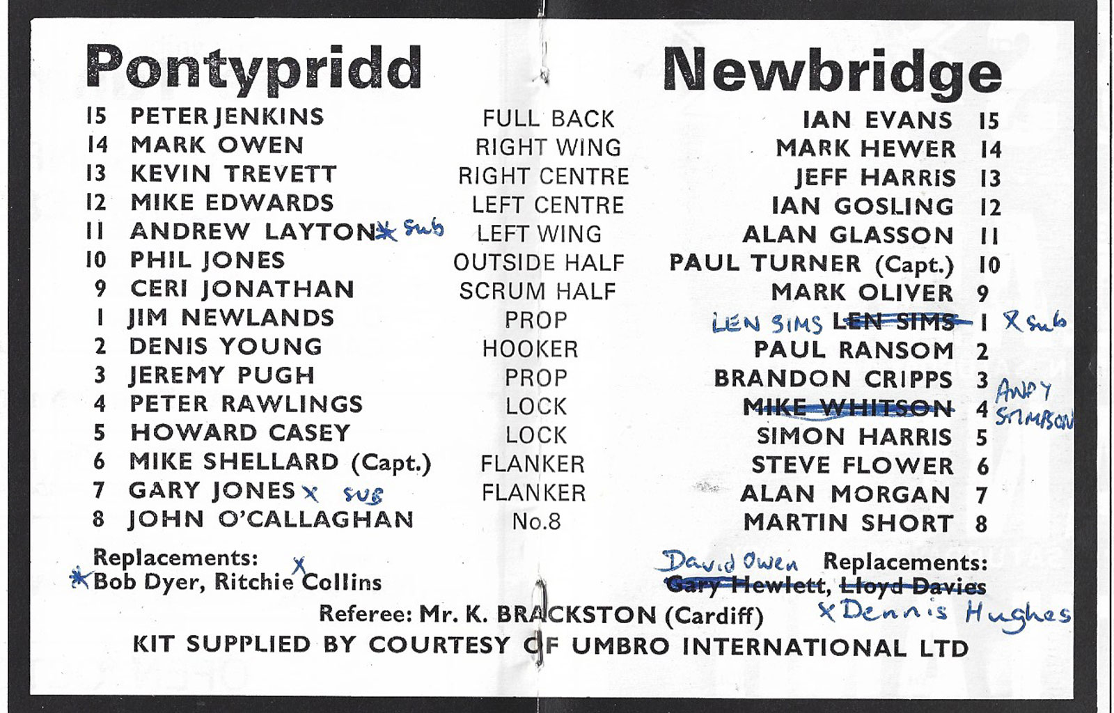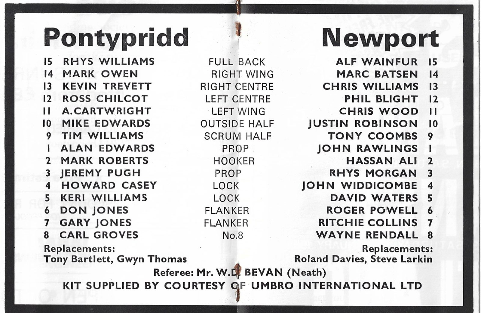 Pontypridd v Cardiff | 3 Jan 1969 | Ynysangharad Park, Pontypridd | 5-15* | very good - slight crease Ref: B215-C-prcb-ppr19690103cdf - £5.00 |