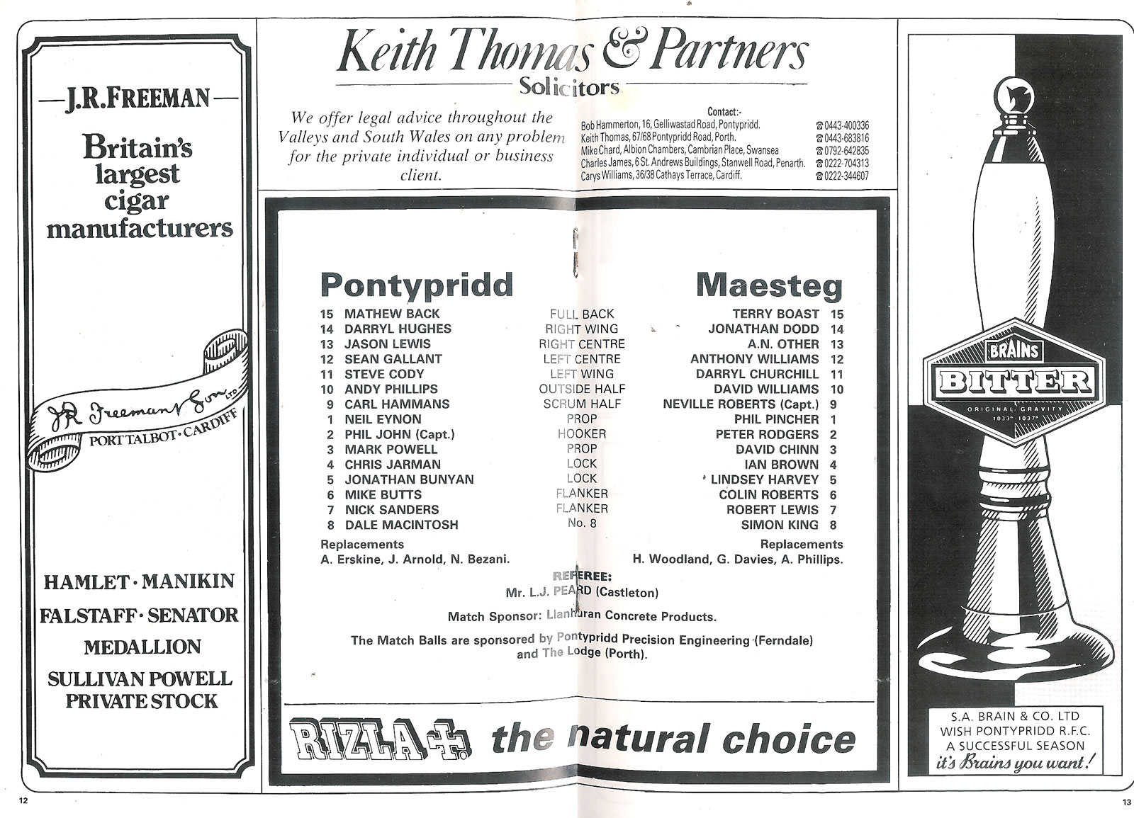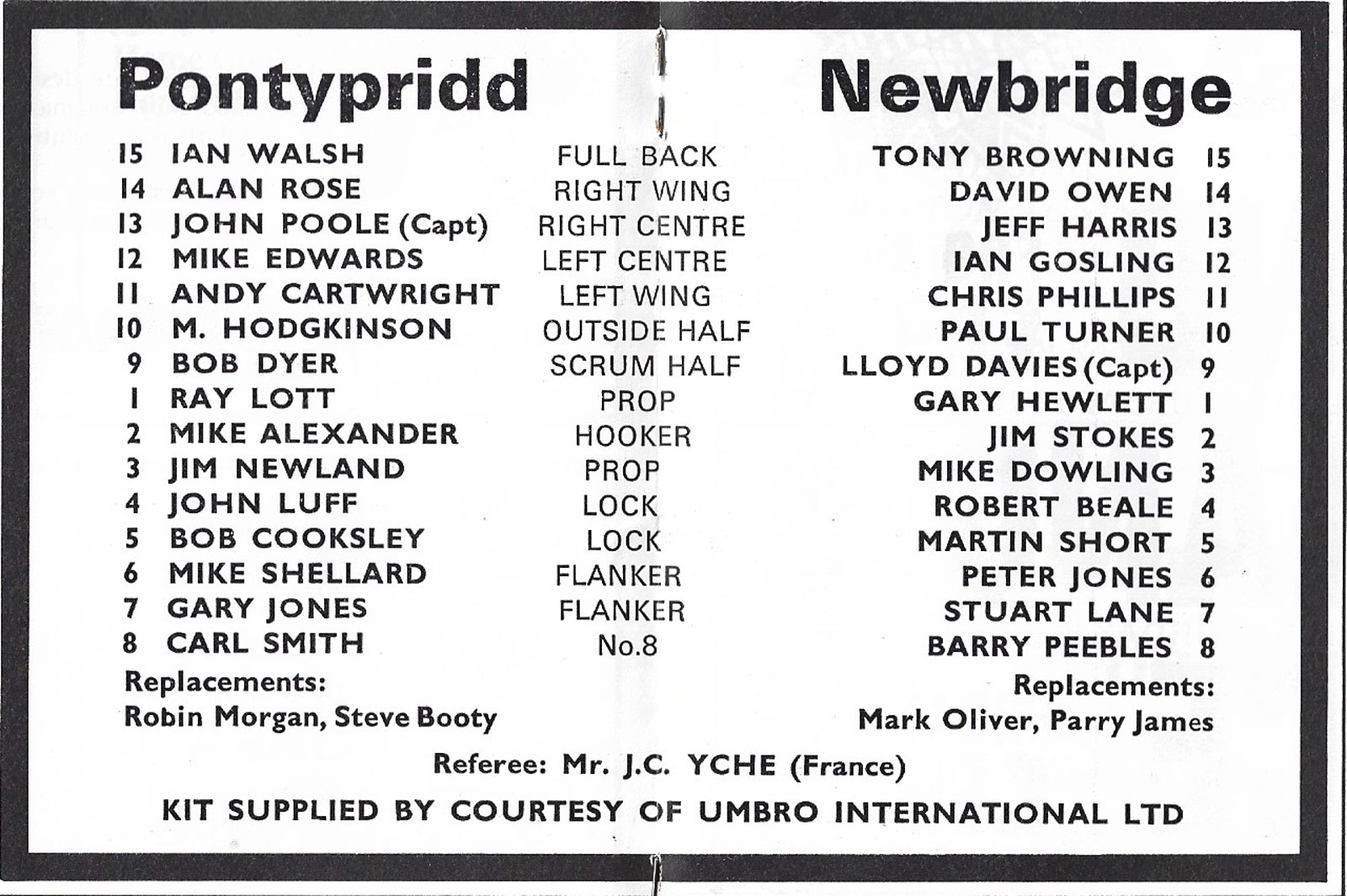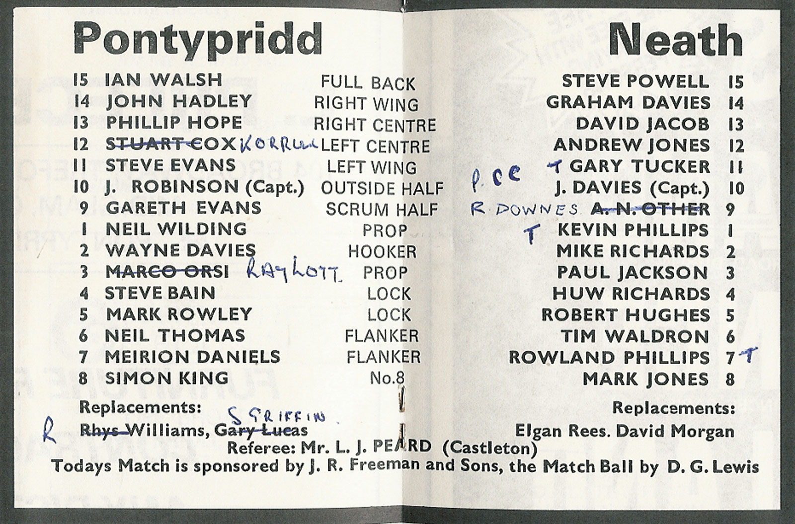 Pontypridd v Neath Championship winning match | 25 Apr 1967 | Pontypridd | 9-12 | very good Ref: PC13-prcb-ppr19670425nea - £25.00 |