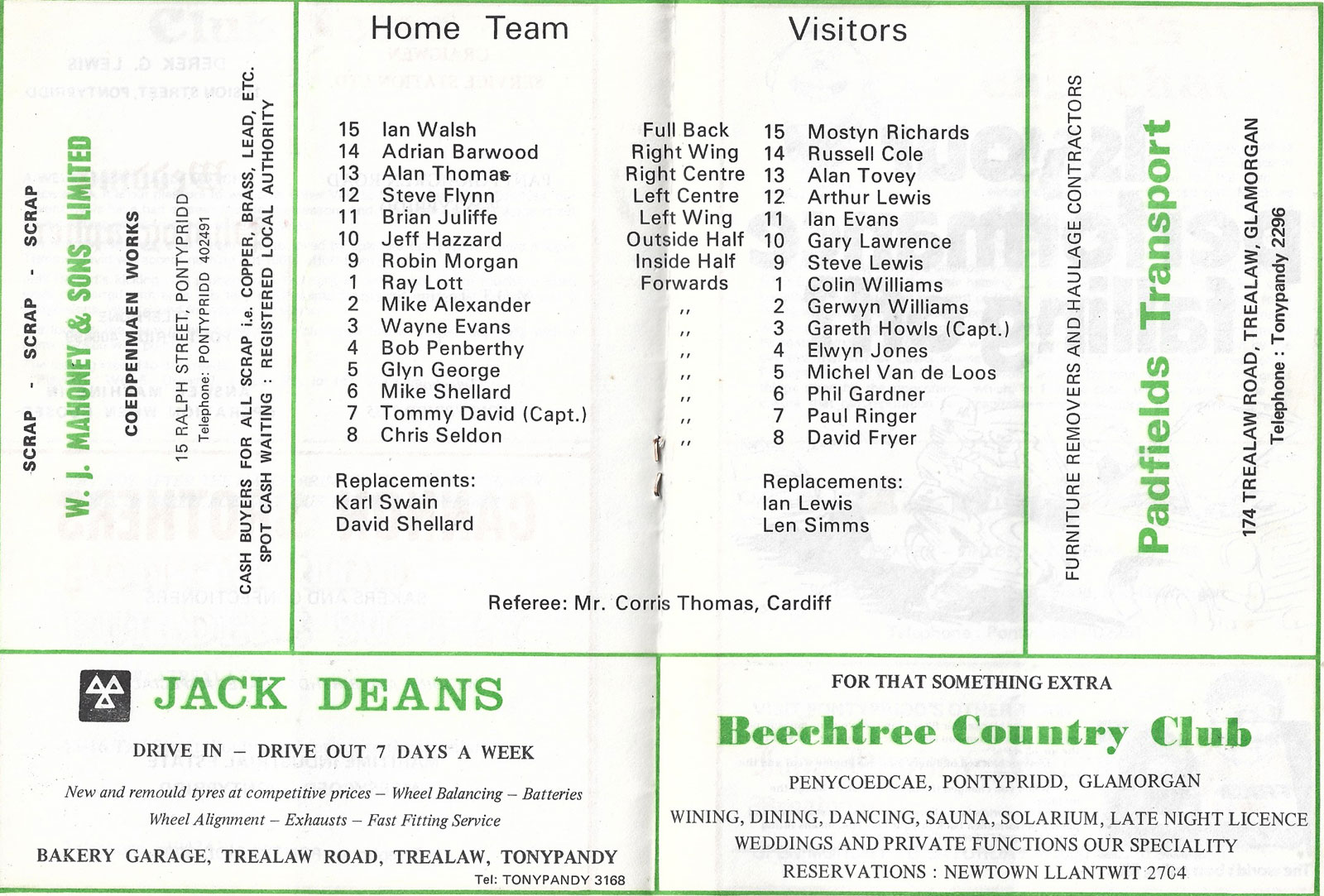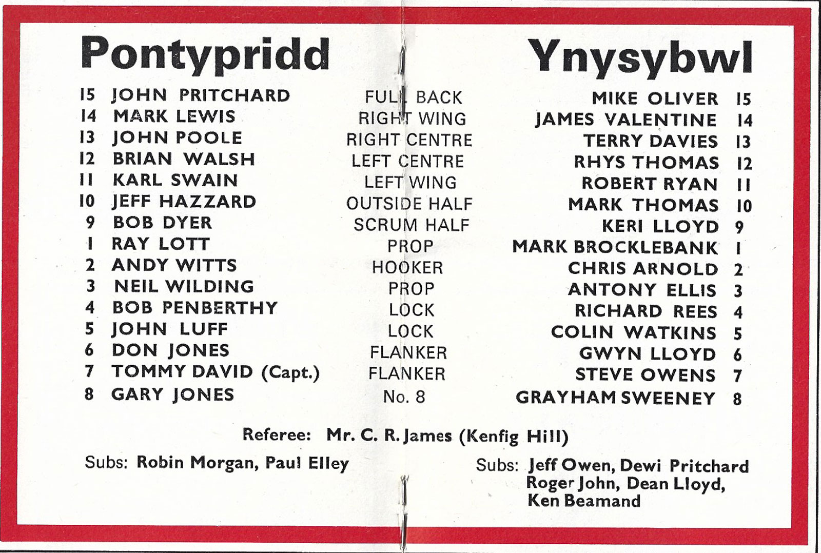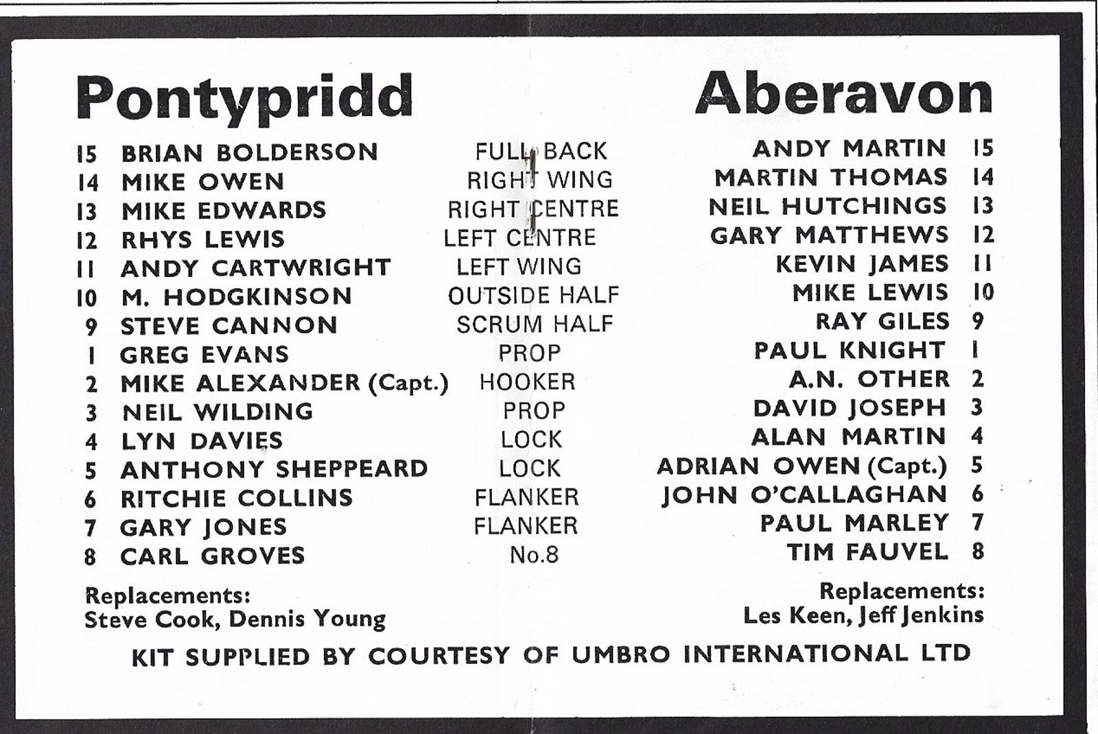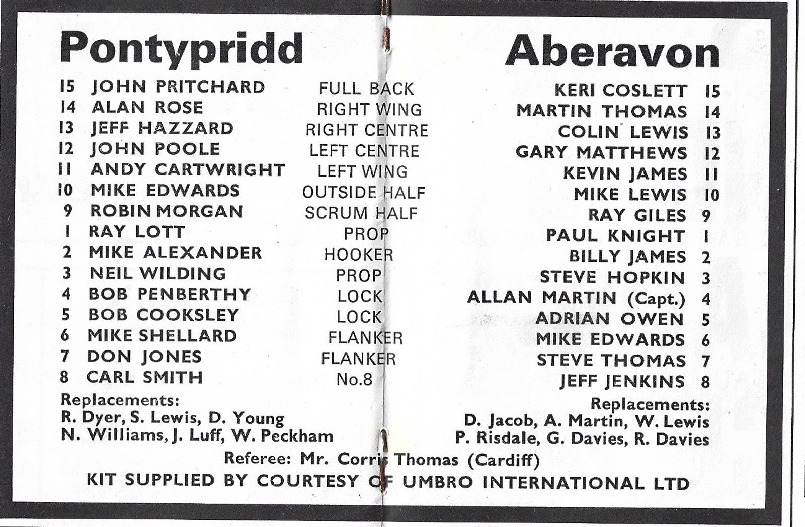 Pontypridd v Aberavon | 17 Apr 1961 | Pontypridd | good