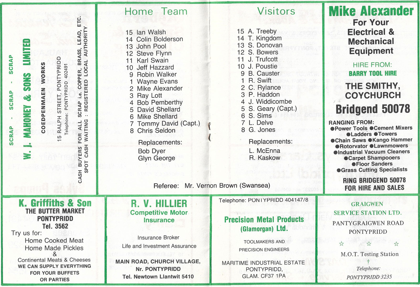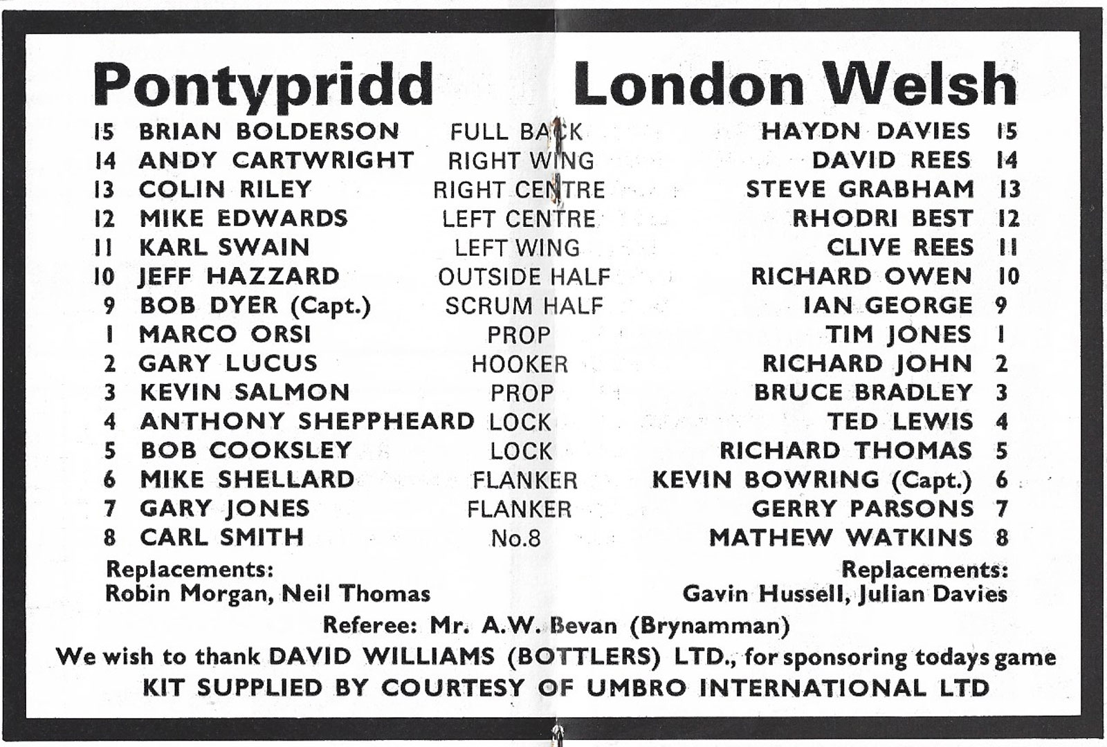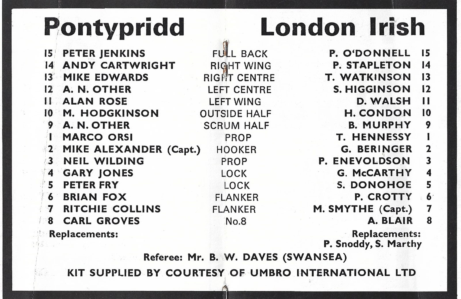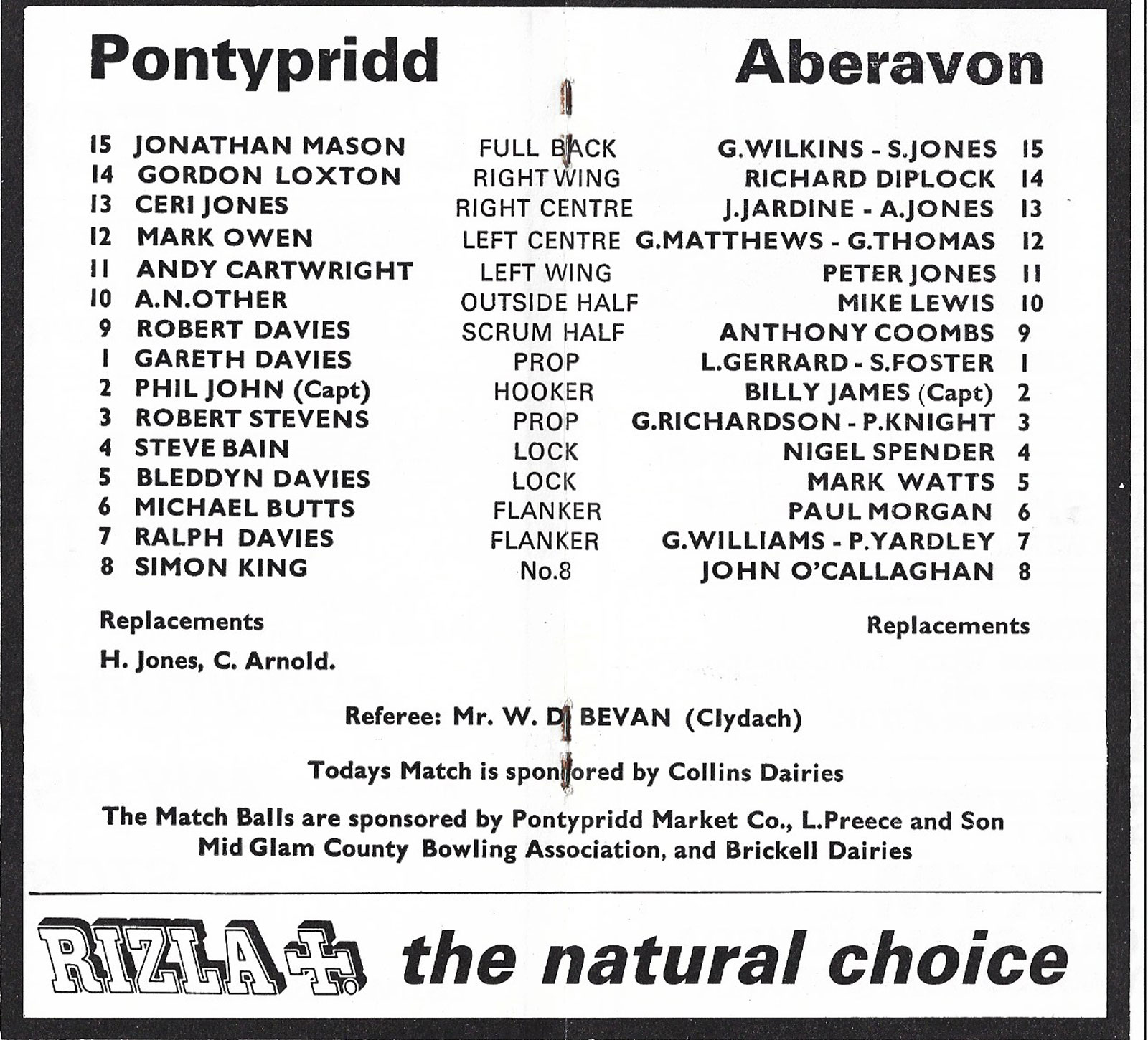 Pontypridd v Aberavon | 17 Apr 1961 | Pontypridd | good