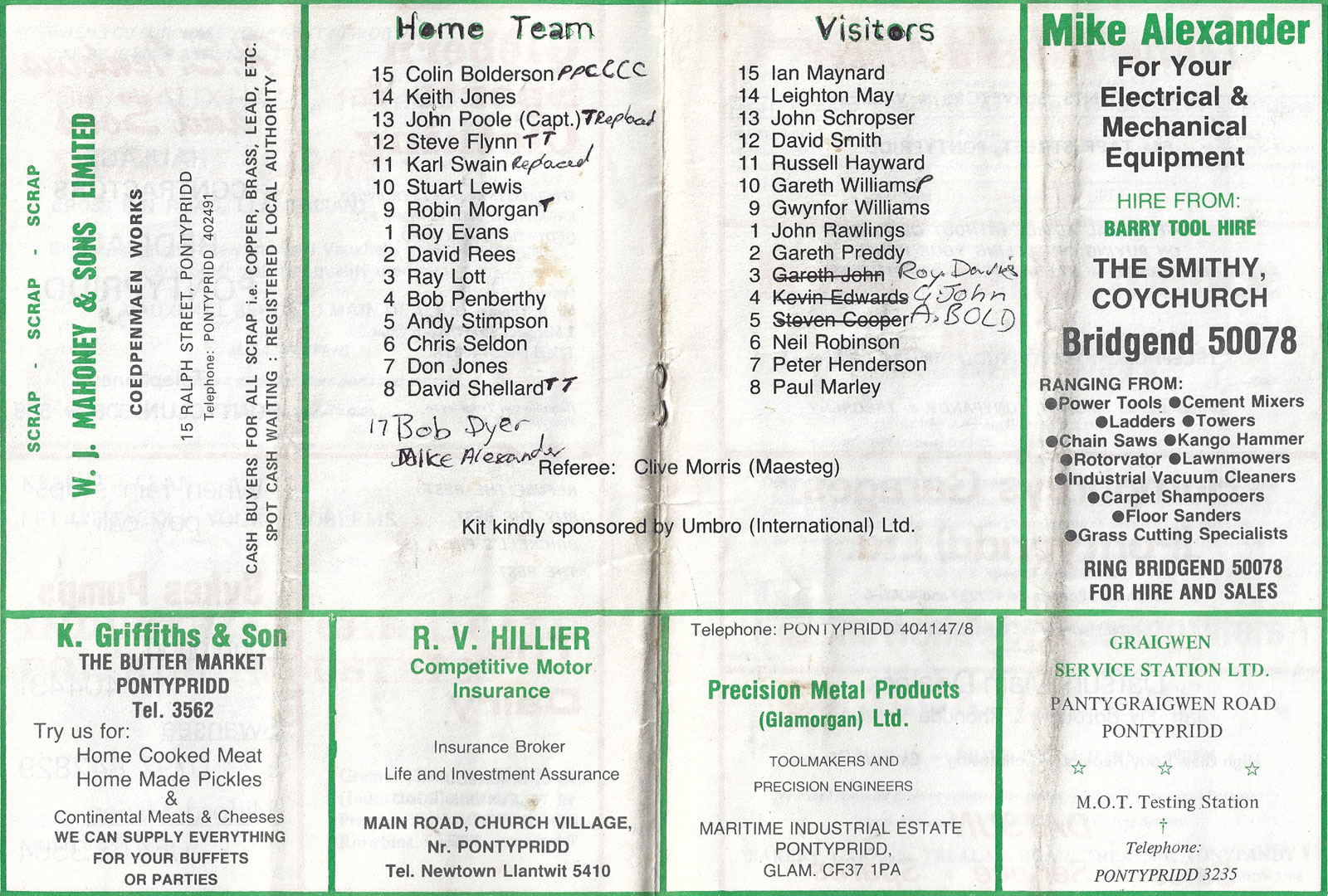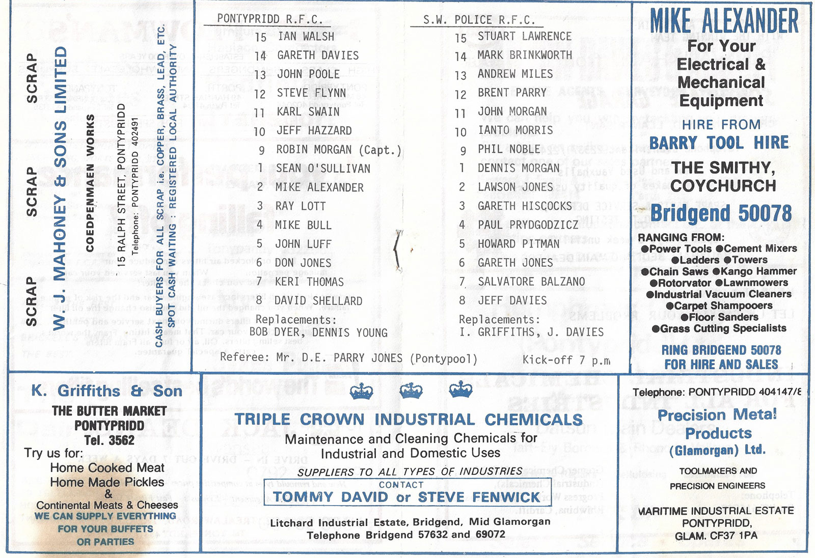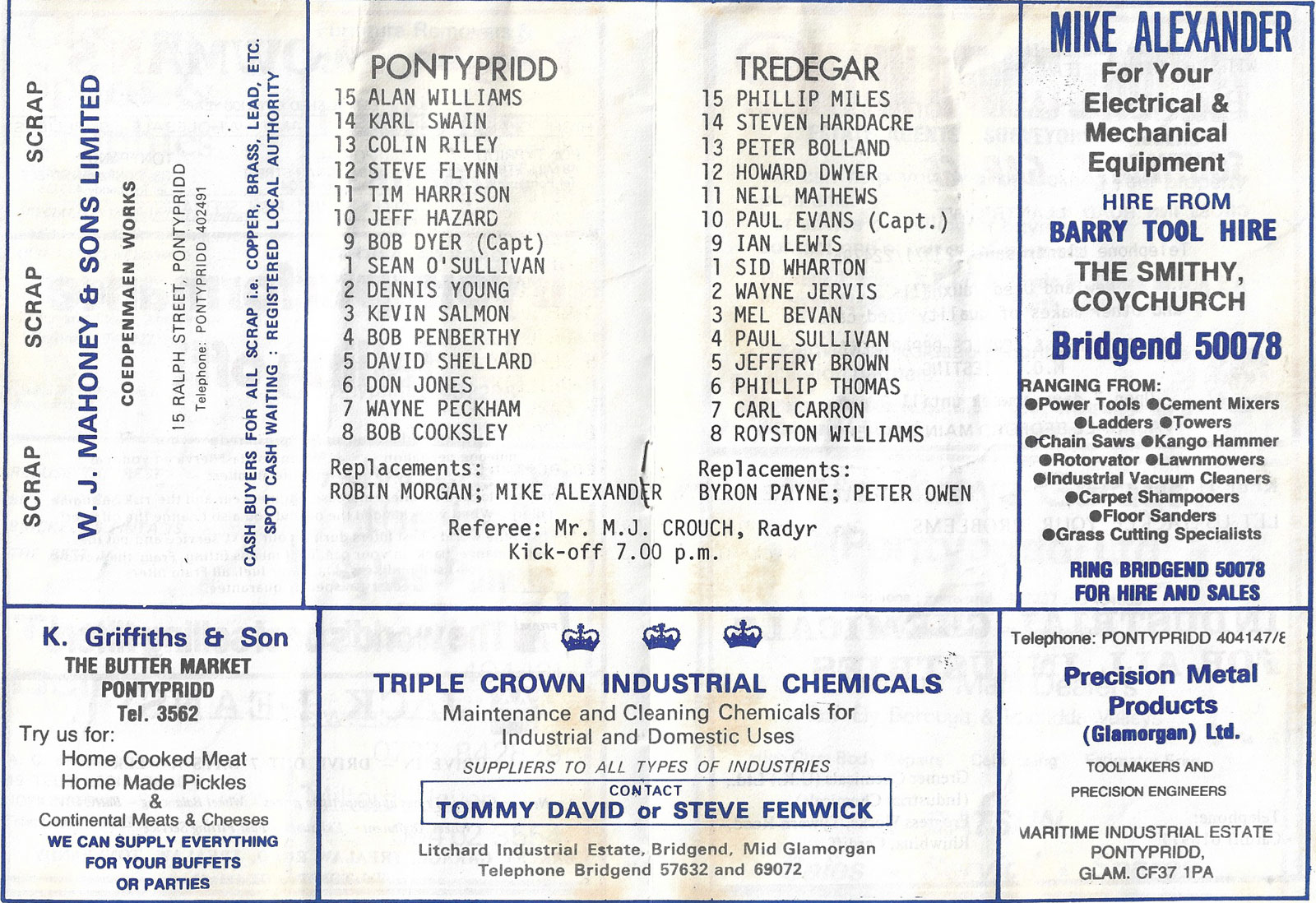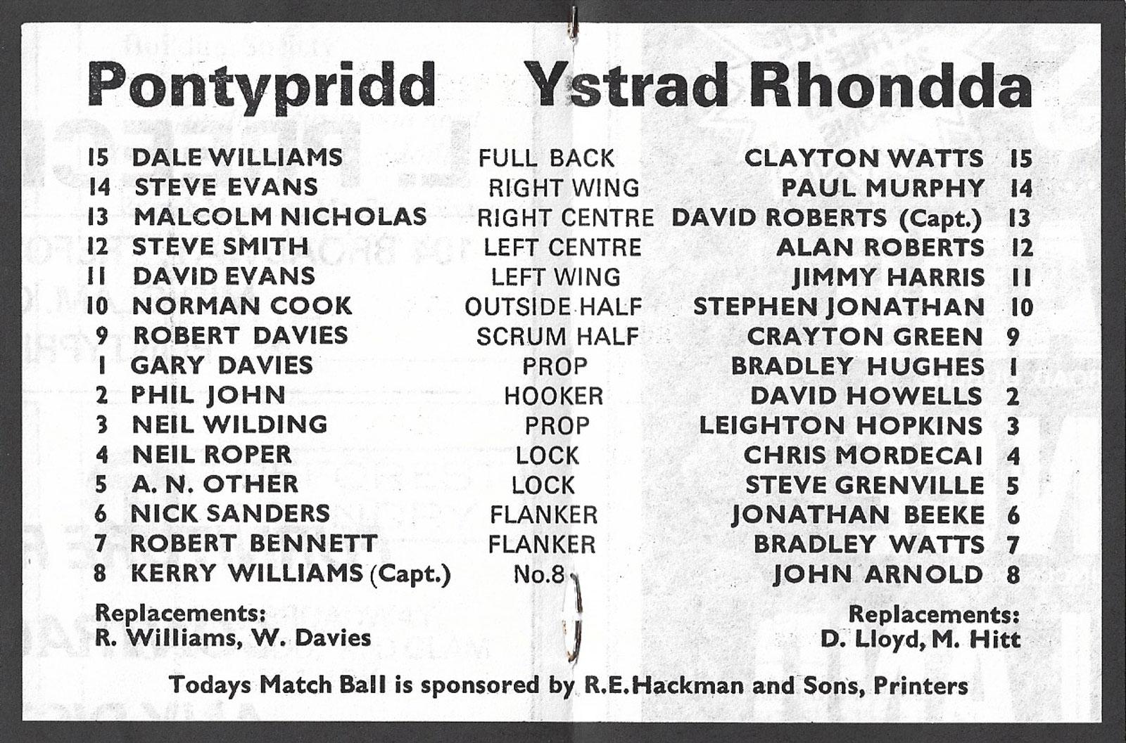 Pontypridd v Aberavon | 17 Apr 1961 | Pontypridd | good